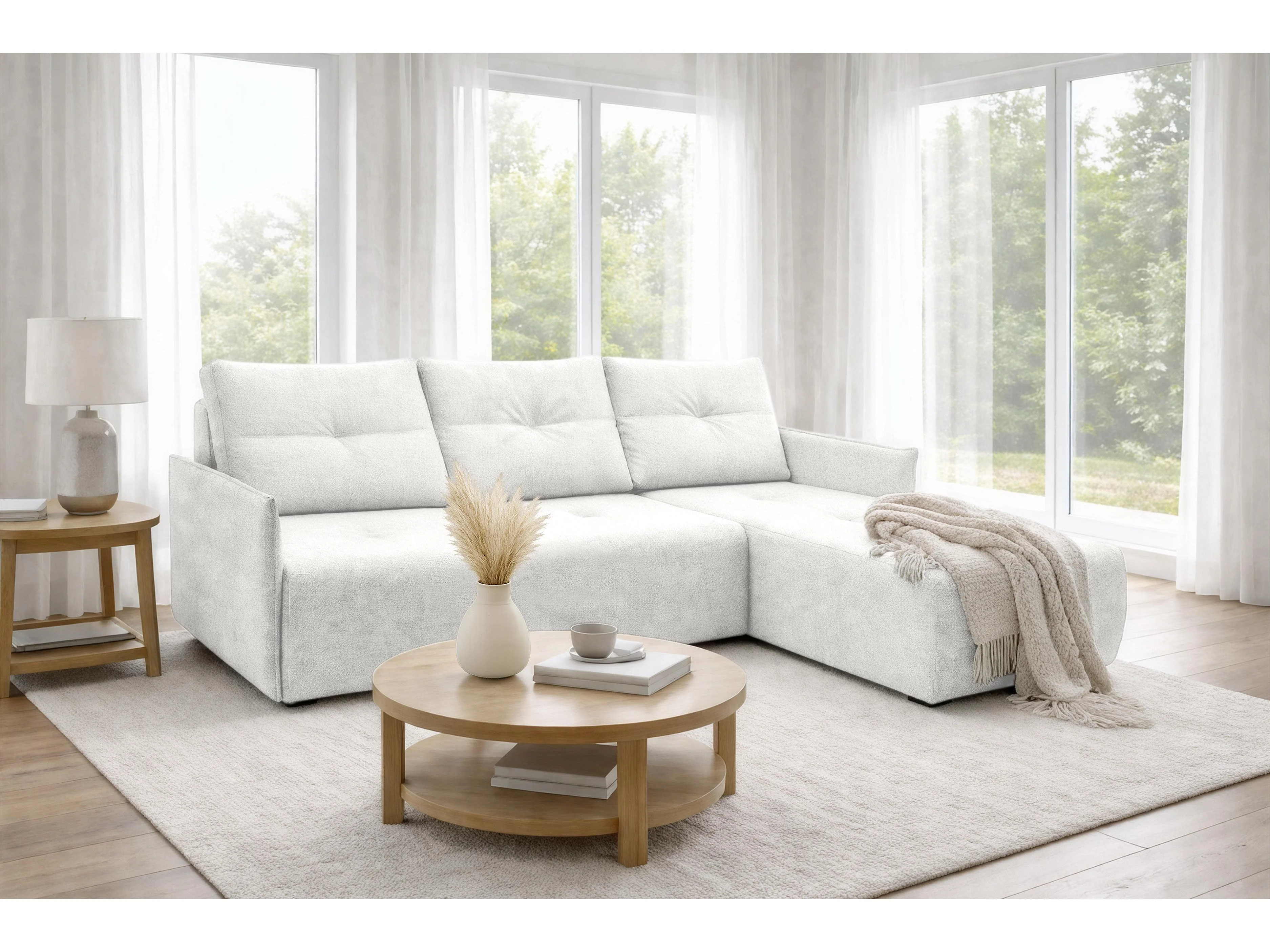 AX LIVING canapé d’angle Damascus blanc avec fonction couchage coffre canapé-lit 212 cm droite