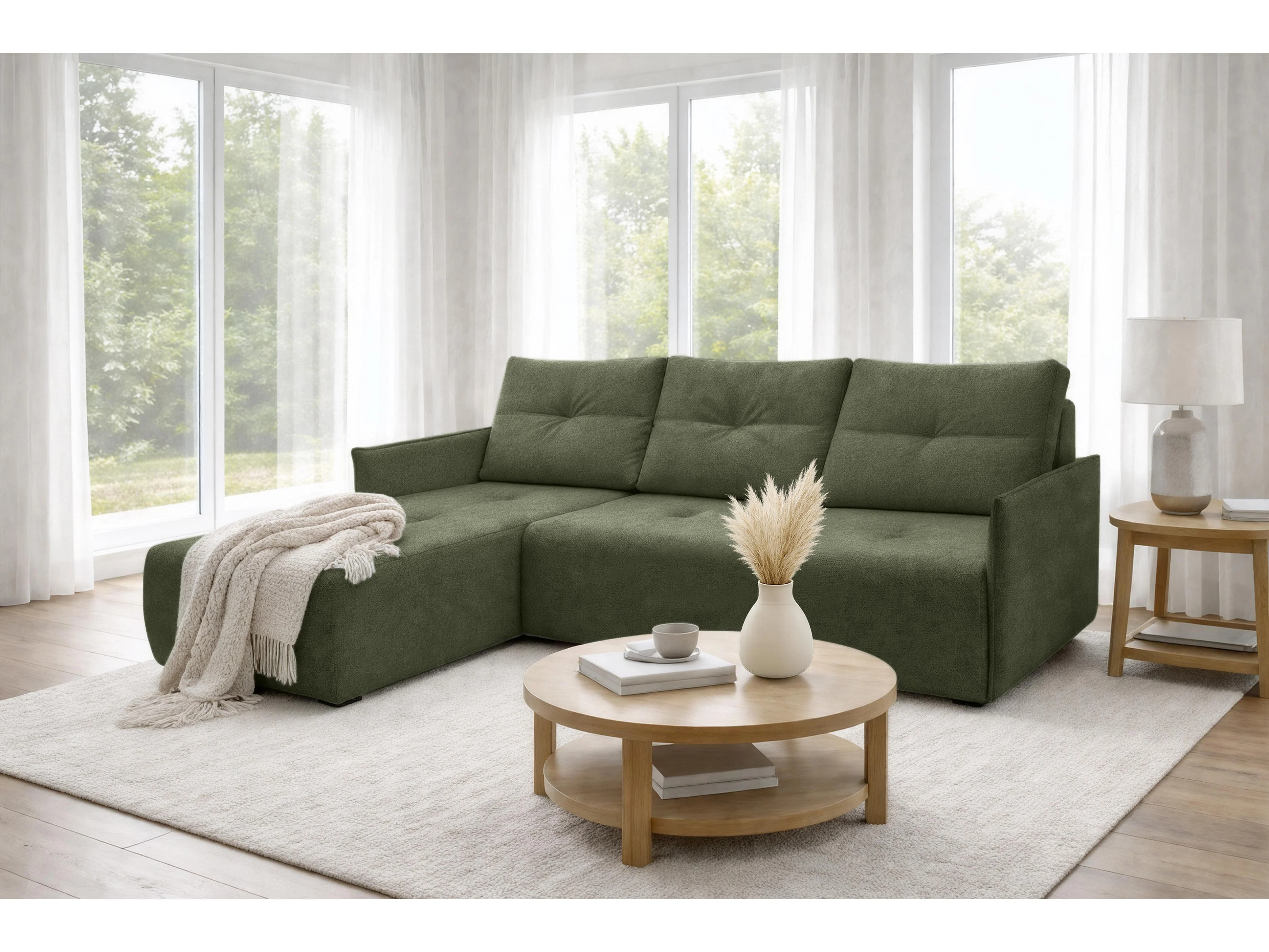 AX LIVING canapé d’angle Damascus vert avec fonction couchage coffre canapé-lit 212 cm gauche
