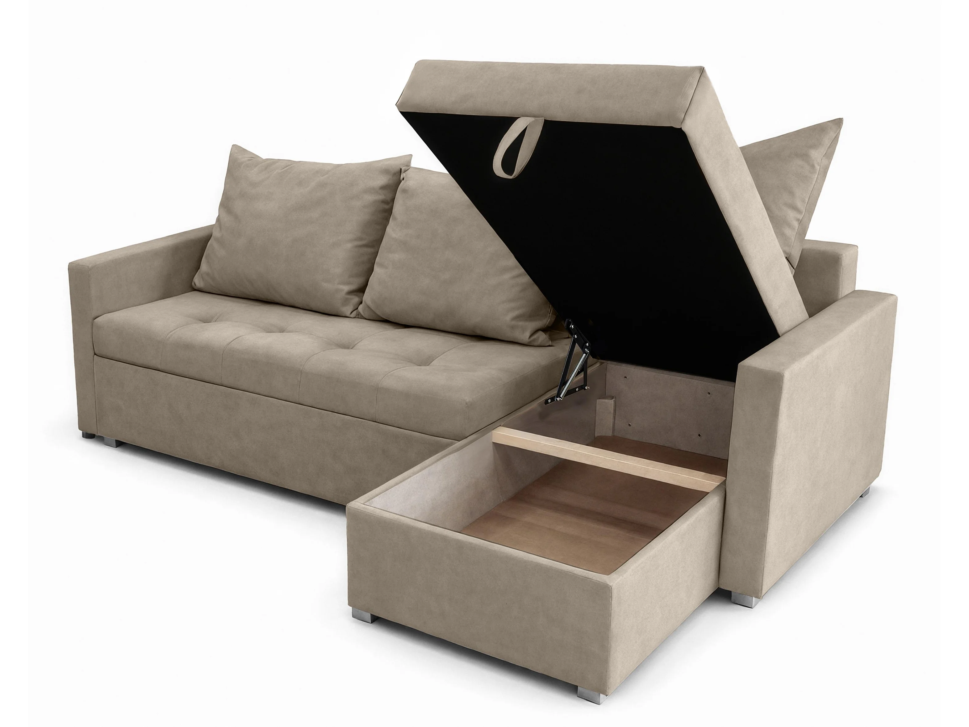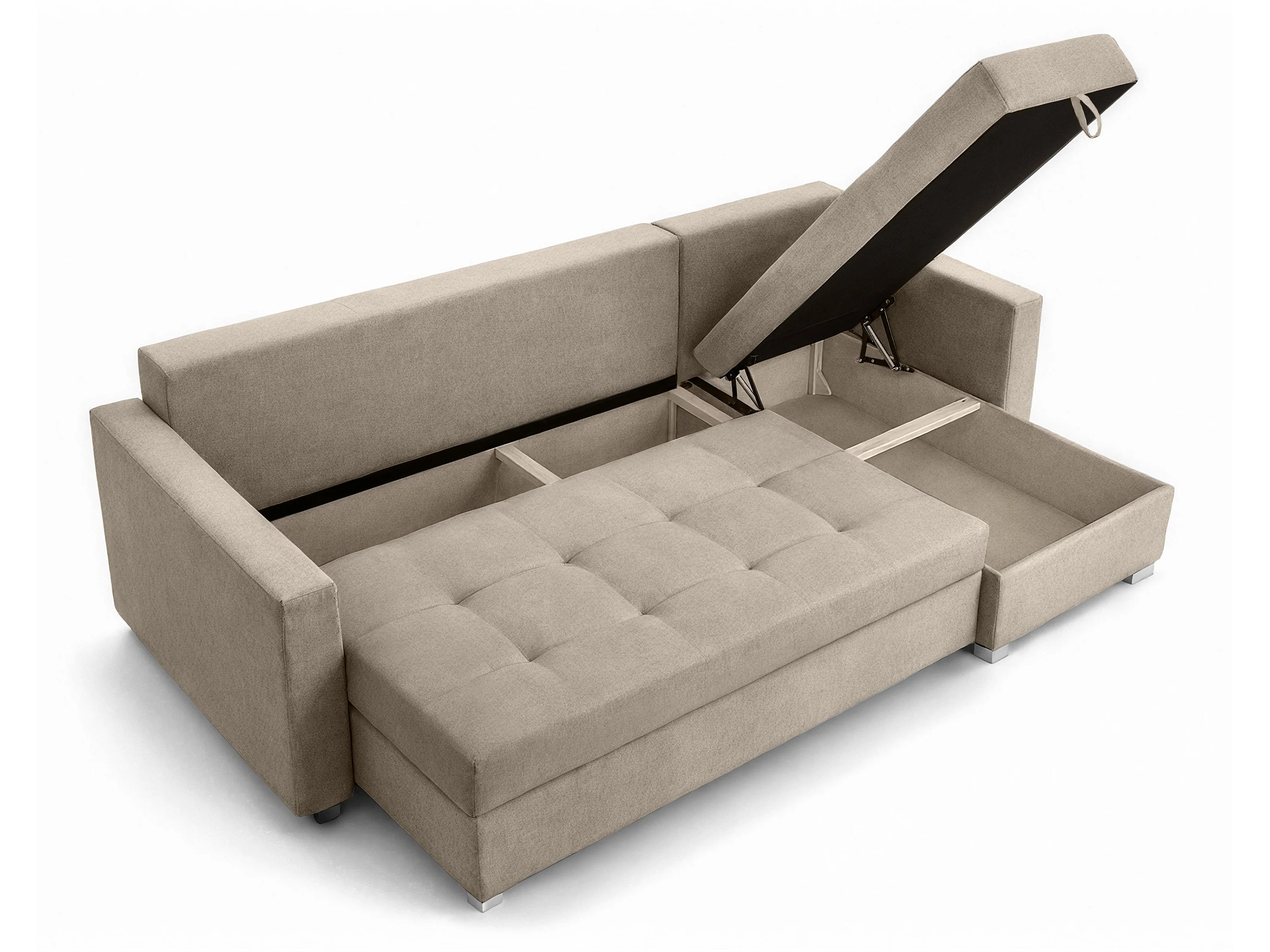 AX LIVING Canapé d’angle ELIF marron clair convertible avec coffre L moderne droite
