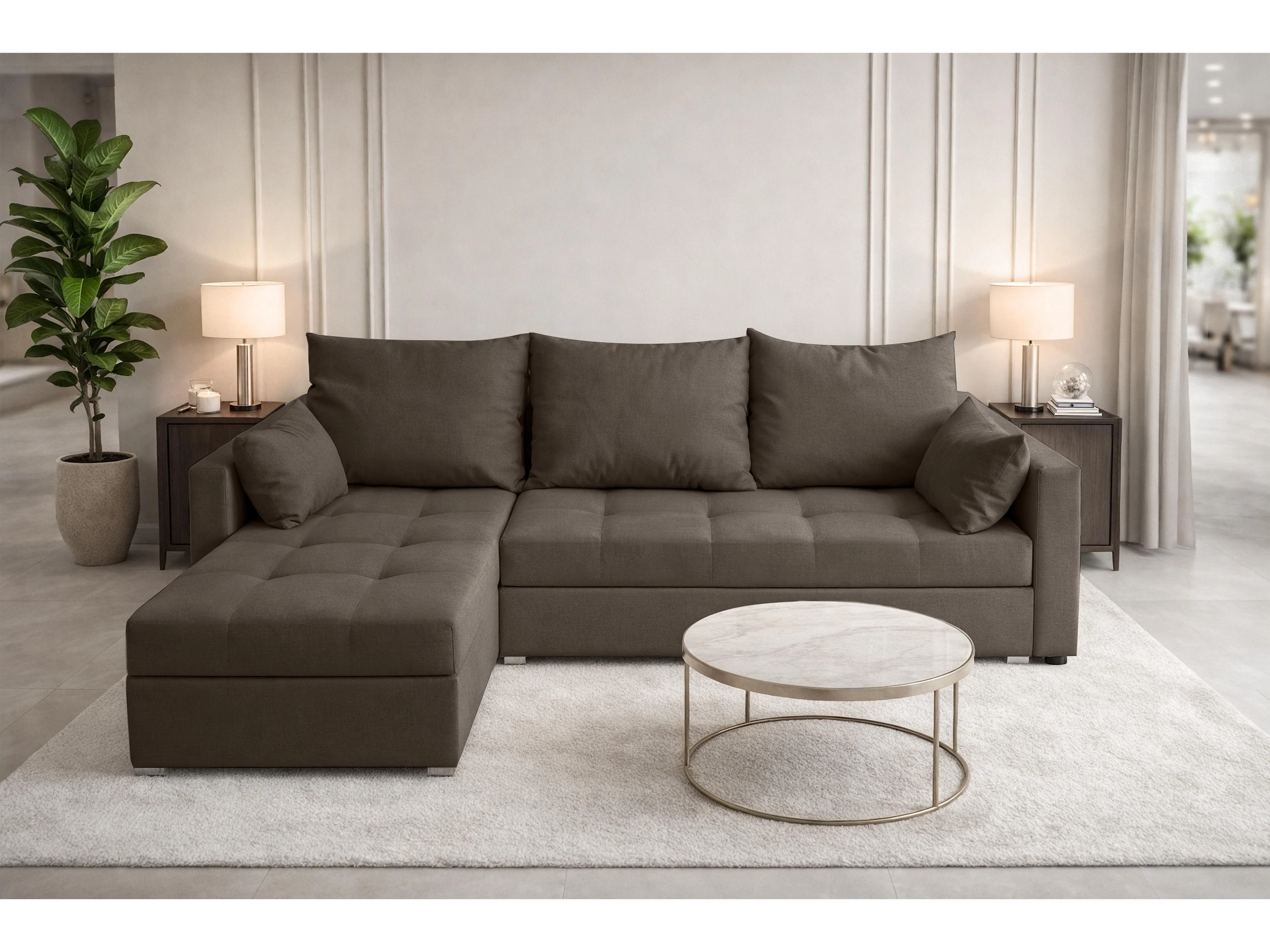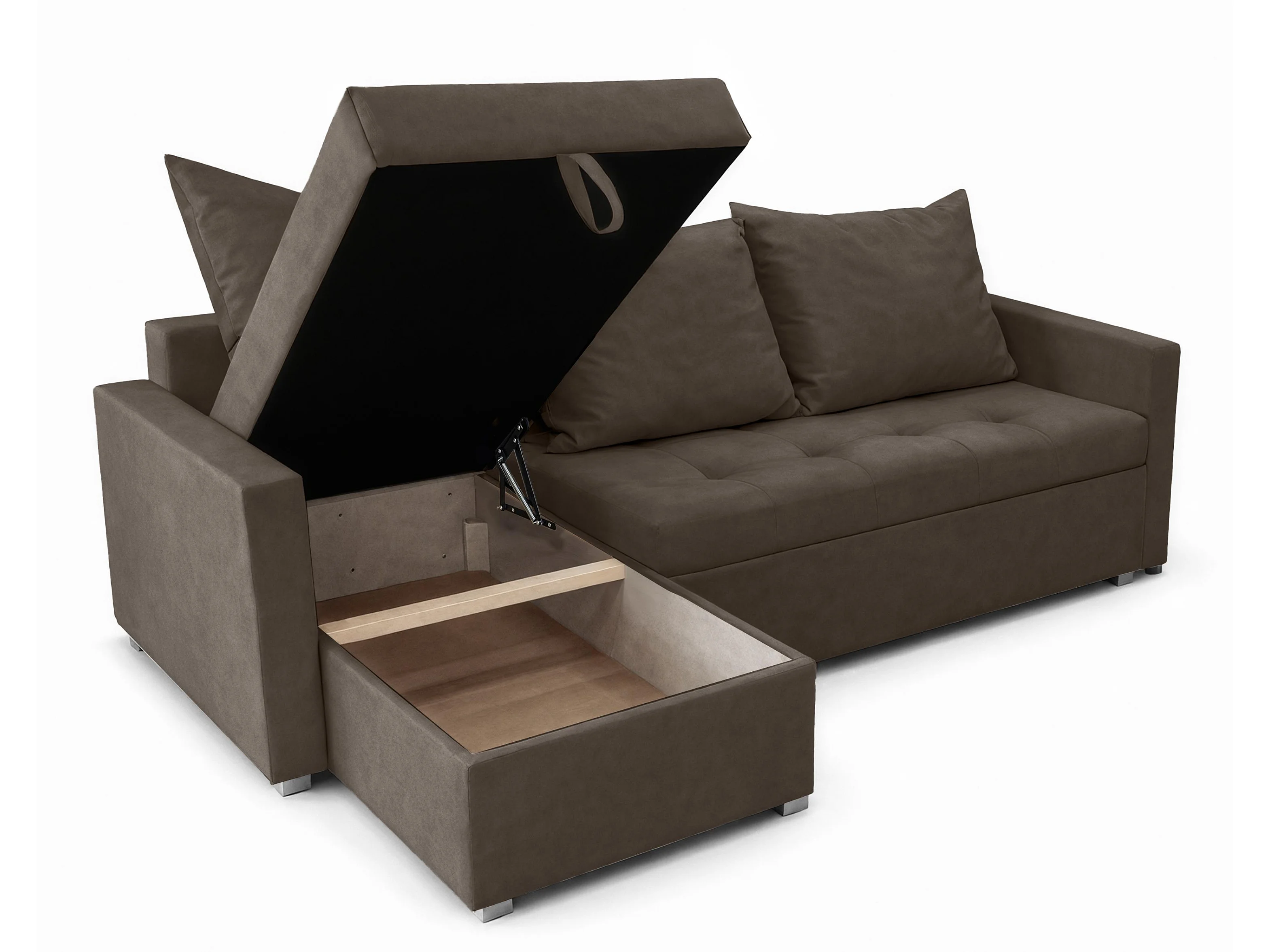 AX LIVING Canapé d’angle ELIF marron convertible avec coffre L moderne gauche