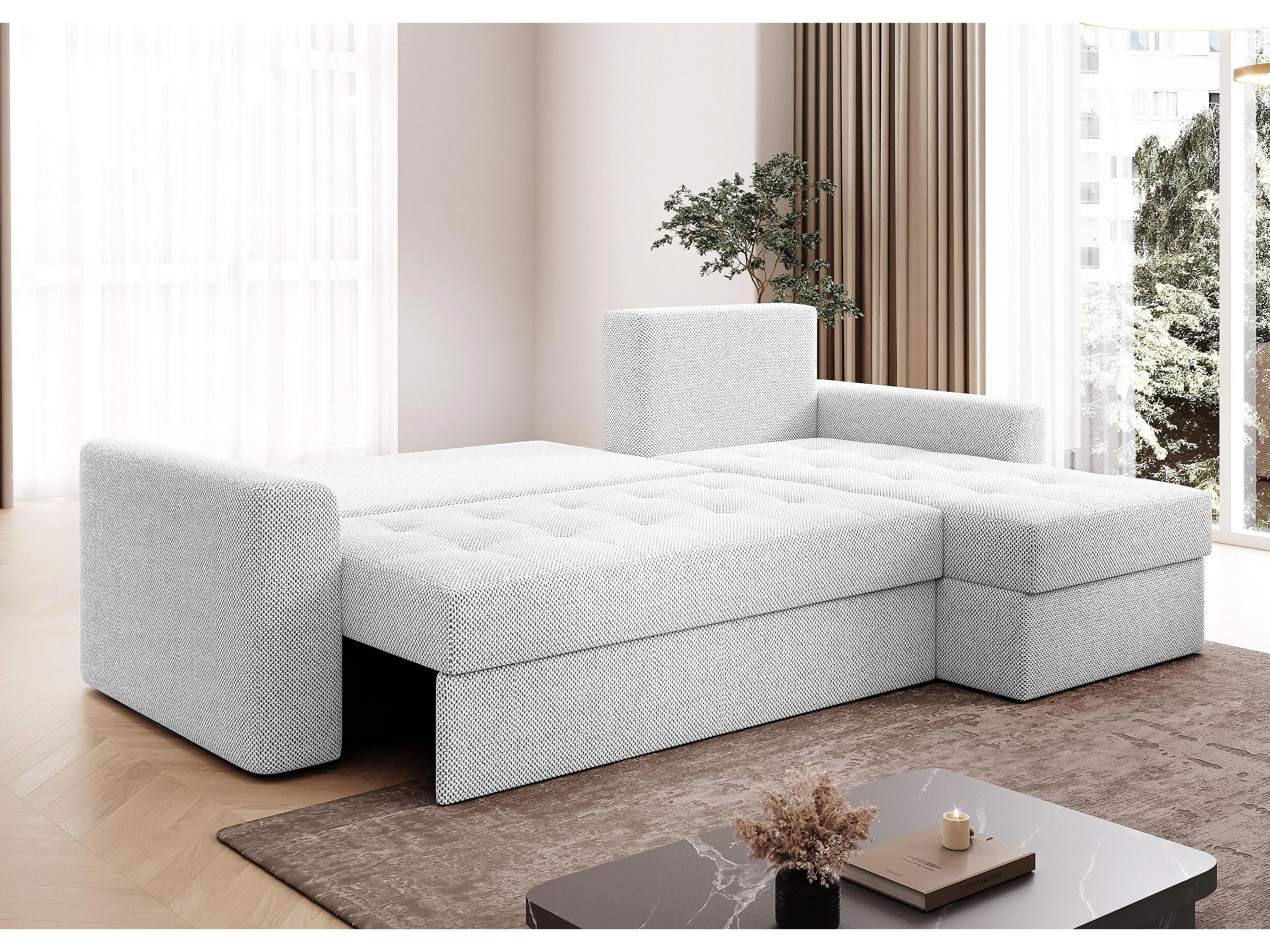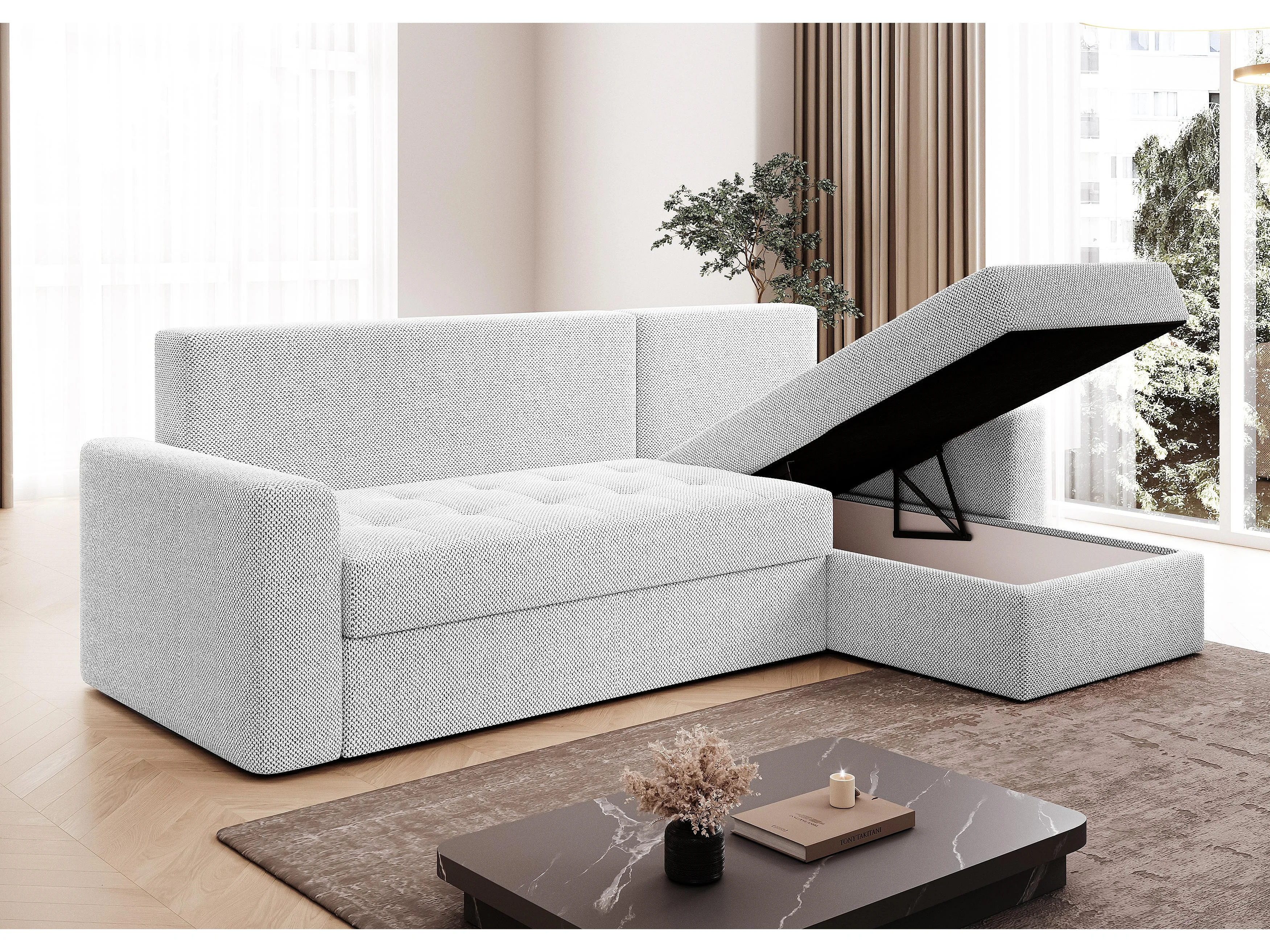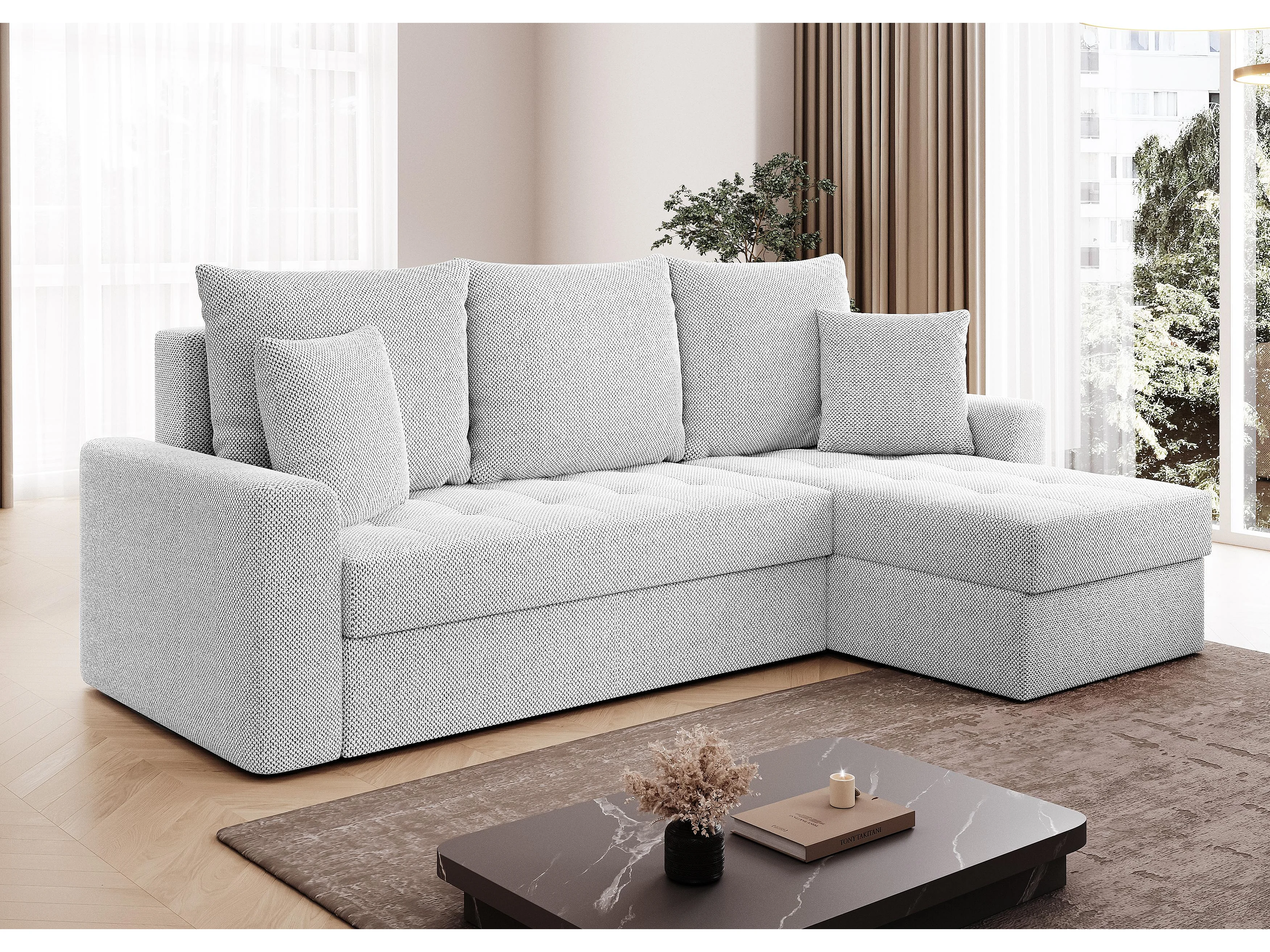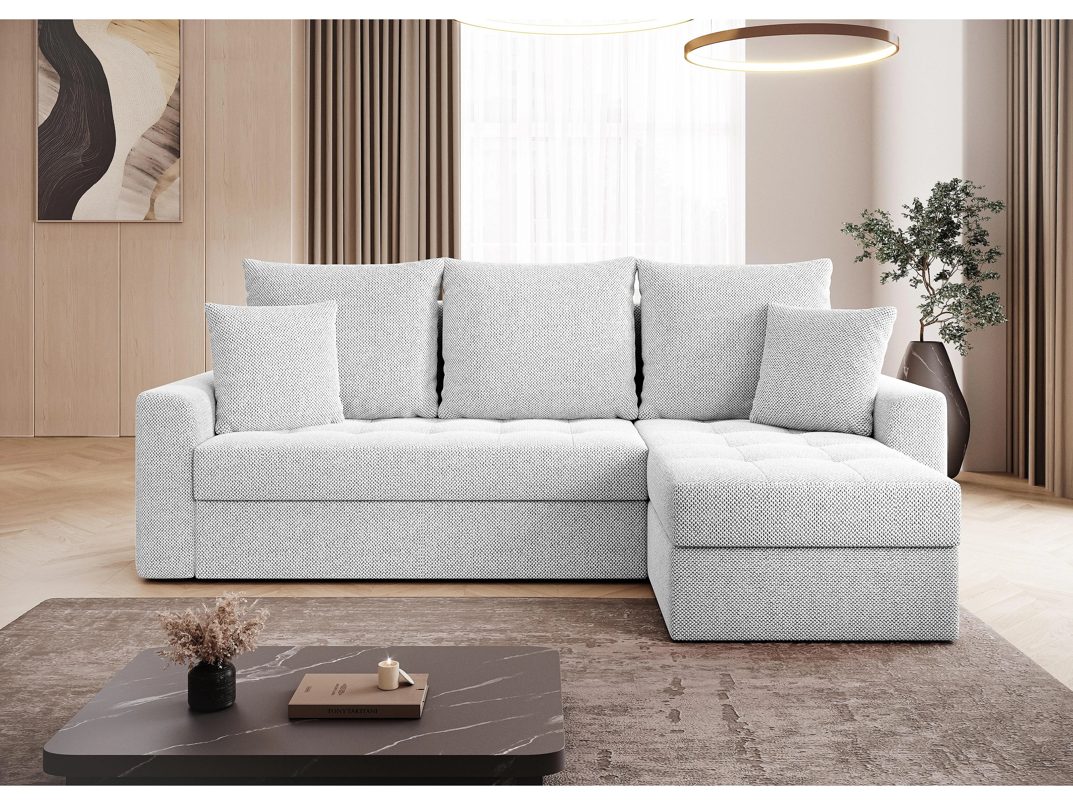 AX LIVING Canapé d’angle Karaman 238 cm blanc perle convertible avec coffre