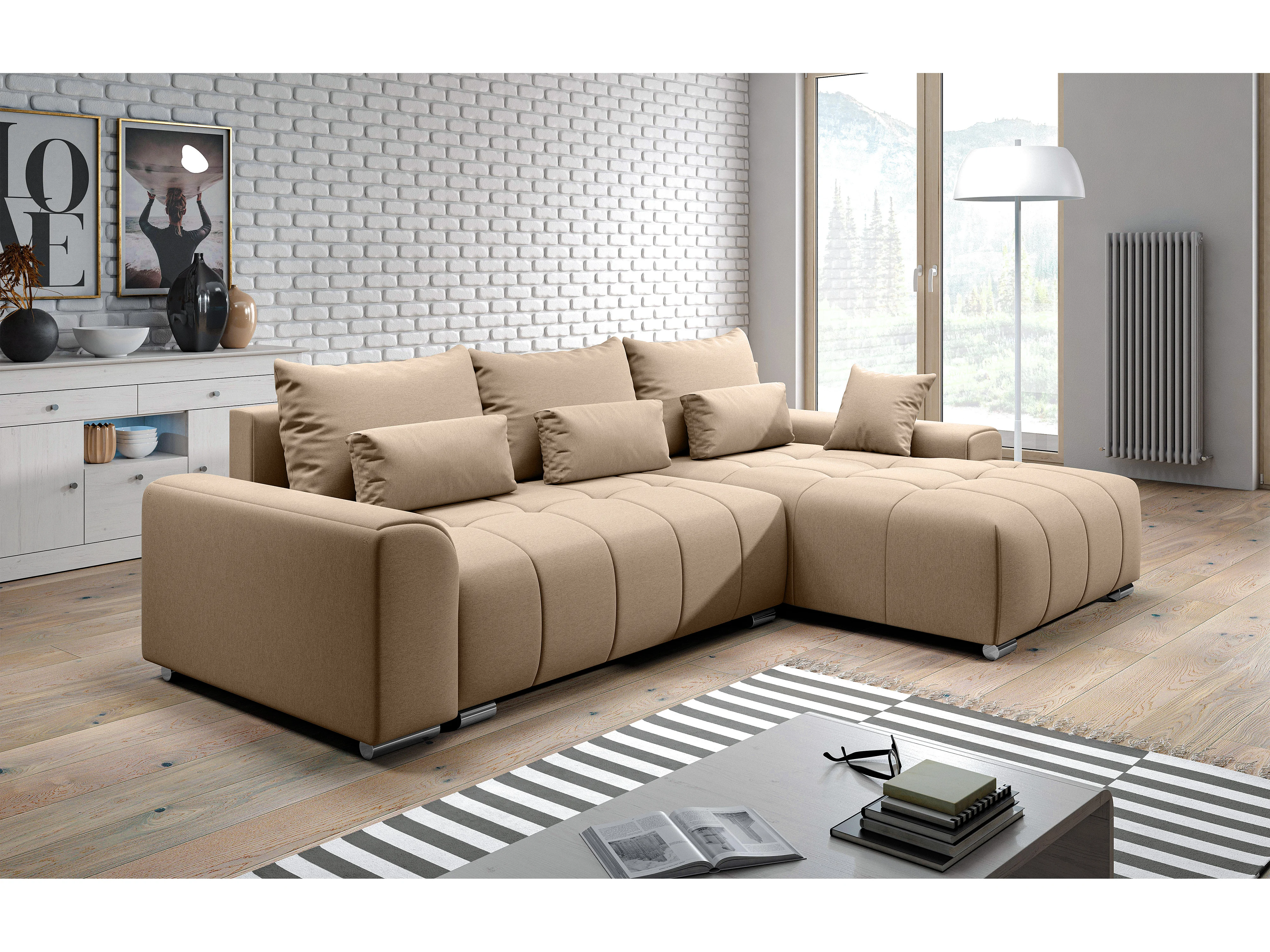 AX LIVING Canapé d’angle Rivolli 260 cm beige convertible avec coffre