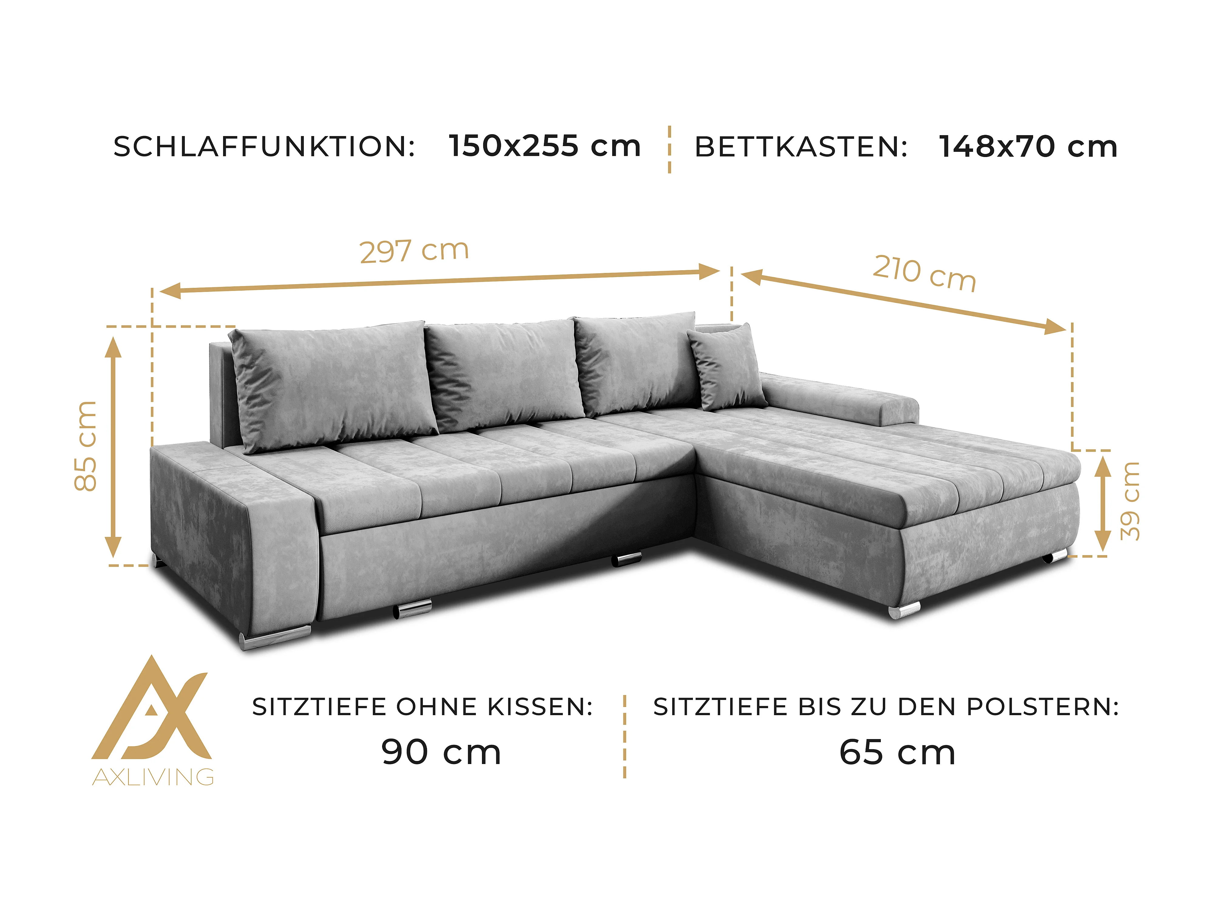 AX LIVING Canapé d’angle Tunceli anthracite 297 cm convertible moderne