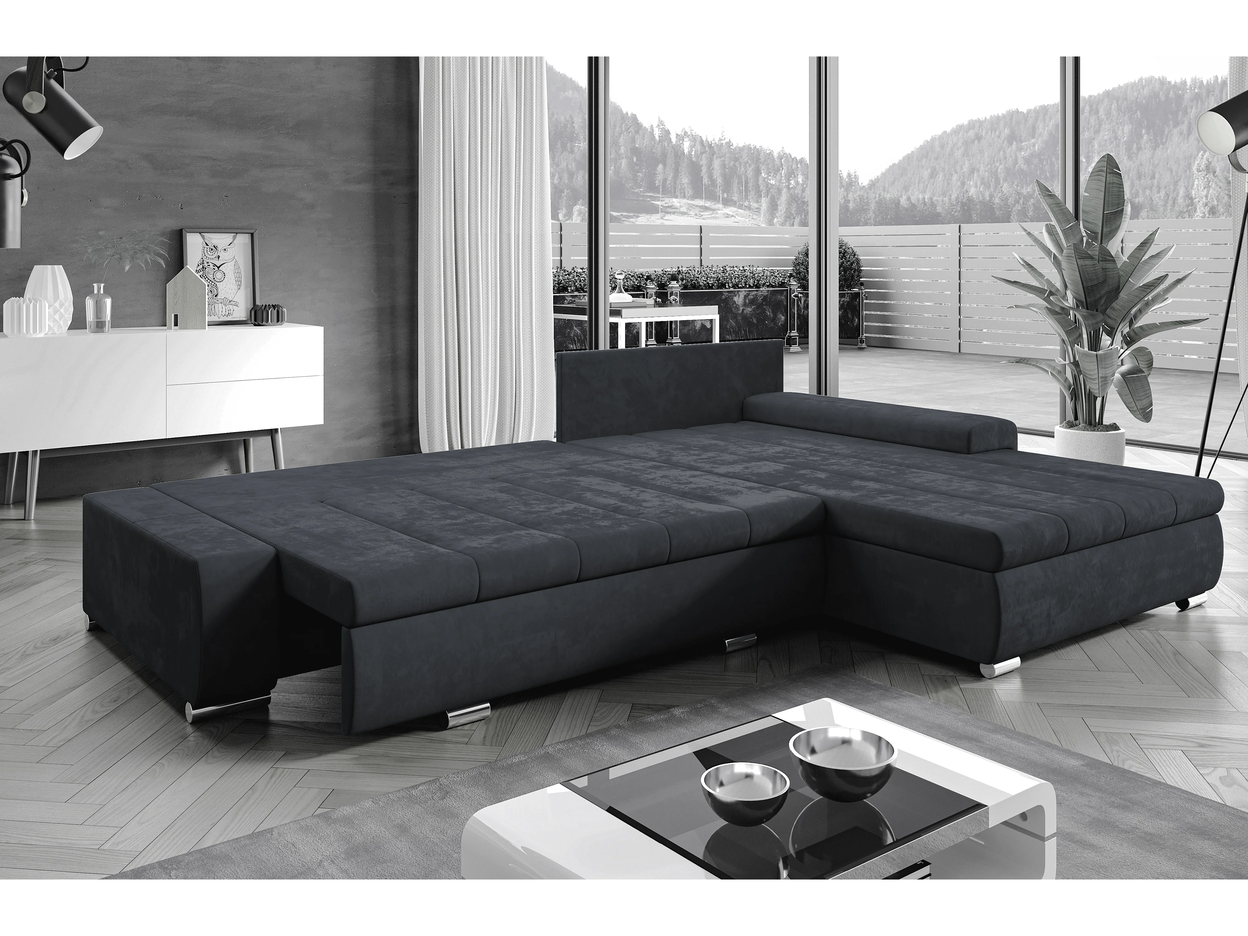 AX LIVING Canapé d’angle Tunceli gris 297 cm convertible moderne
