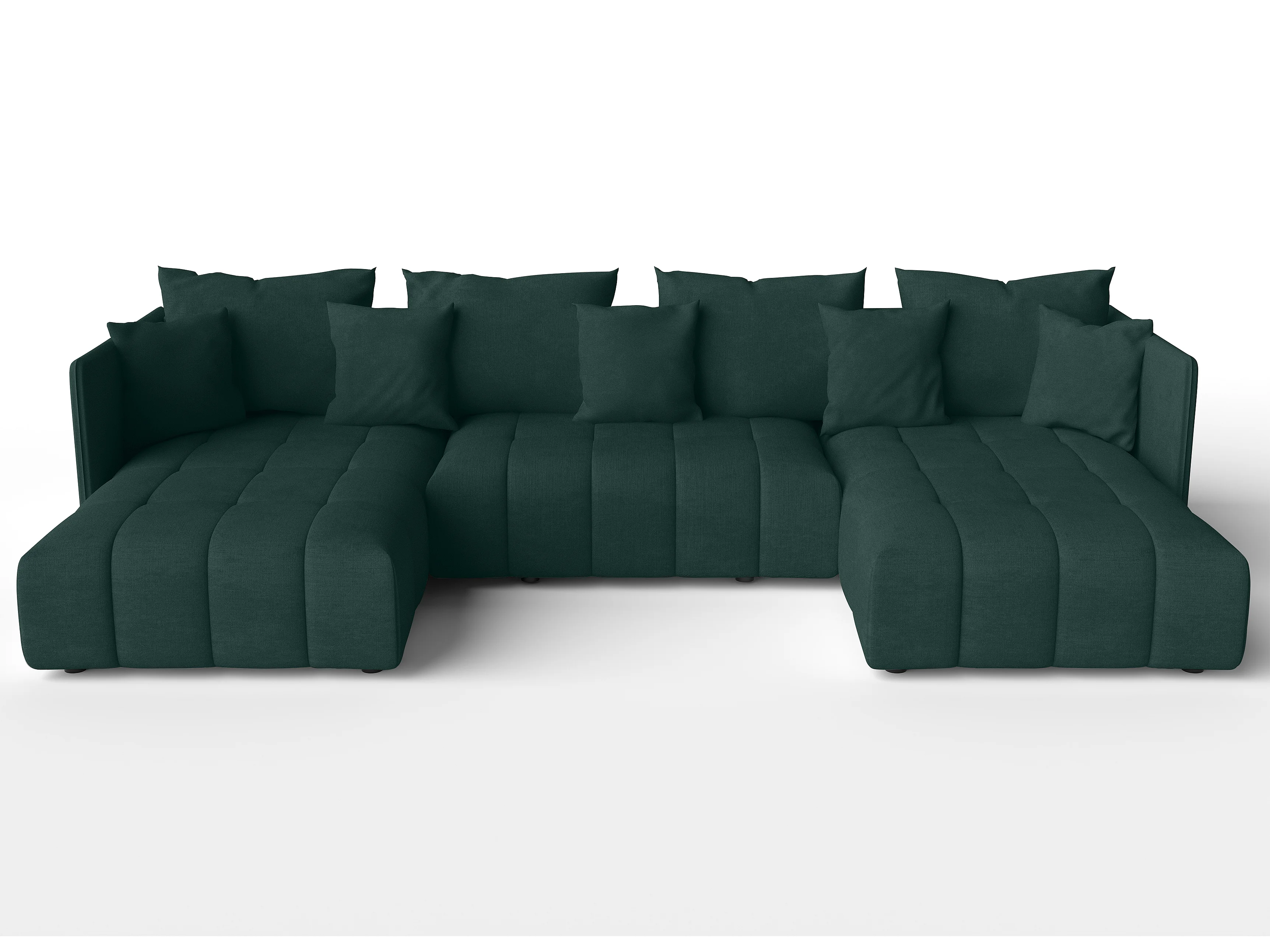 AX LIVING Canapé d'angle vert avec fonction sommeil Veliro U 345 cm