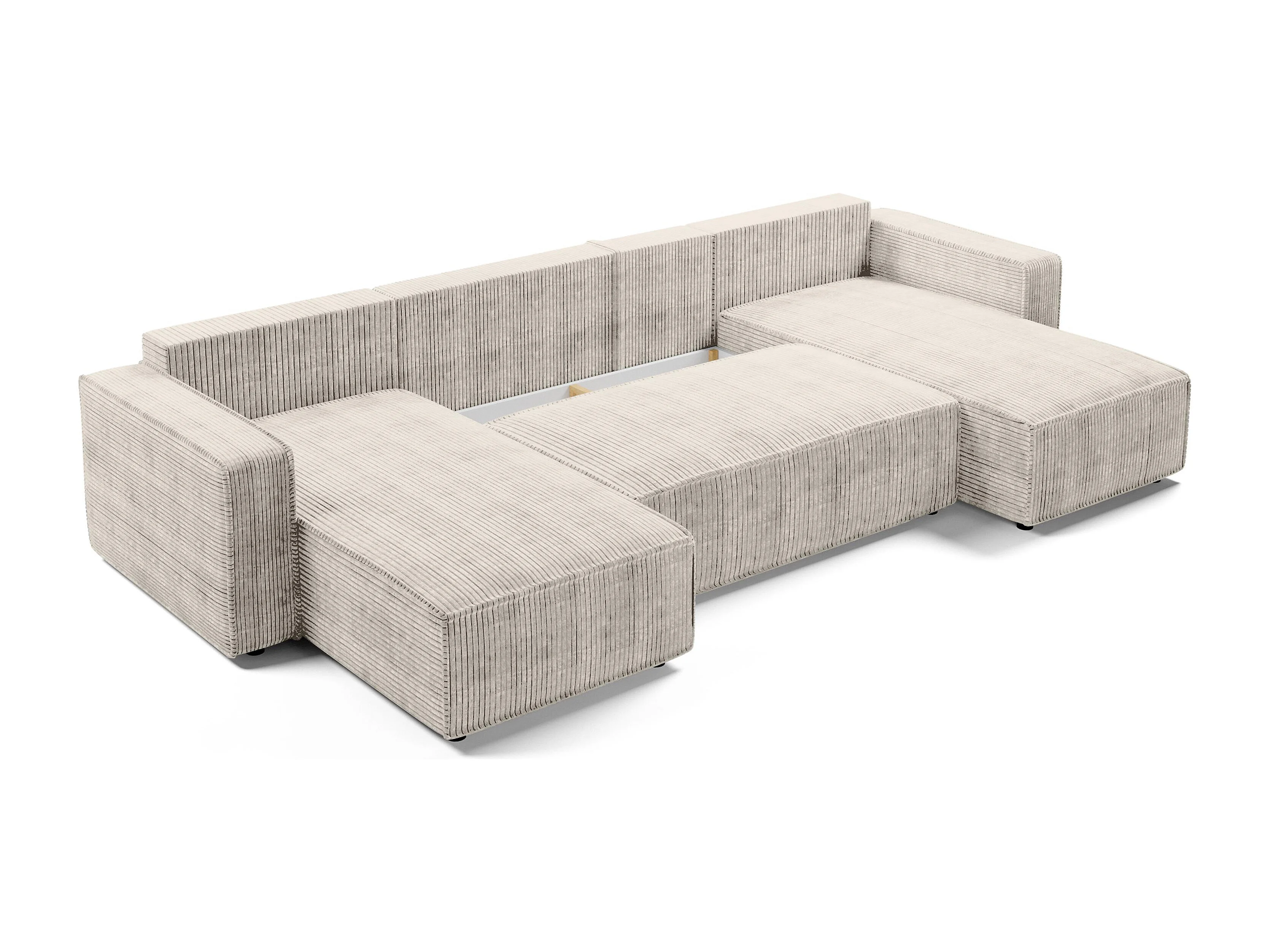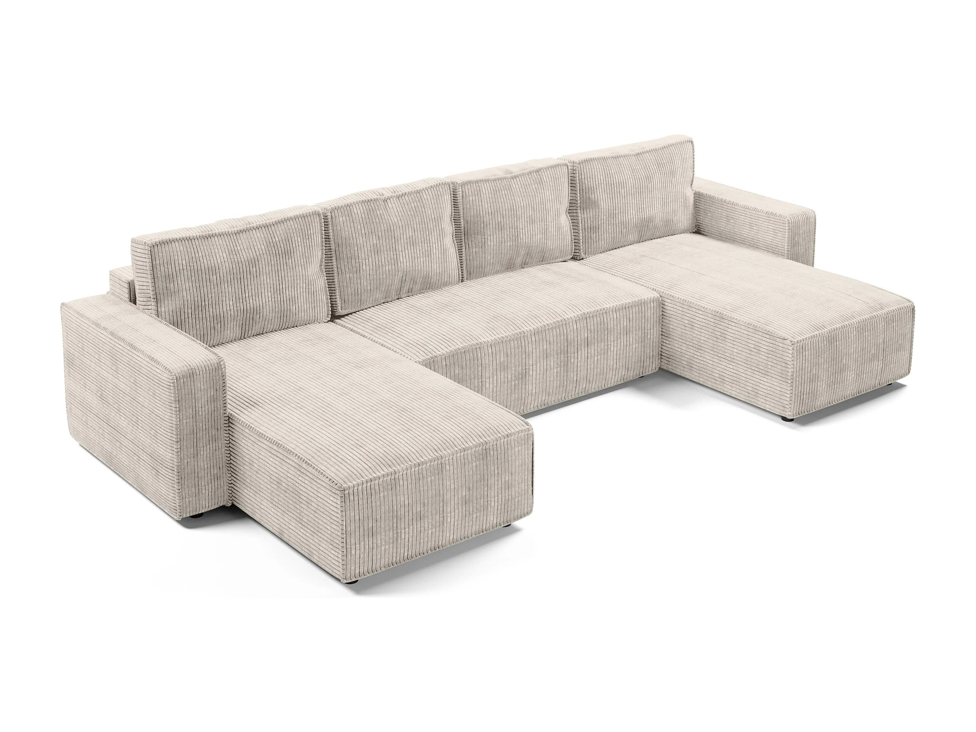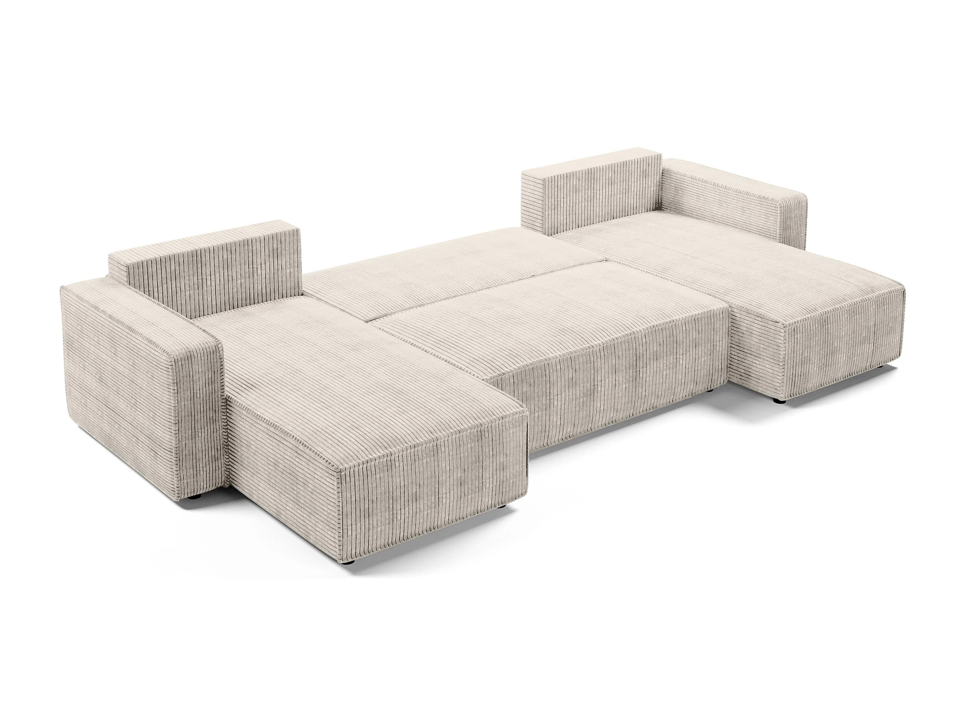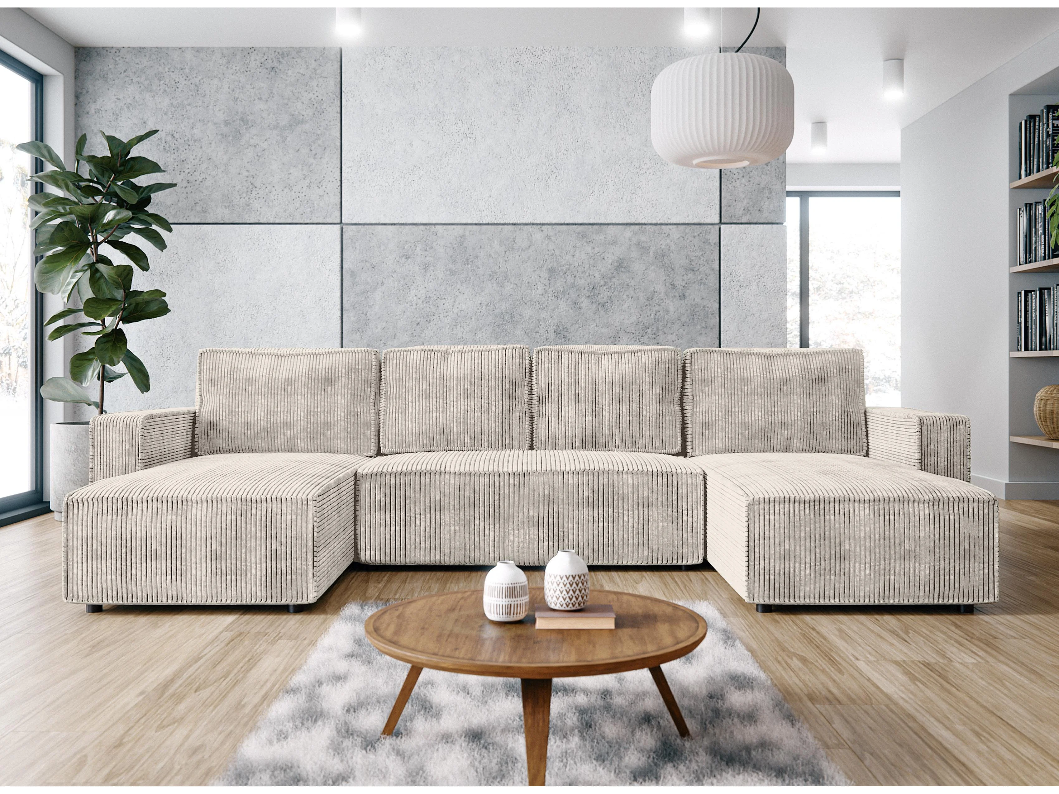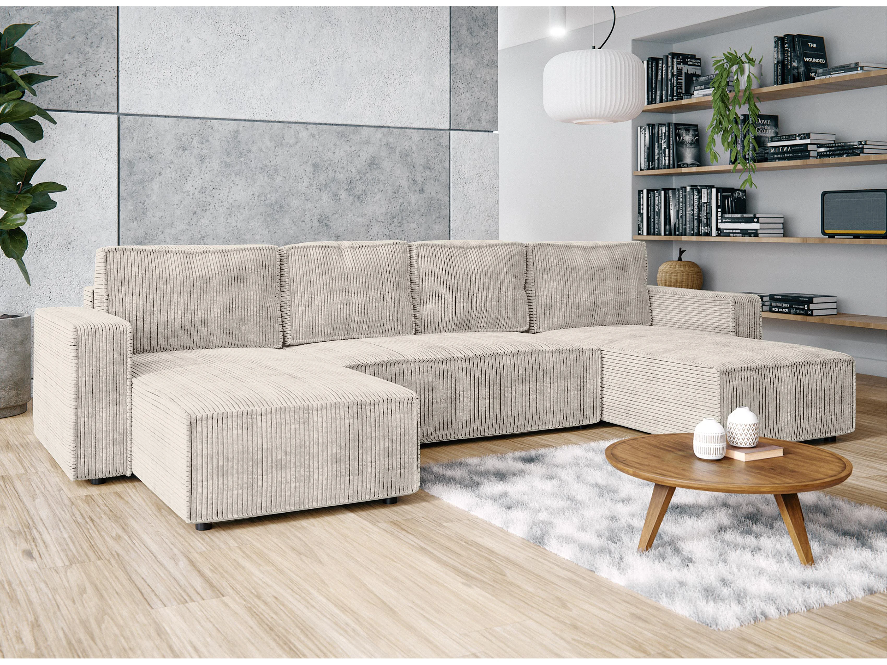 AX LIVING Canapé panoramique en U Aydin velours côtelé crème convertible