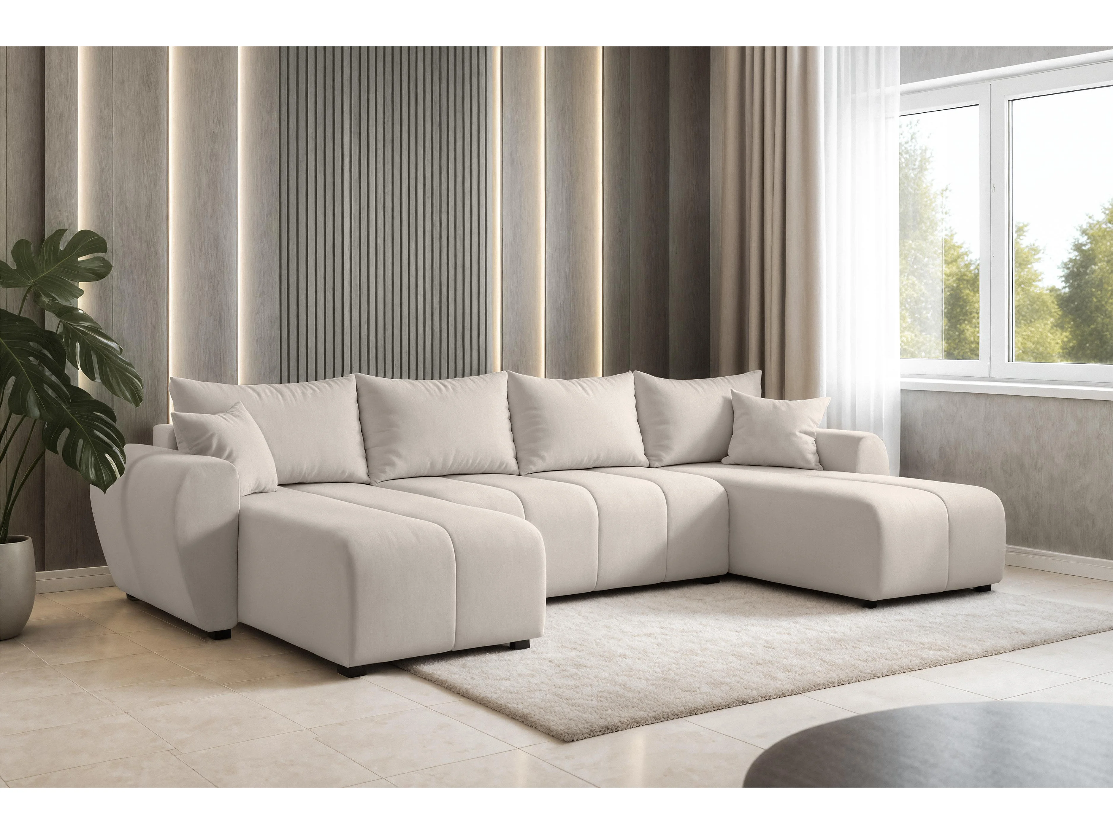 AX LIVING Canapé panoramique en U Malatya beige convertible 311 cm