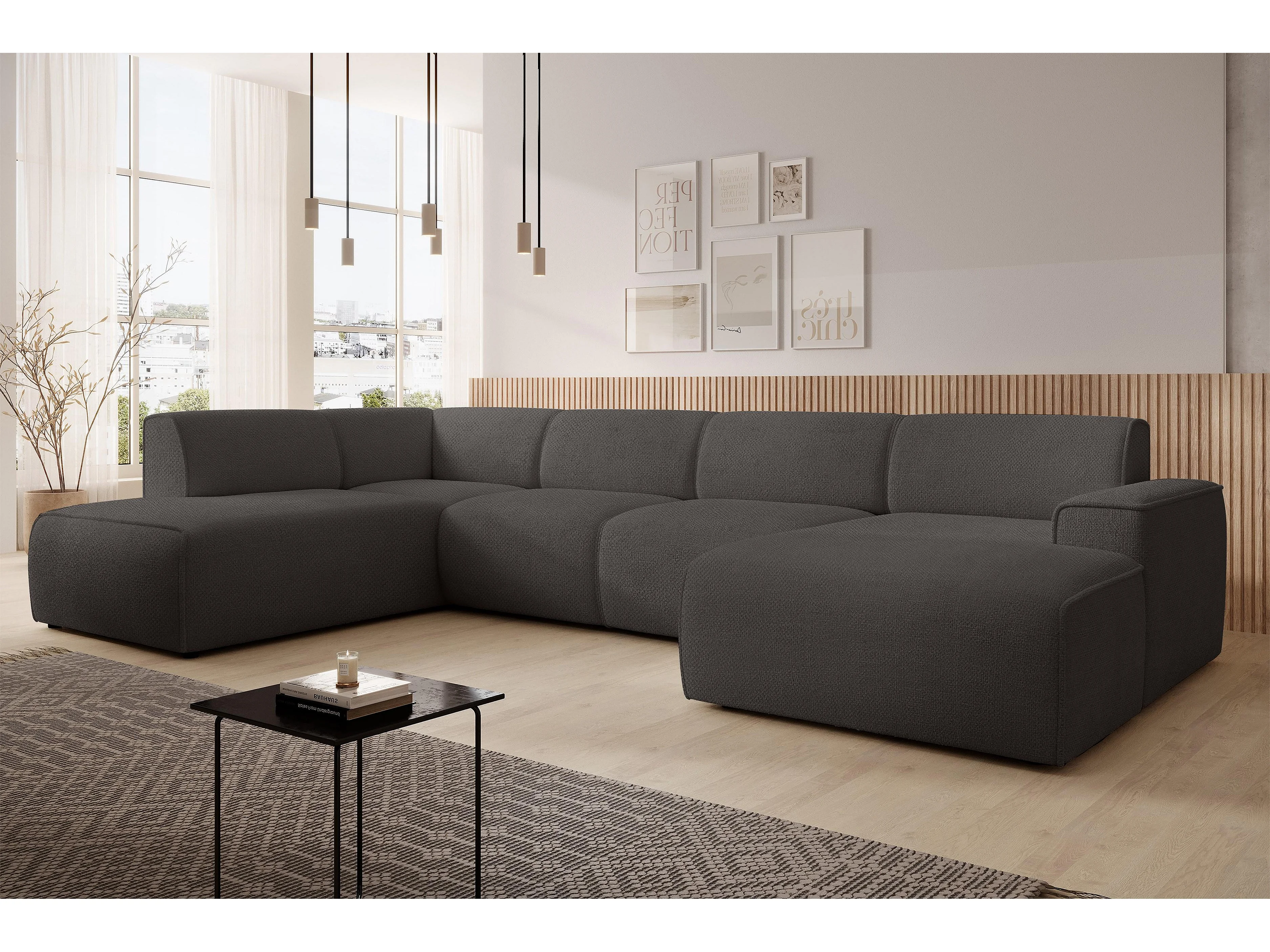 AX LIVING Canapé XXL en U Didim gris 378 cm moderne spacieux gauche