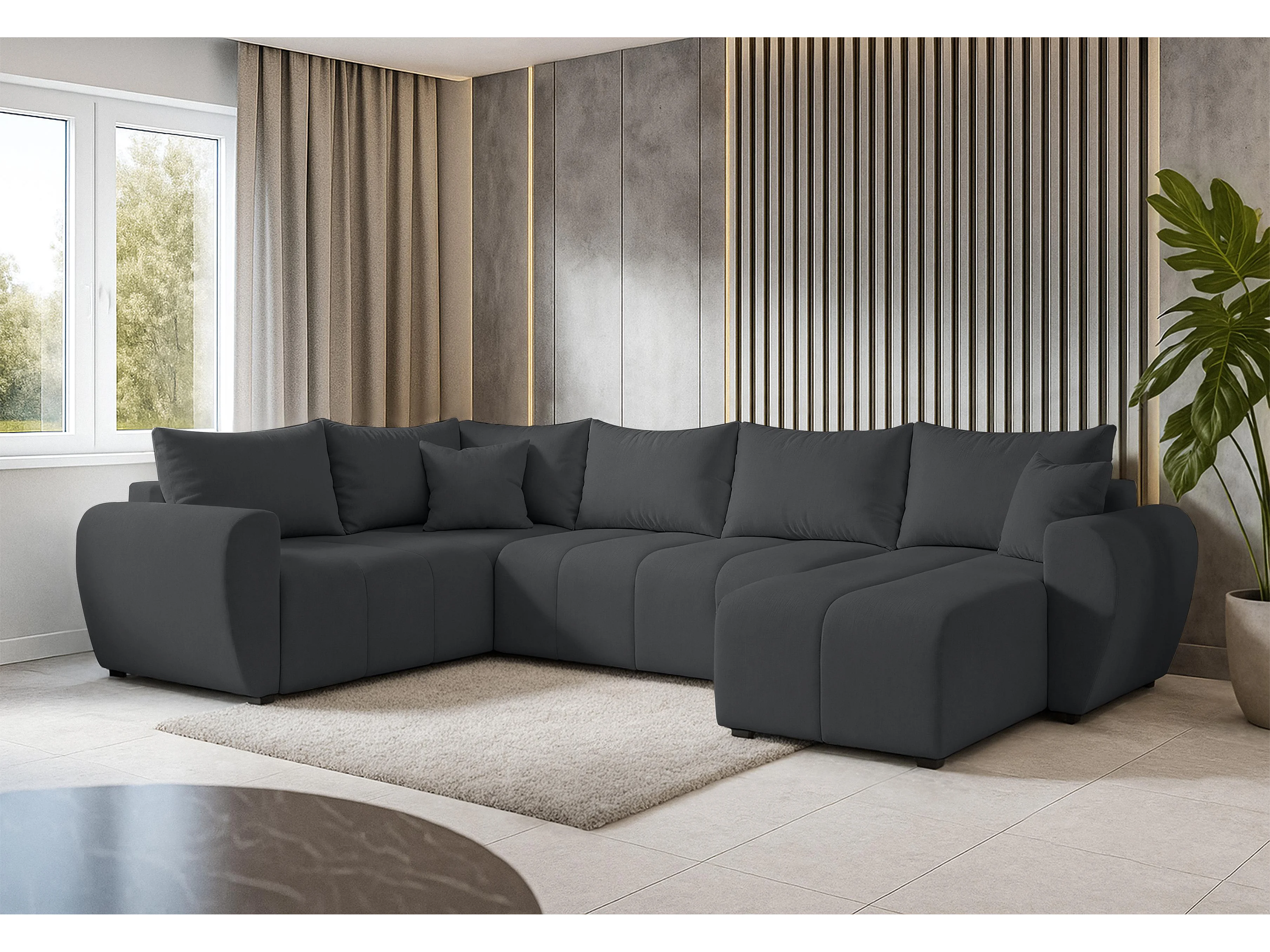AX LIVING Canapé XXL en U Malatya gris foncé 303 cm convertible gauche