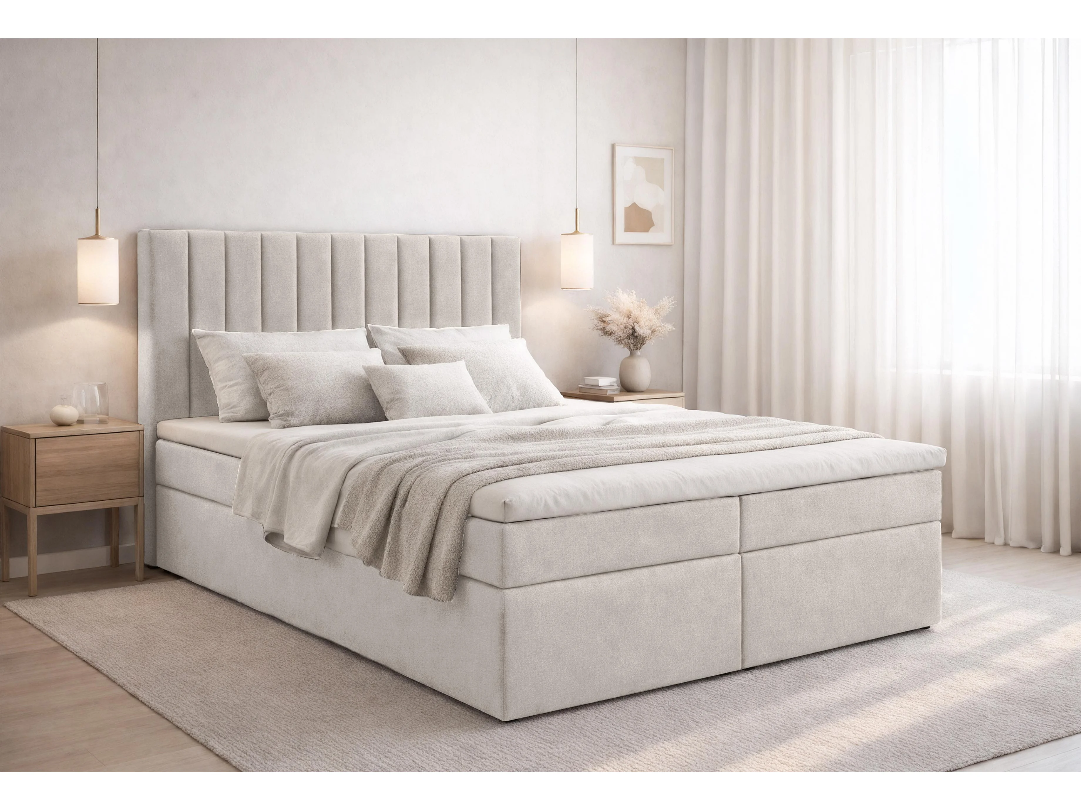 AX LIVING lit boxspring avec rangement beige 180x200 cm avec surmatelas Bursa lit double