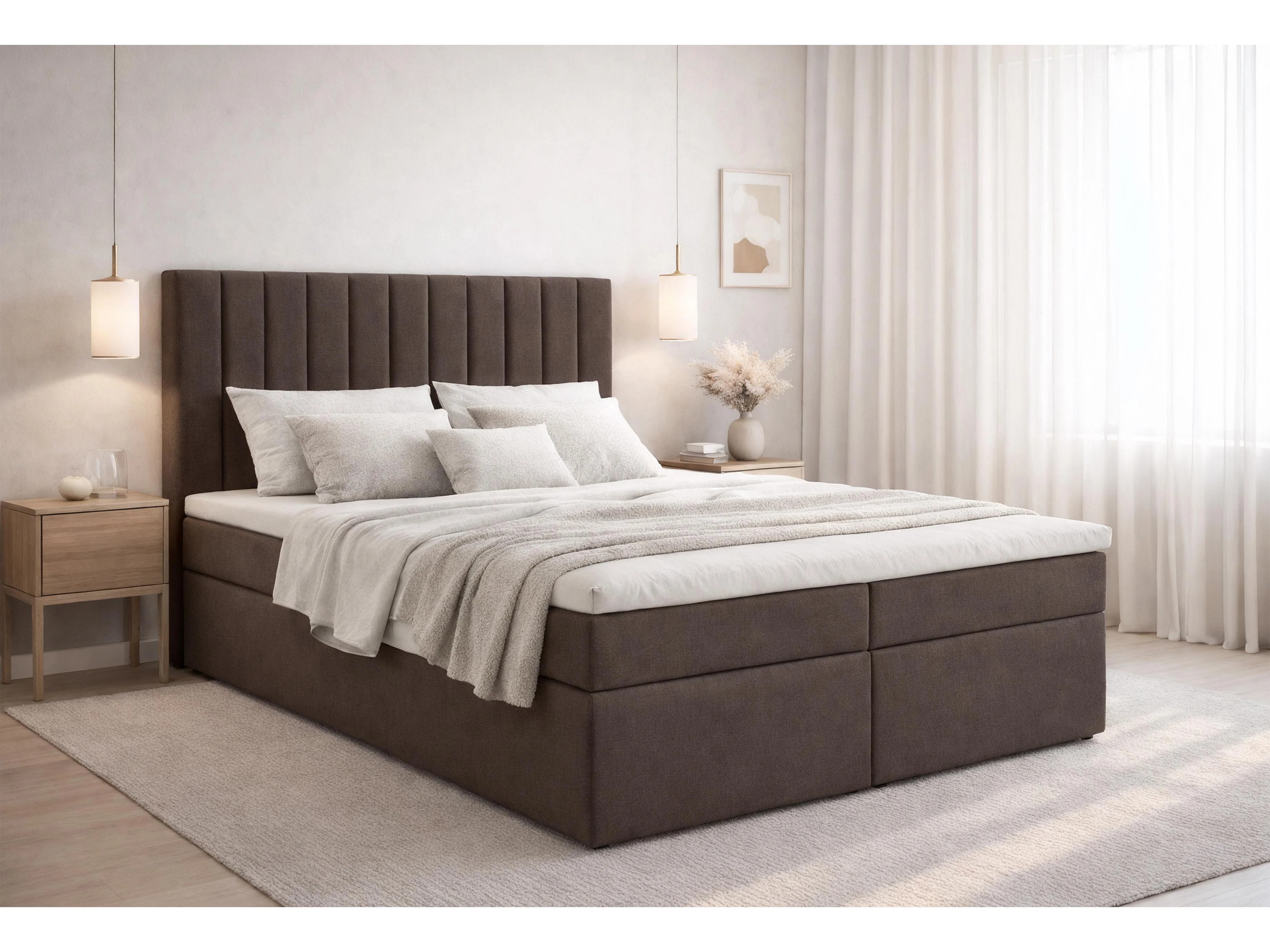AX LIVING lit boxspring avec rangement marron 180x200 cm avec surmatelas Bursa lit double