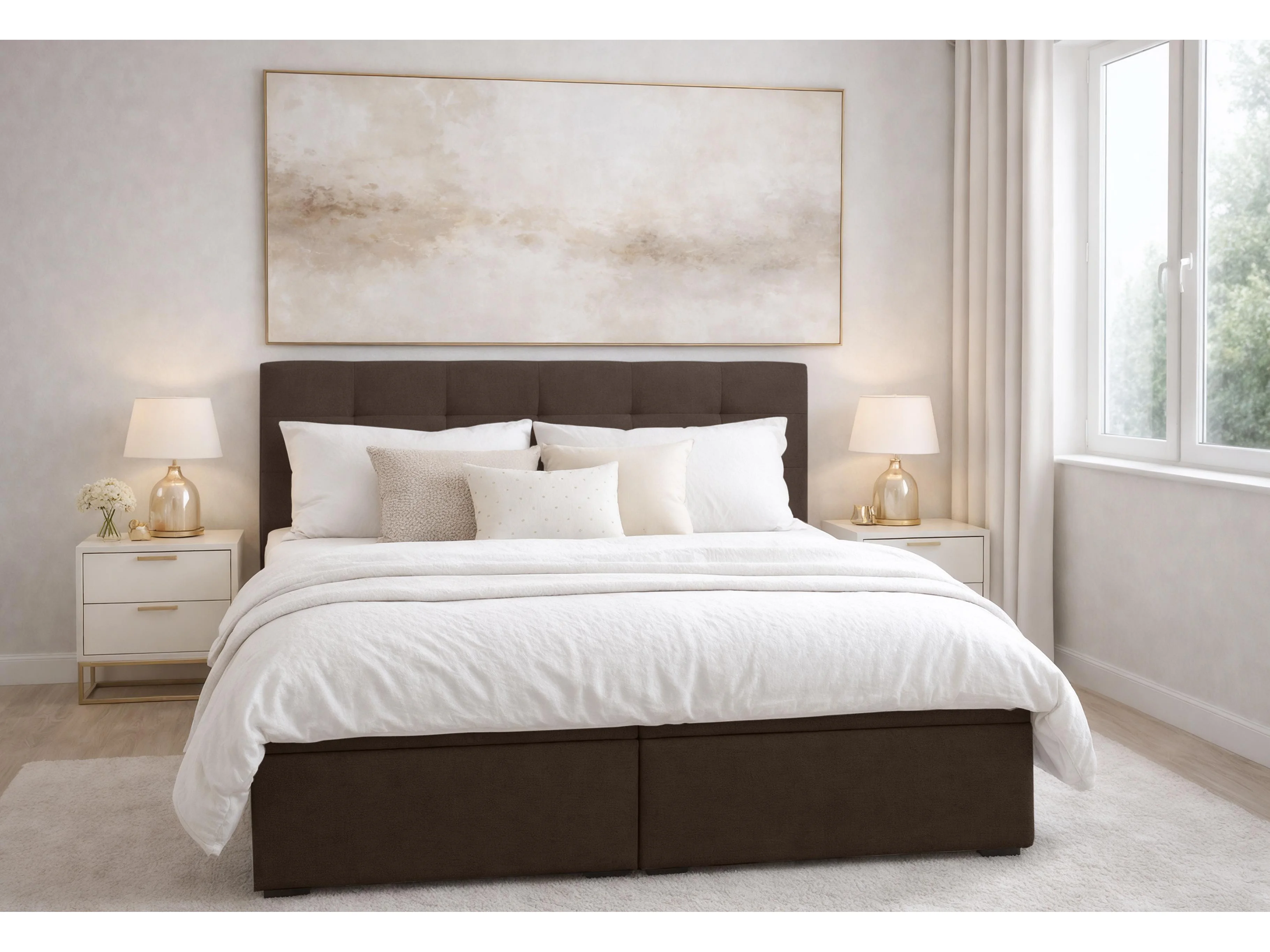 AX LIVING lit boxspring avec rangement marron 180x200 cm avec surmatelas Galata lit double