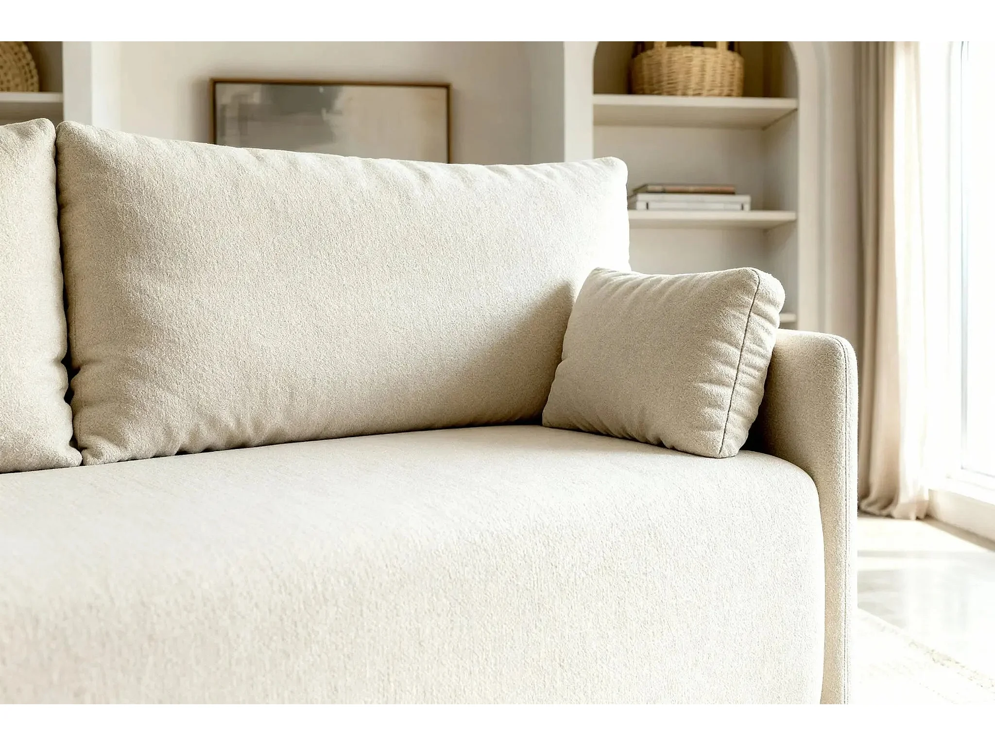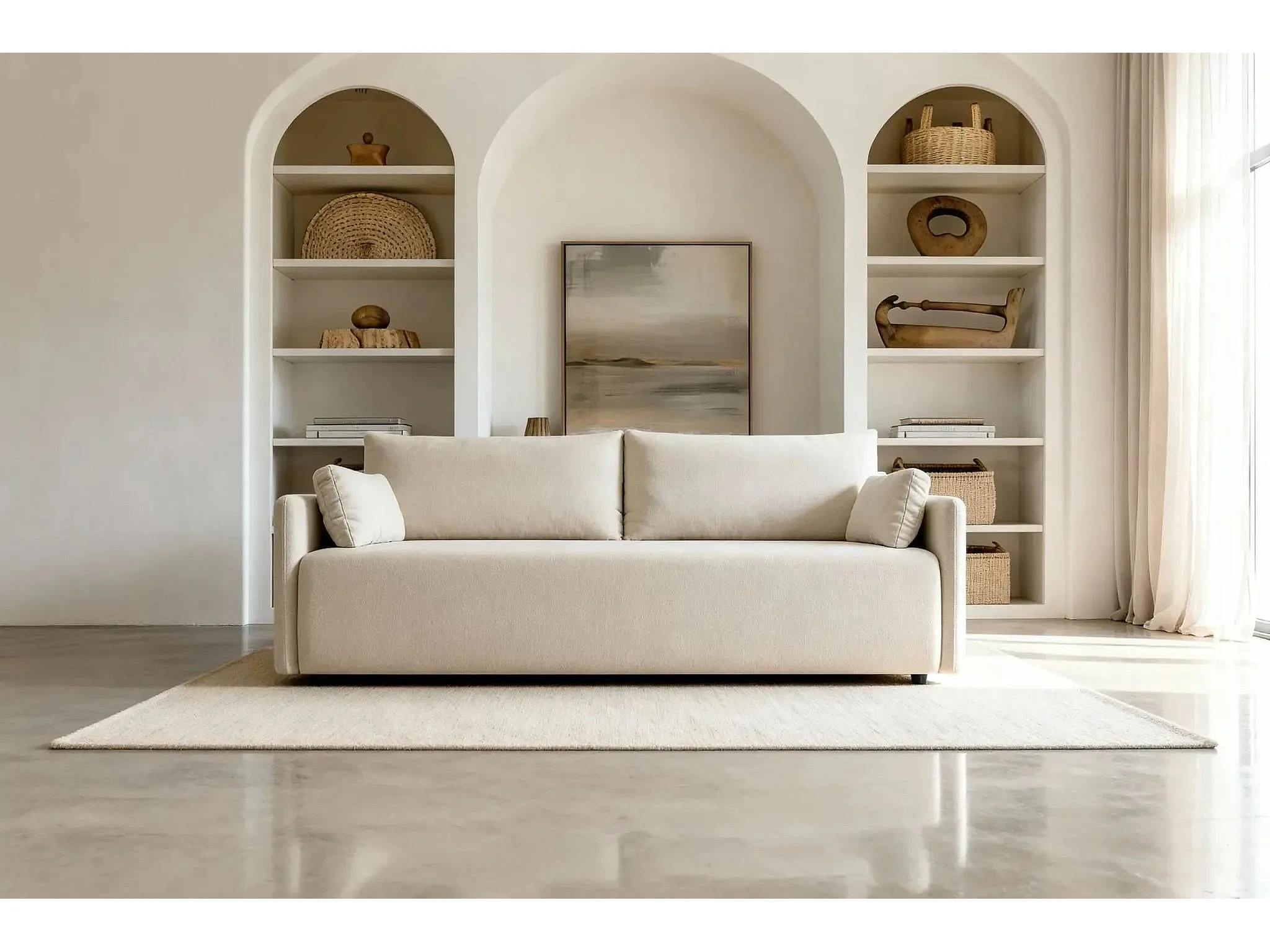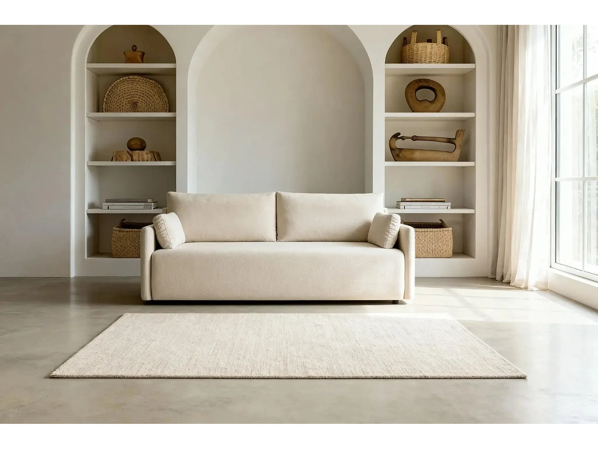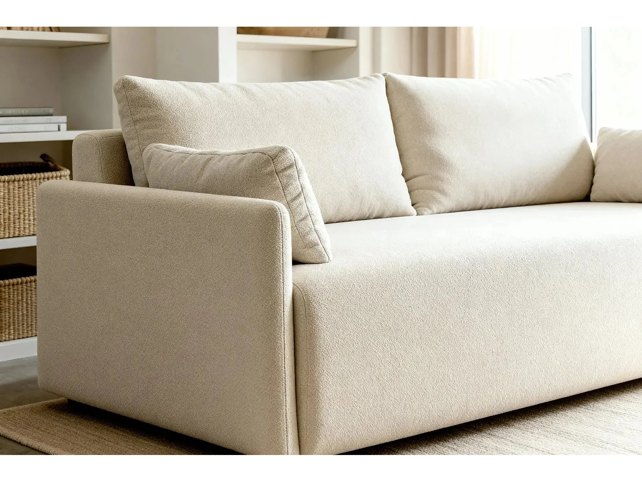AXELLE - Canapé droit convertible tissu lisse 2 places - Beige