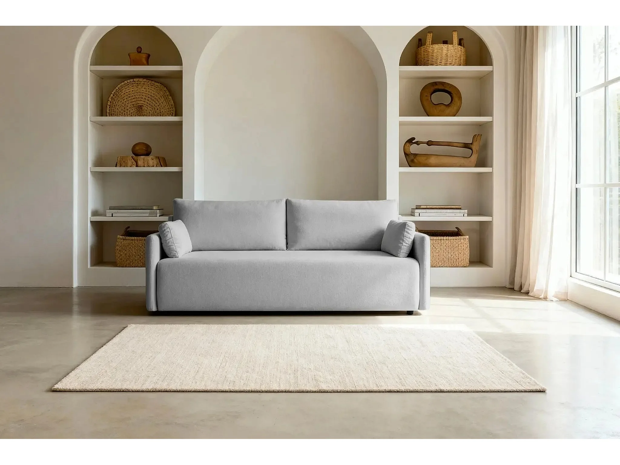 AXELLE - Canapé droit convertible tissu lisse 2 places - Gris clair