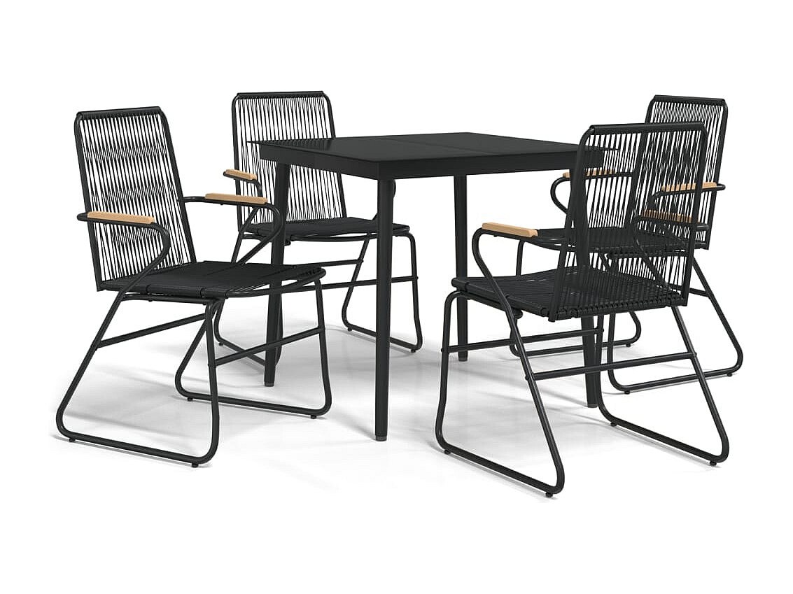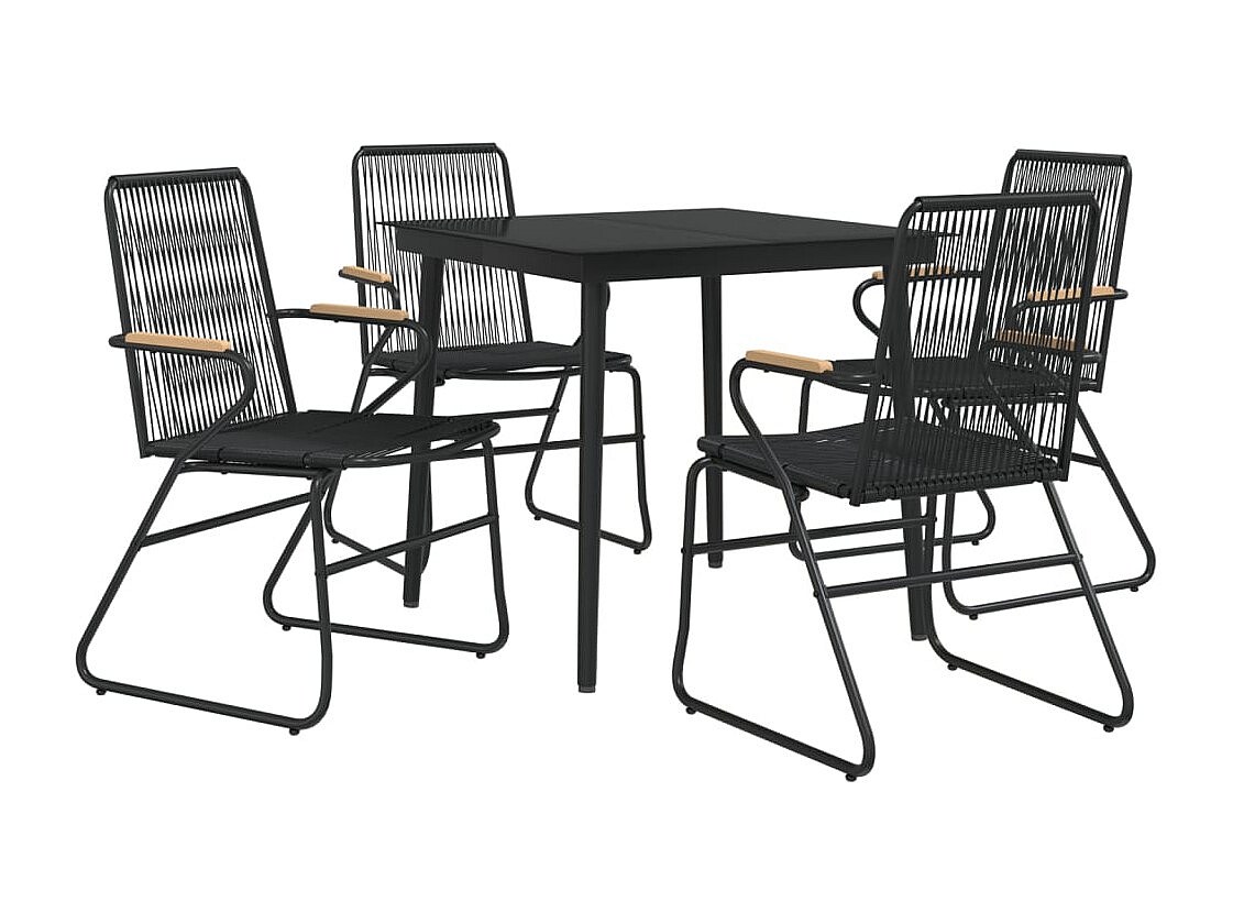 Ayisha Ensemble à manger de jardin 5 pcs Noir Rotin PVC