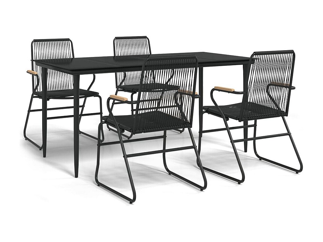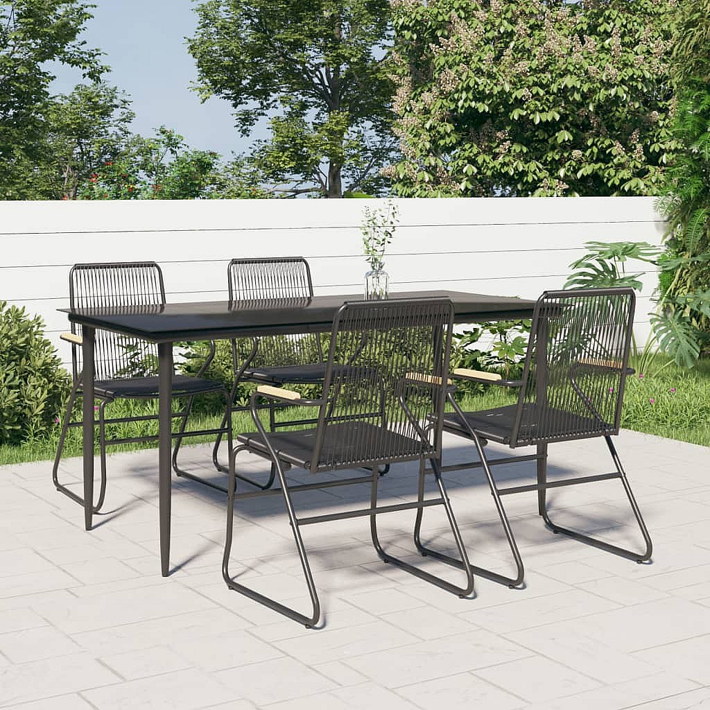 Ayisha Ensemble à manger de jardin 5 pcs Noir Rotin PVC