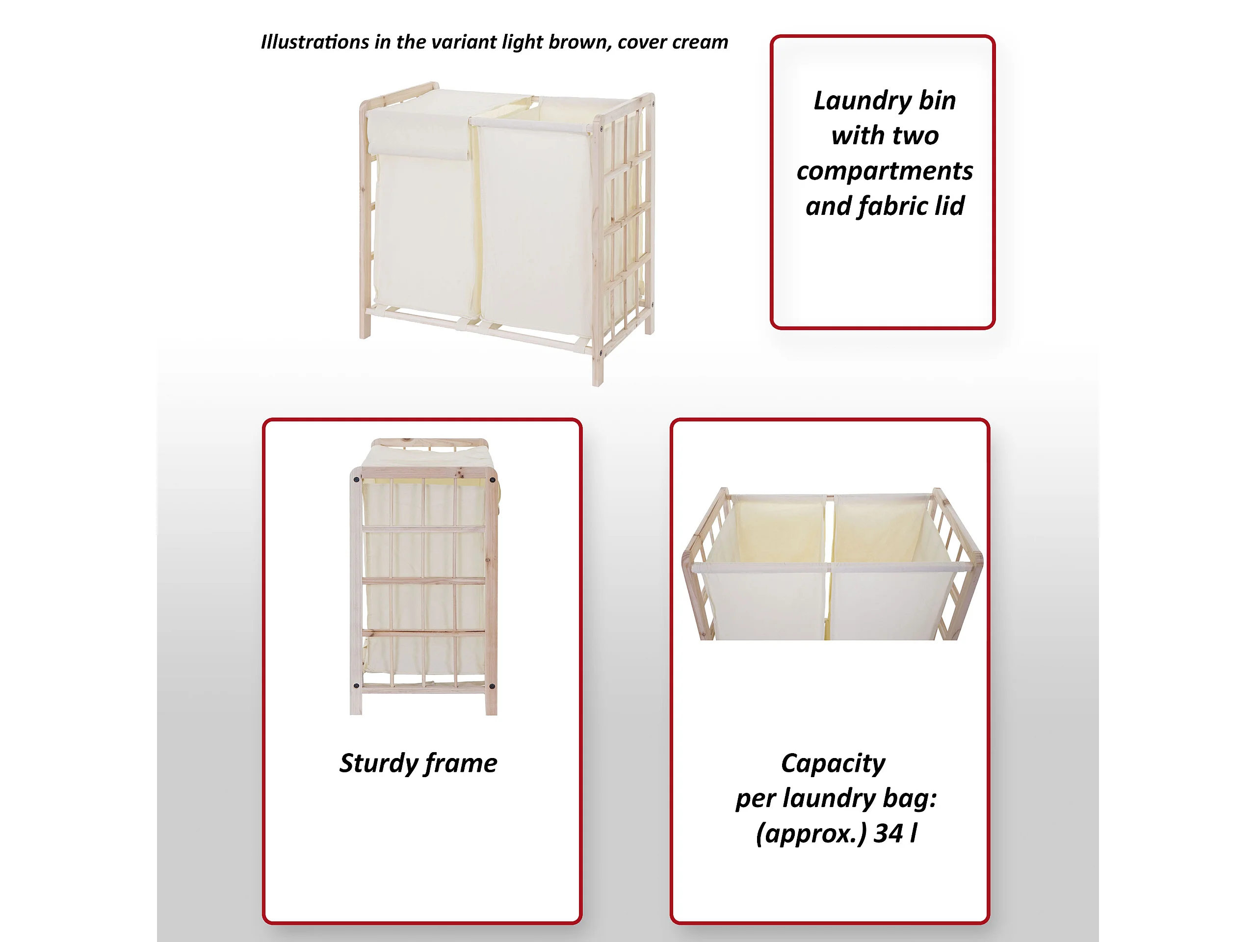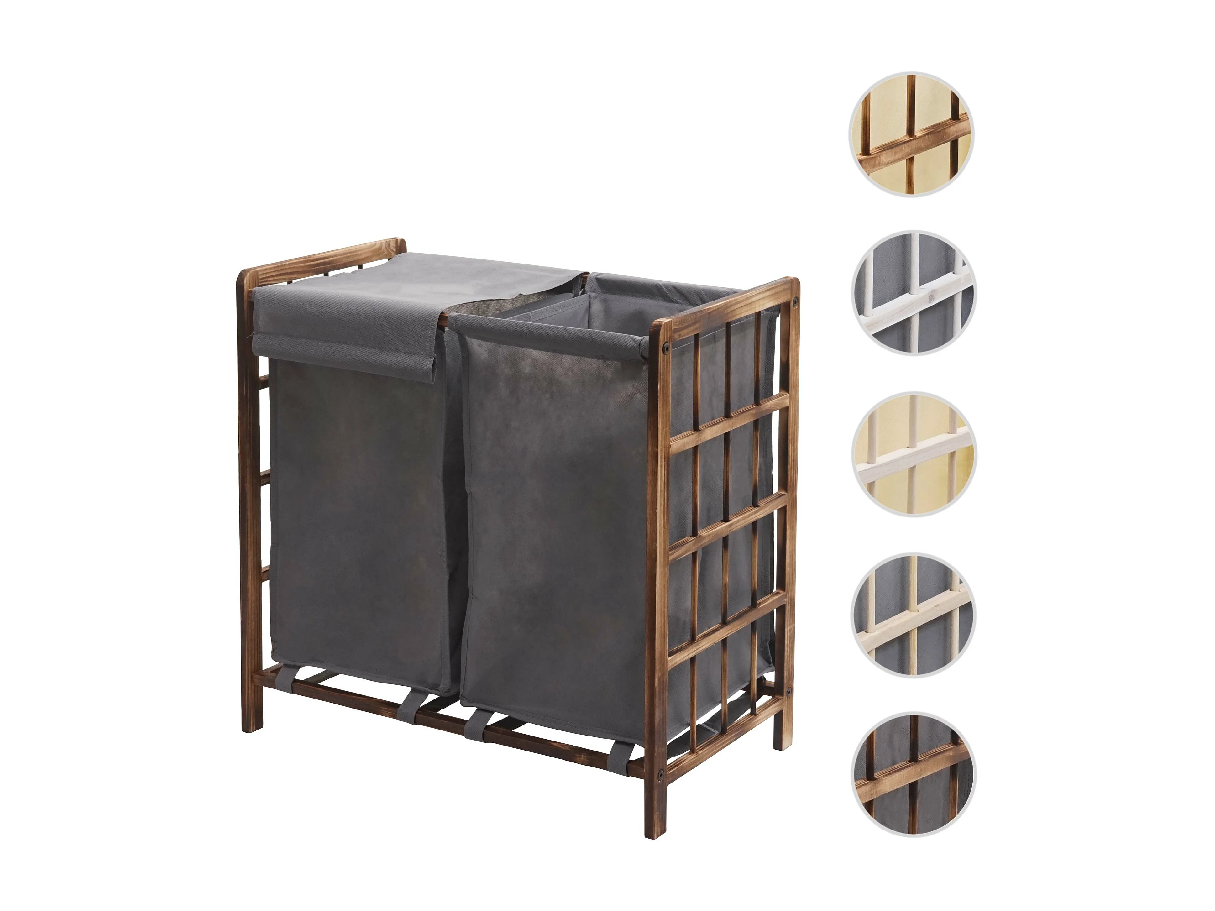 Bac à linge HWC-B60, Boîte à linge panier à linge, bois massif 60x60x33cm 68l ~ brun, couvercle gris