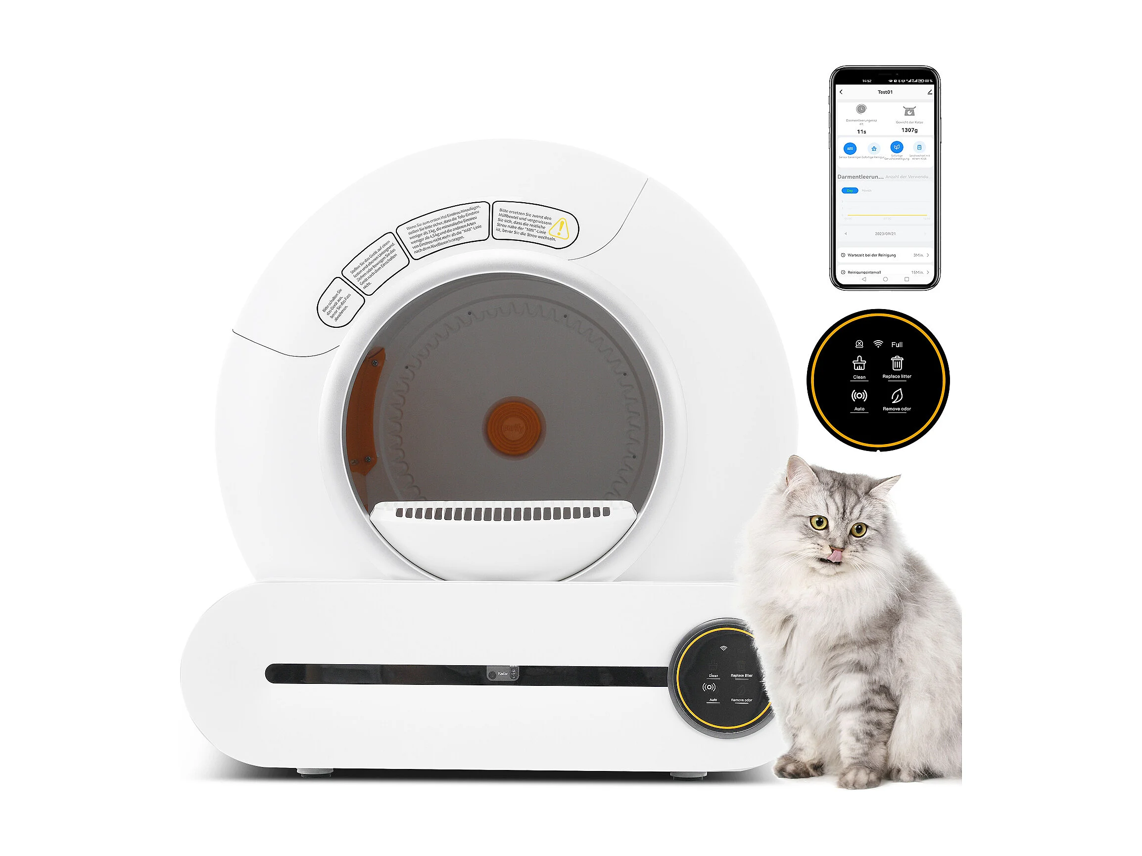 Bac à litière adaptatif autonettoyant pour chat de 65 L Capteur infrarouge, élimine les odeurs, contrôlé par application - Blanc