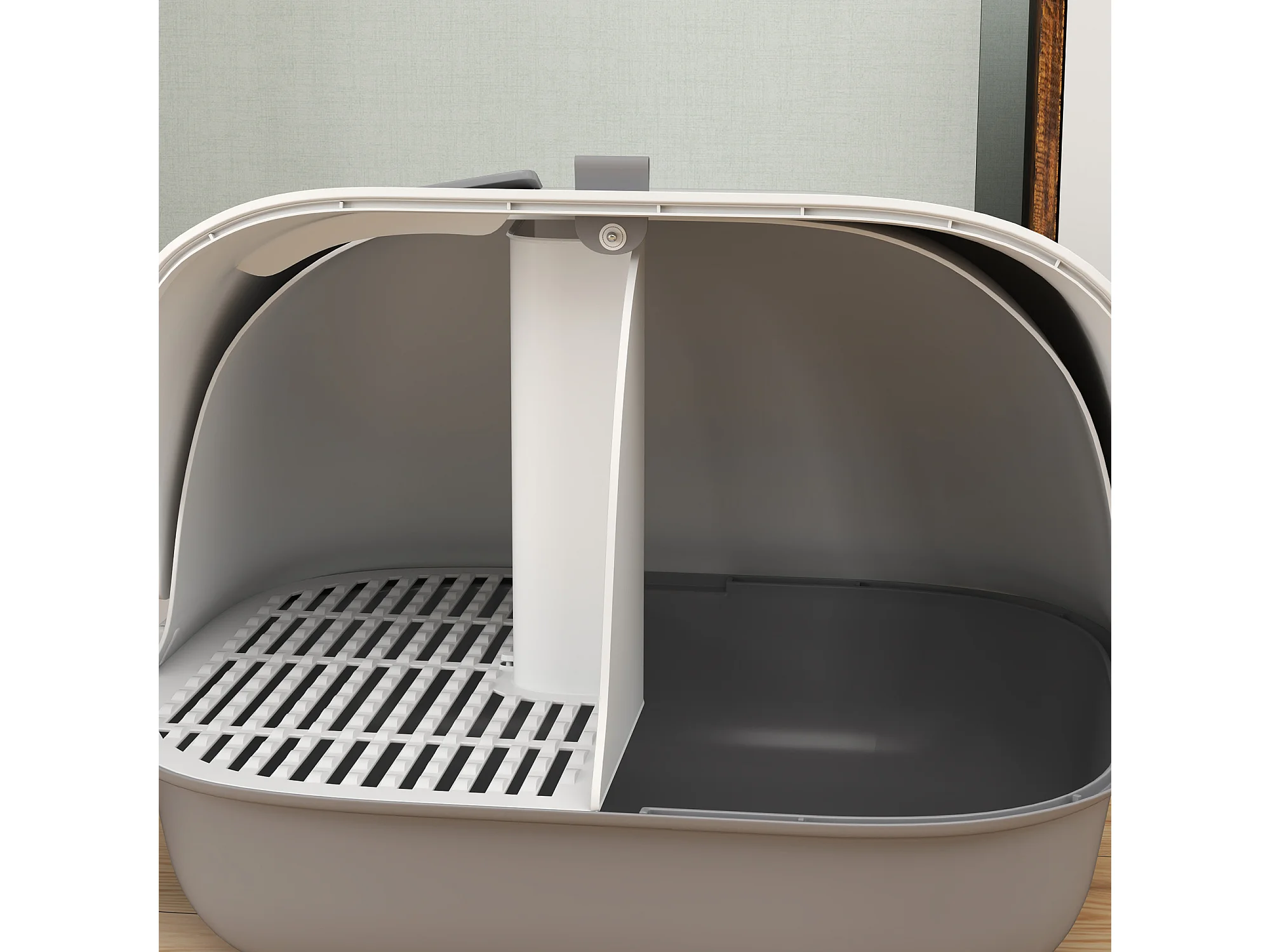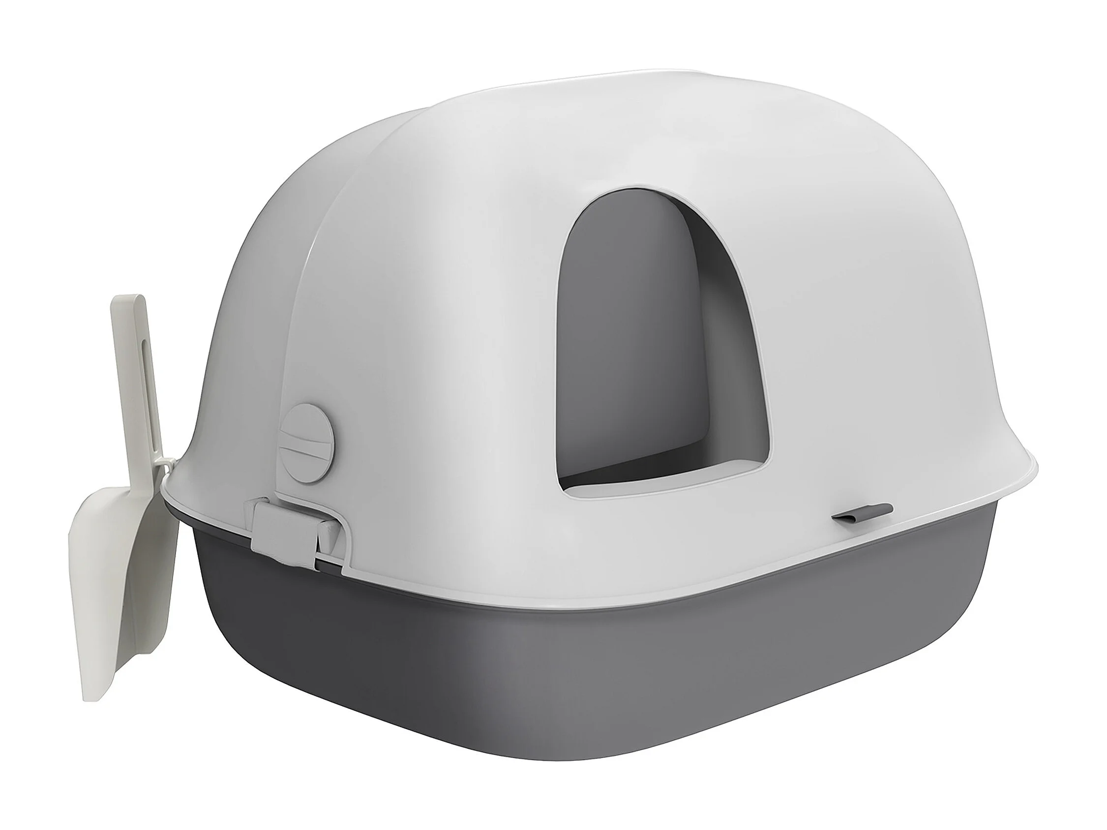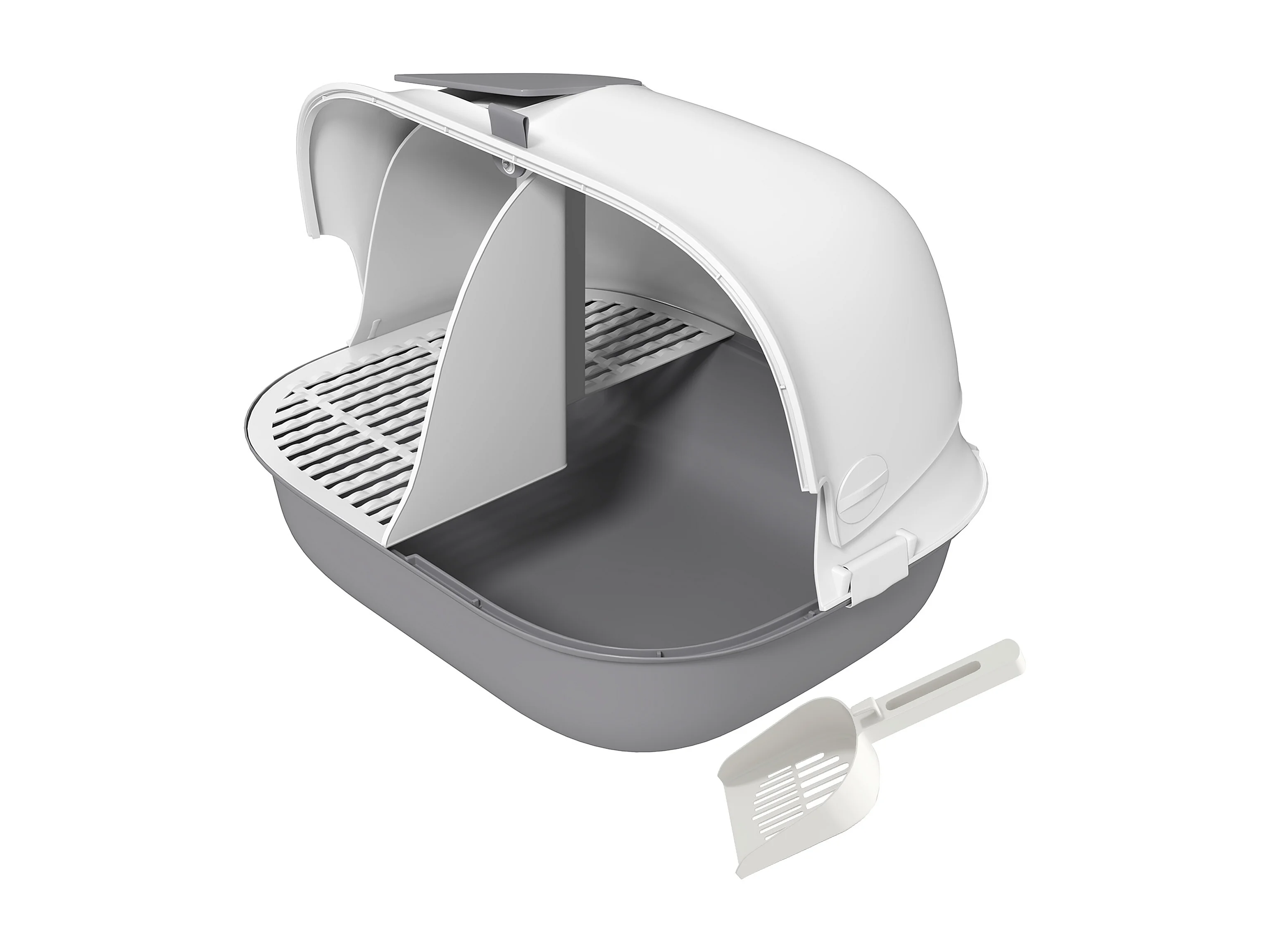 Maison de toilette chat porte battante et haute pelle PP gris blanc