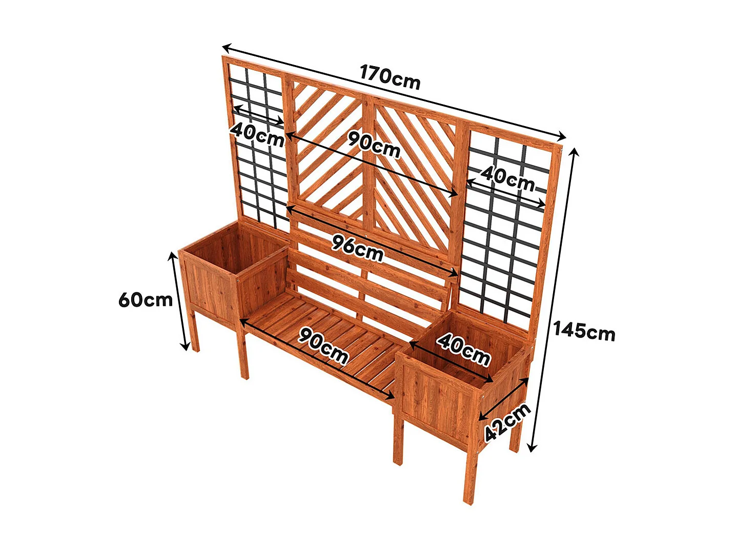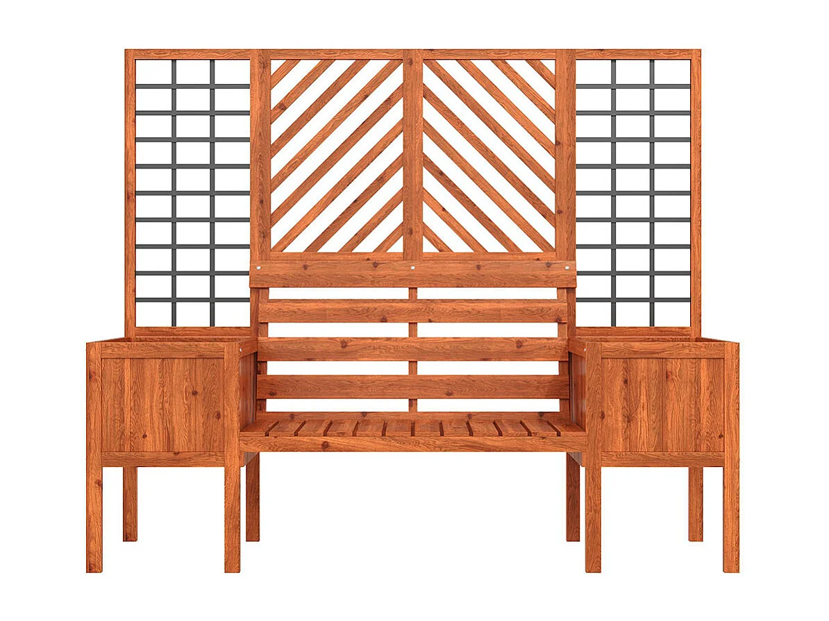 Bac à plantes avec treillis support croissance jardinière bois sapin massif marron siège intégré jardin terrasse