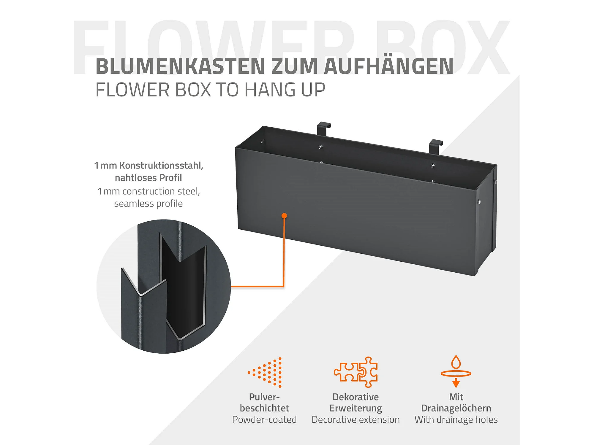Bac à plantes jardinière pot panier fleurs suspendu anthracite acier 50x12x15 cm