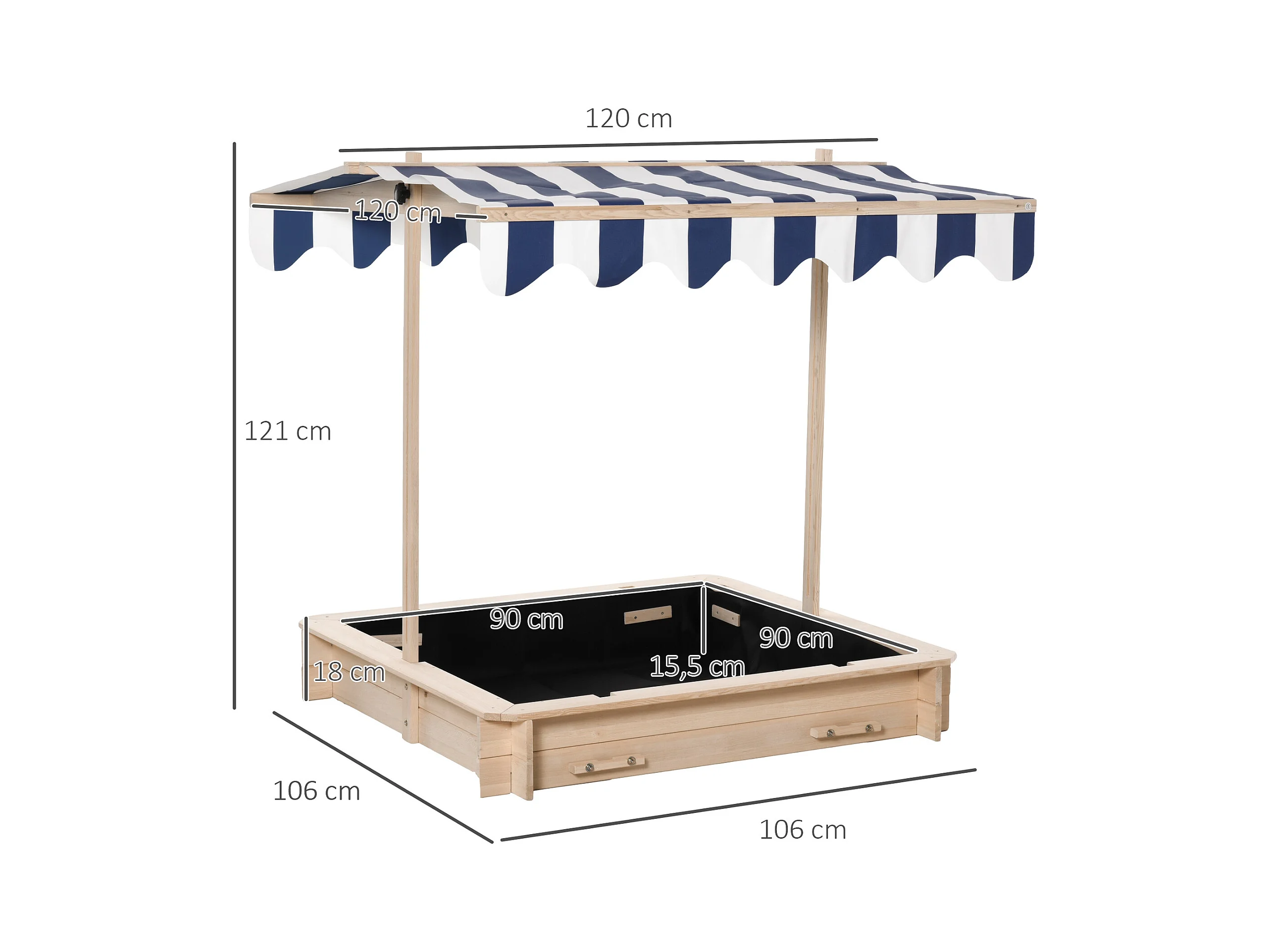 Bac à sable en bois avec toit refermable et doublure dim. 120 x 120 x 126,5 cm bois sapin