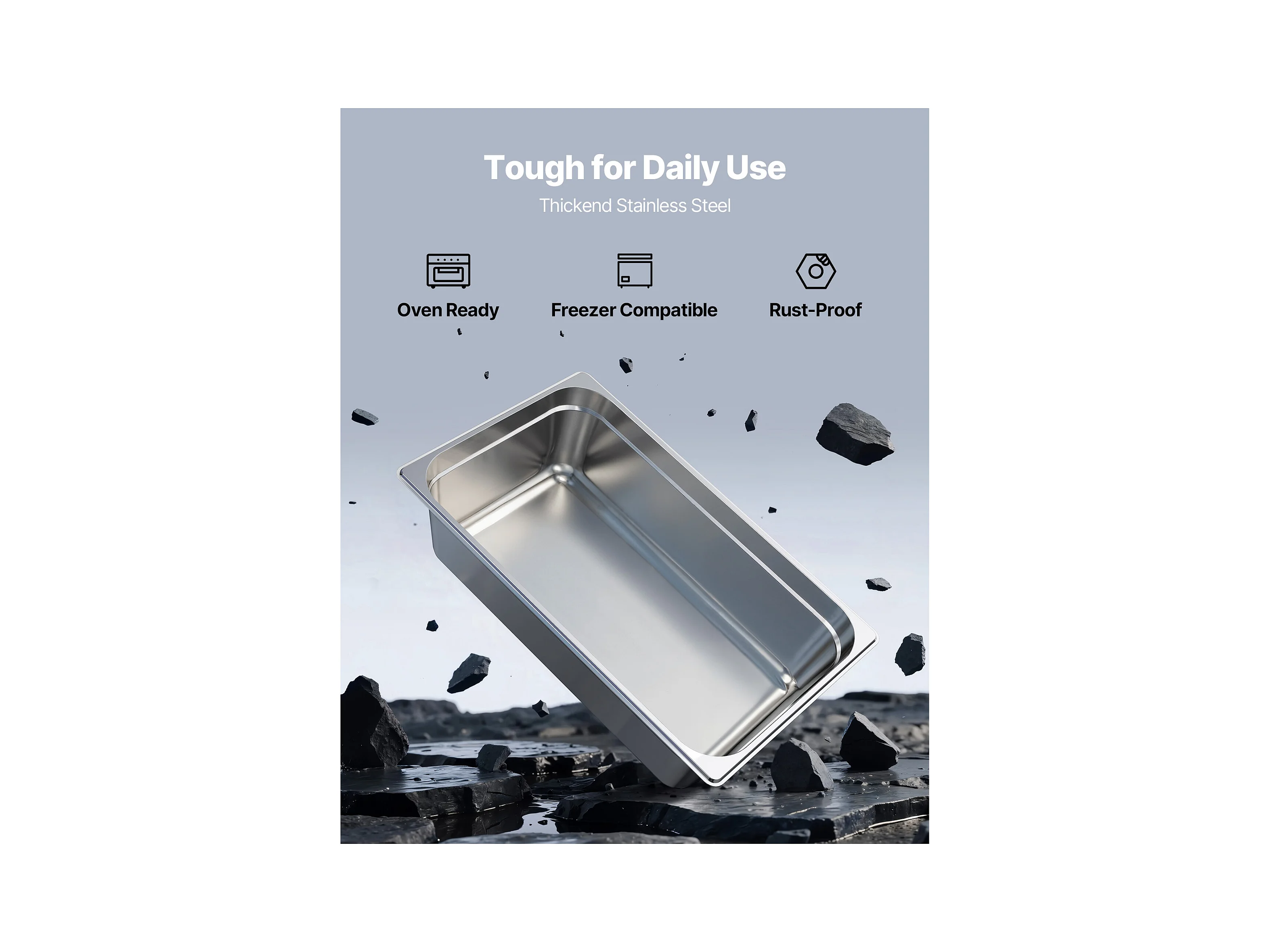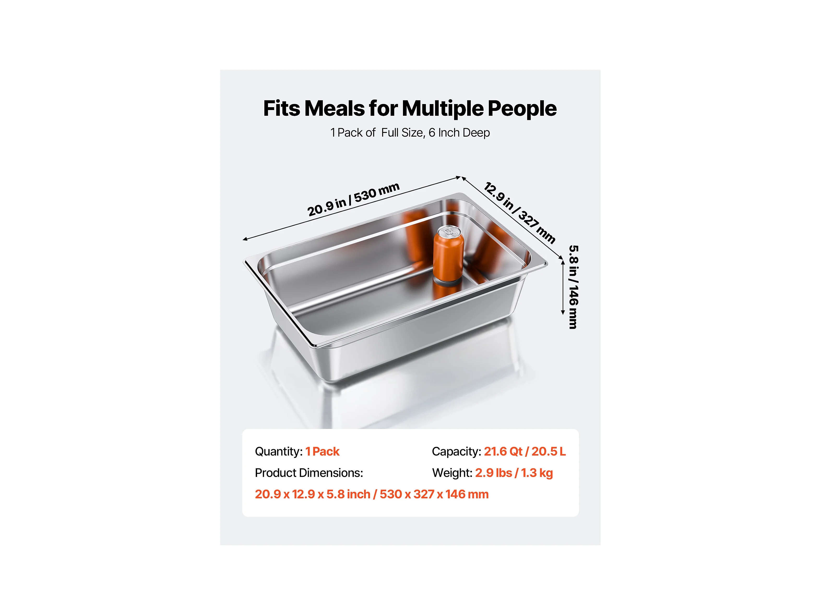 Bac Gastronorme SucceBuy 20,5 L, Récipient de Restauration en Acier Inoxydable, Bac Inox Alimentaire Profondeur 14,6 cm, Anti-adhérent et Antirouille