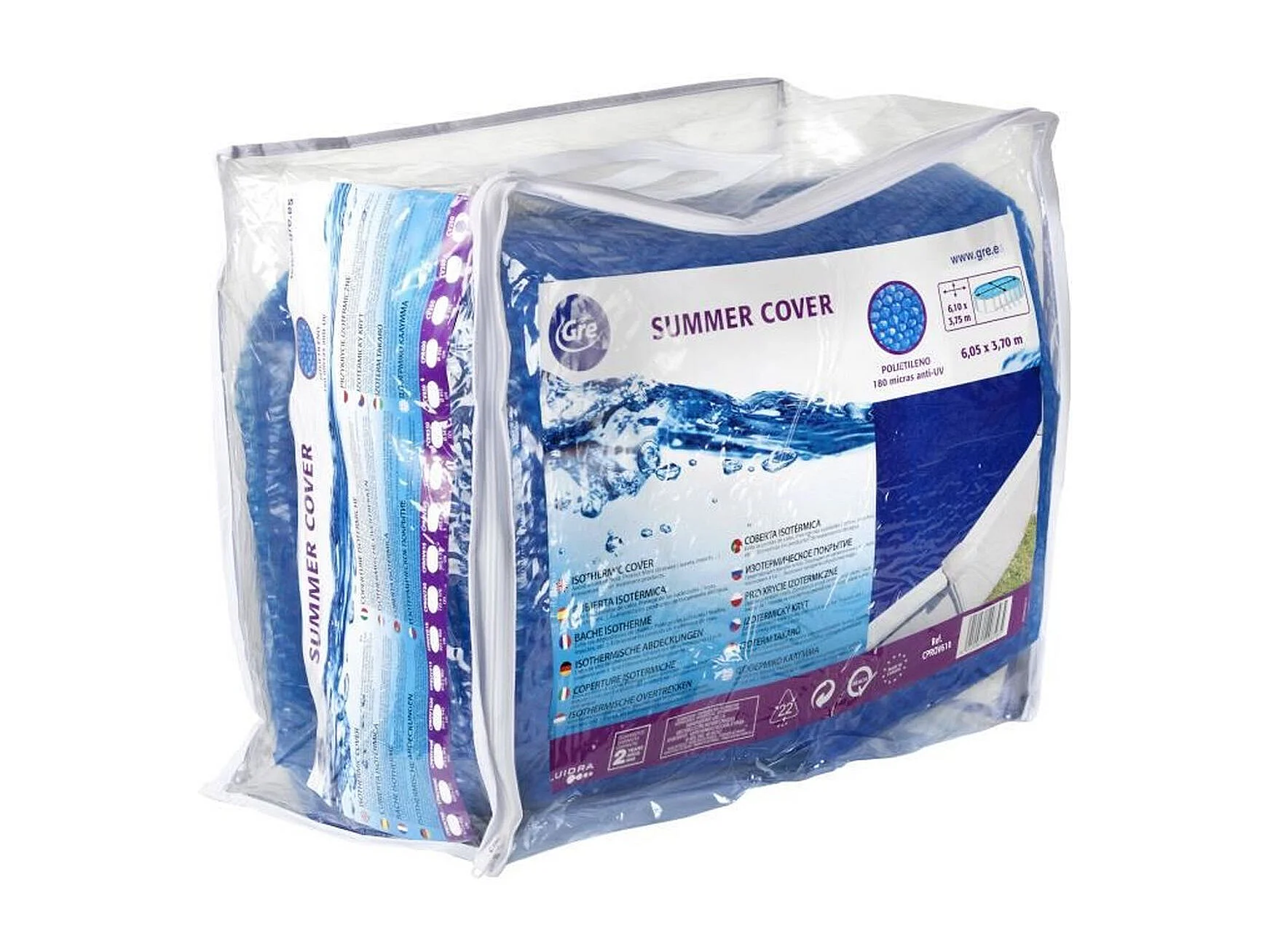 Bâche à bulles pour piscines ovales GRE 180 microns - 6,10 x 3,75 m