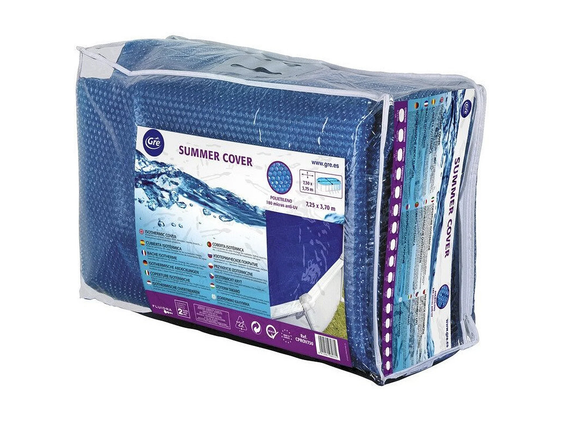 Bâche à bulles pour piscines ovales GRE 180 microns - 7,30 x 3,70 m