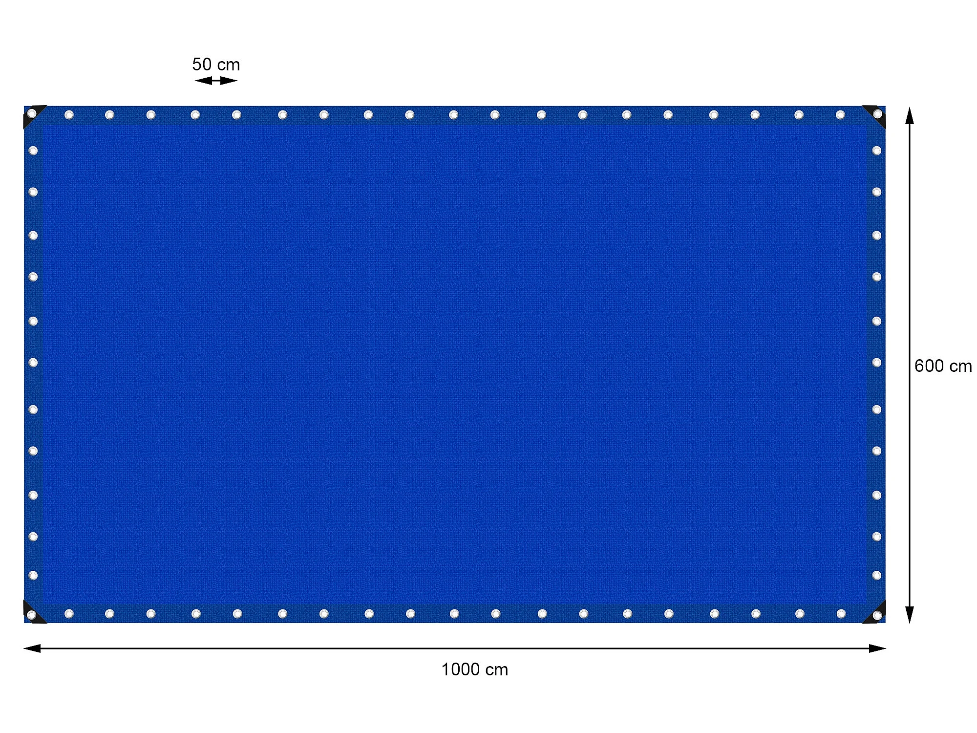 Bâche de couverture étanche protection en PE avec oeillets 6x10 m 260 g/m² bleu