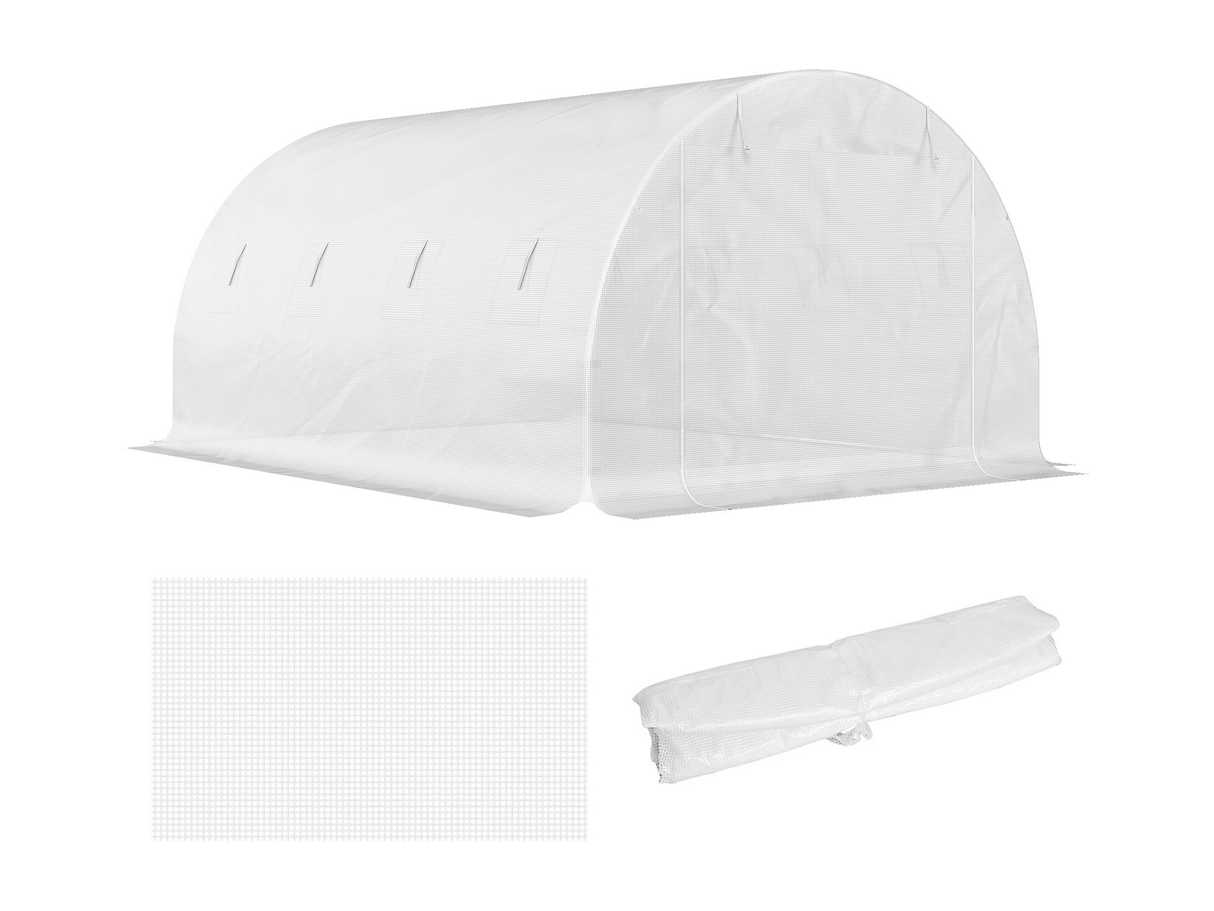 Bâche de rechange serre tunnel 12 m² - 4 x 3 x 2 m - 8 fenêtres, porte - PE haute densité blanc