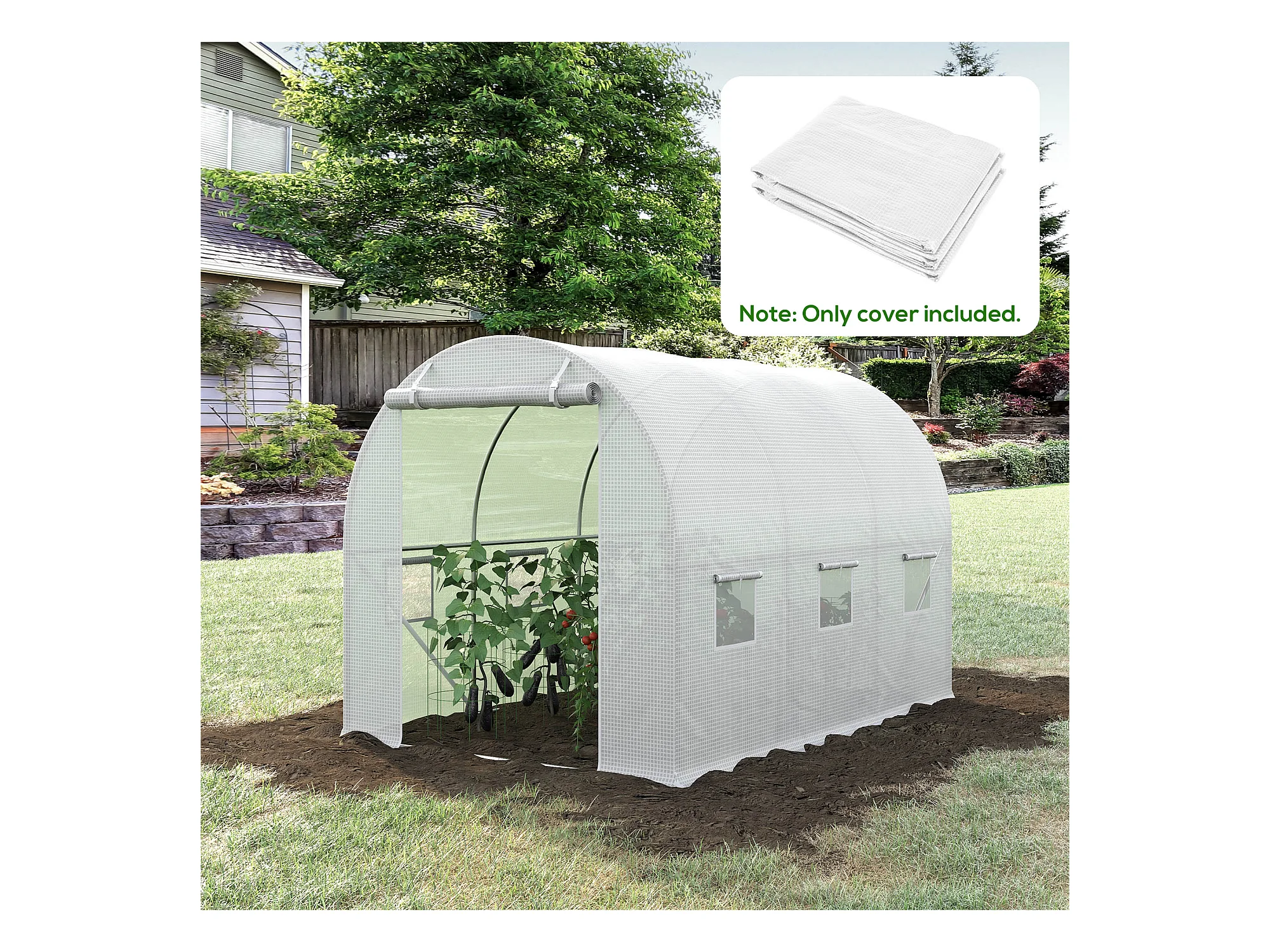 Bâche de remplacement serre de jardin dim. 140L x 73l x 190H cm - 2 fenêtres, porte zippée enroulable - PE anti-UV imperméable blanc