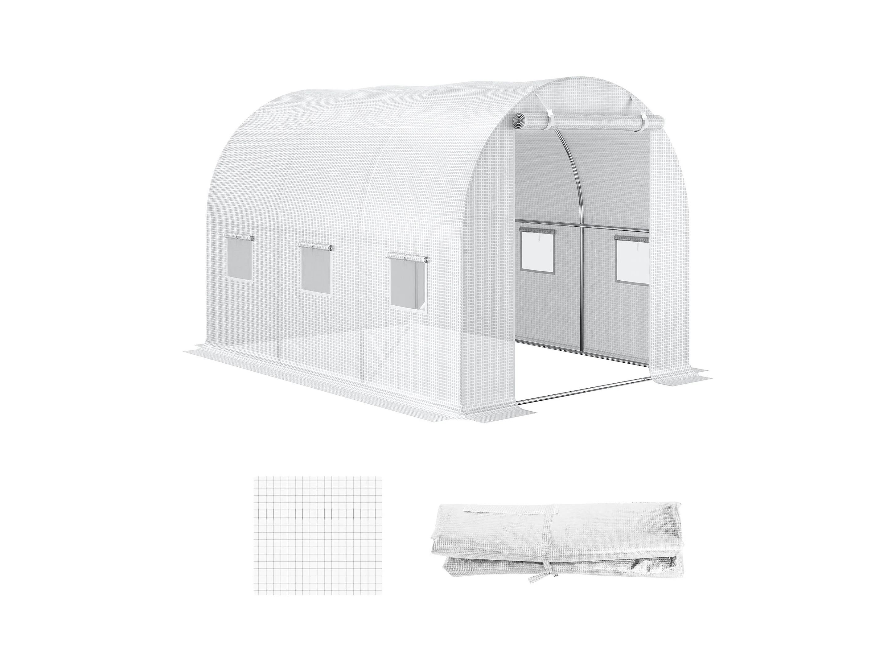 Bâche de rechange serre tunnel 12 m² - 4 x 3 x 2 m - 8 fenêtres, porte - PE haute densité blanc