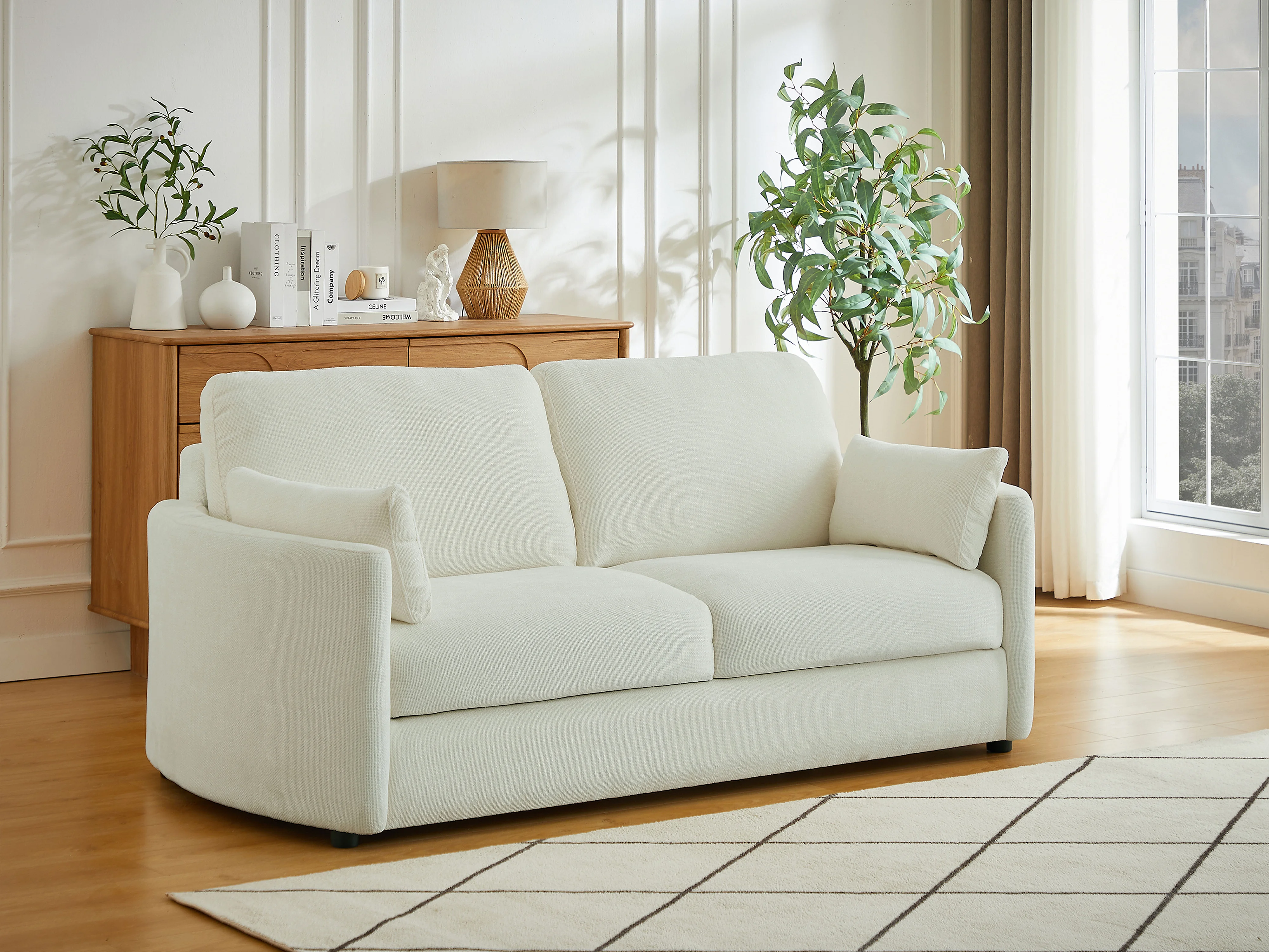 Canapé 3 places convertible express - Couchage 140 cm - Matelas 12 cm mémoire de forme en tissu texturé beige BAGOMI