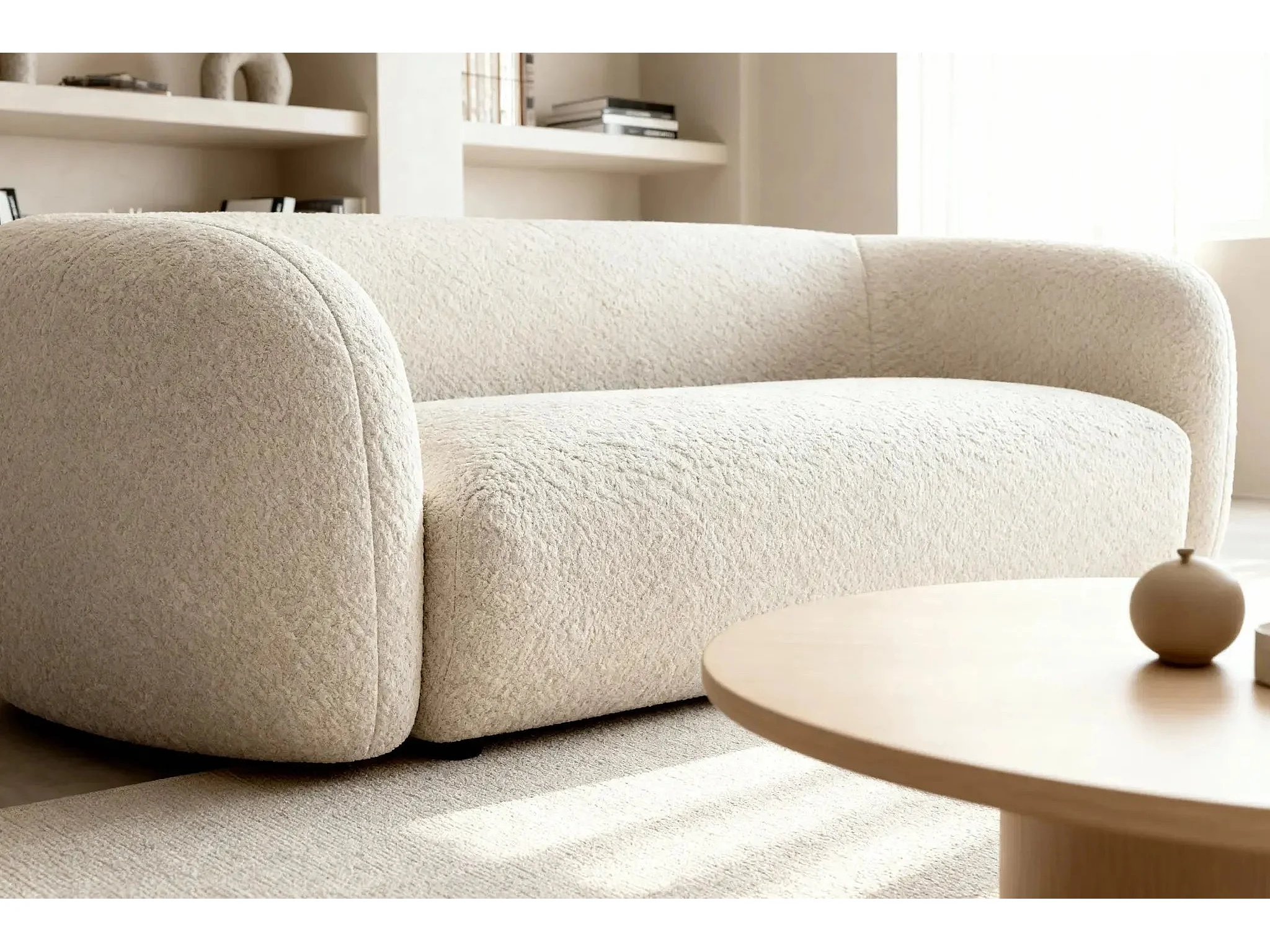BAHIA 3 - Canapé droit en tissu bouclette 3 places - Beige