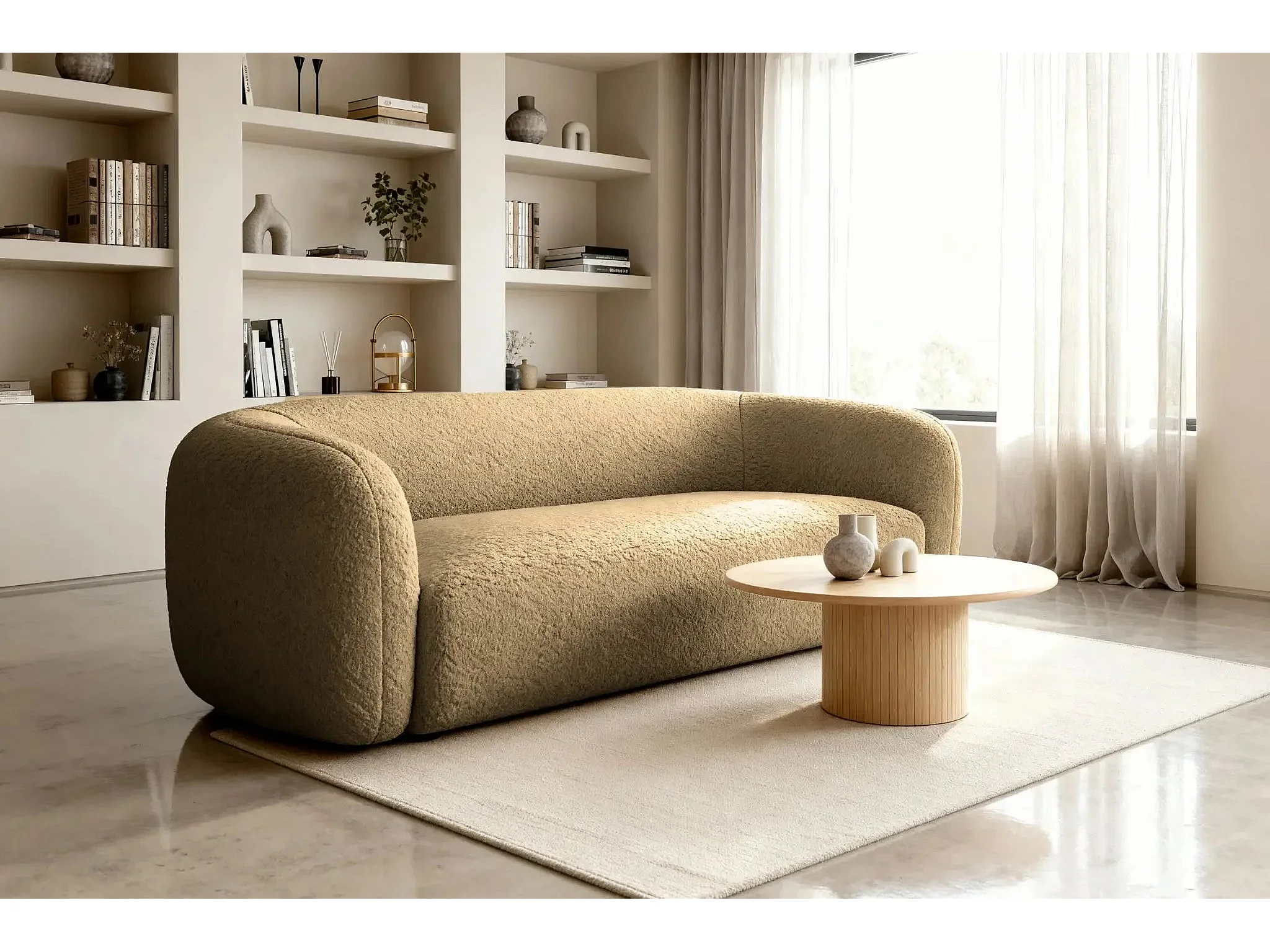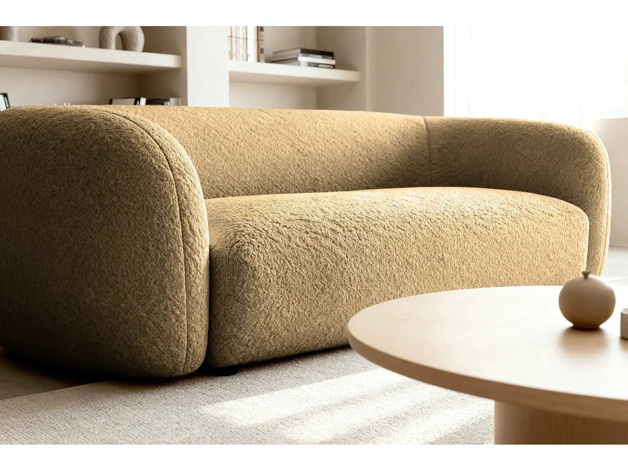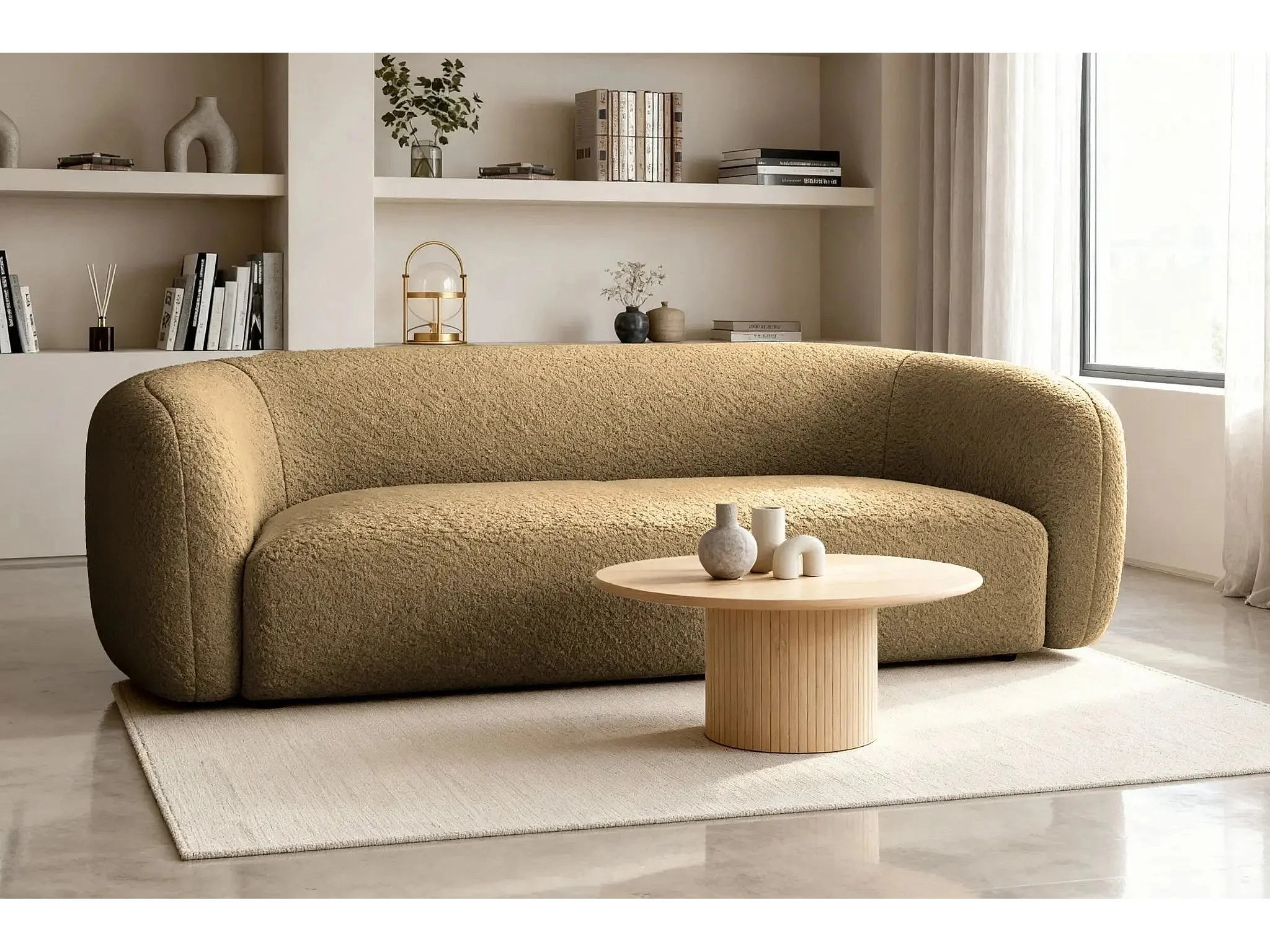 BAHIA 3 - Canapé droit en tissu bouclette 3 places - Café