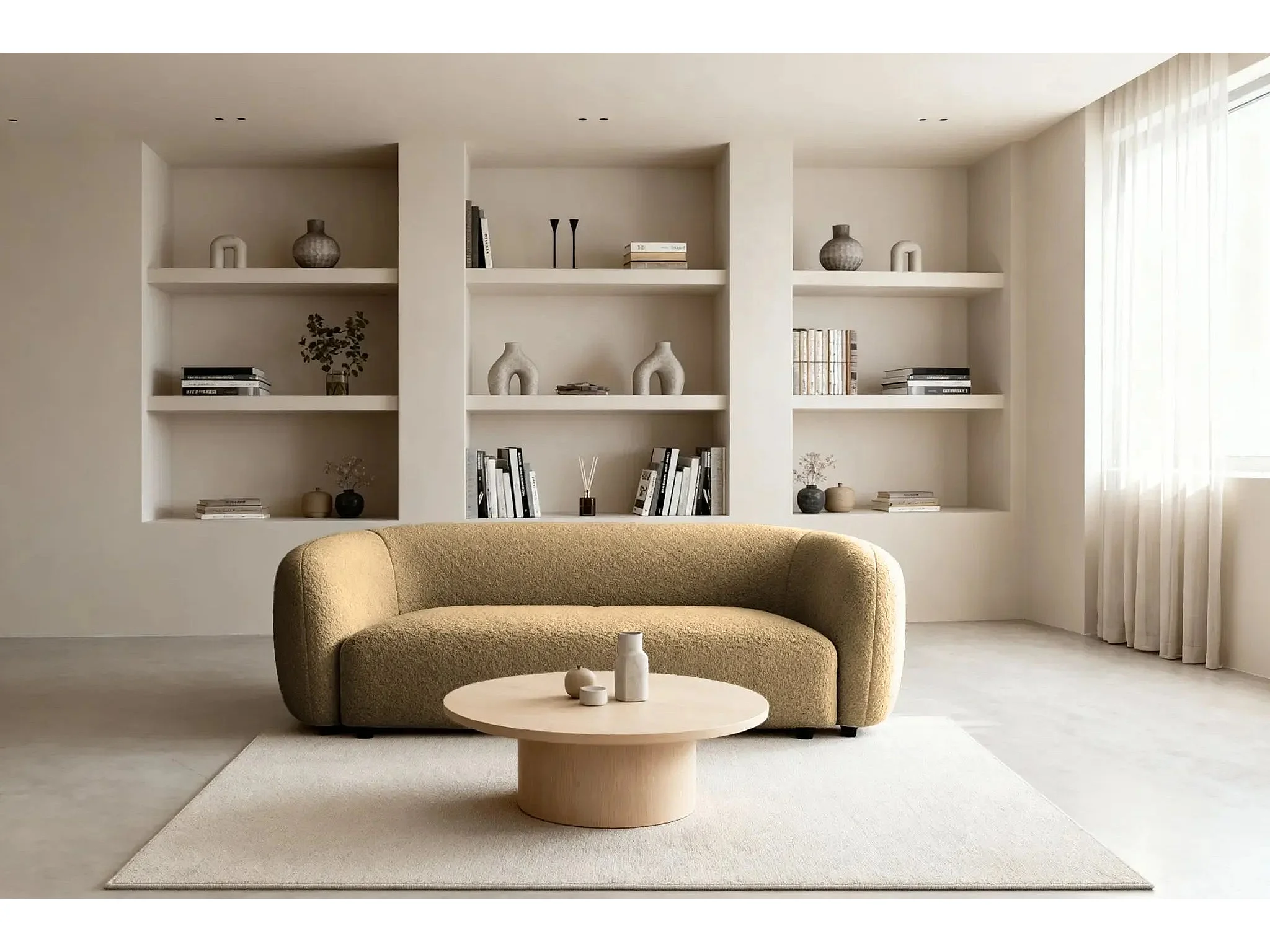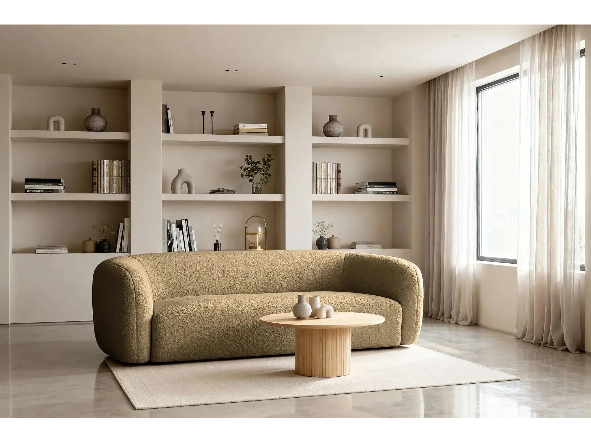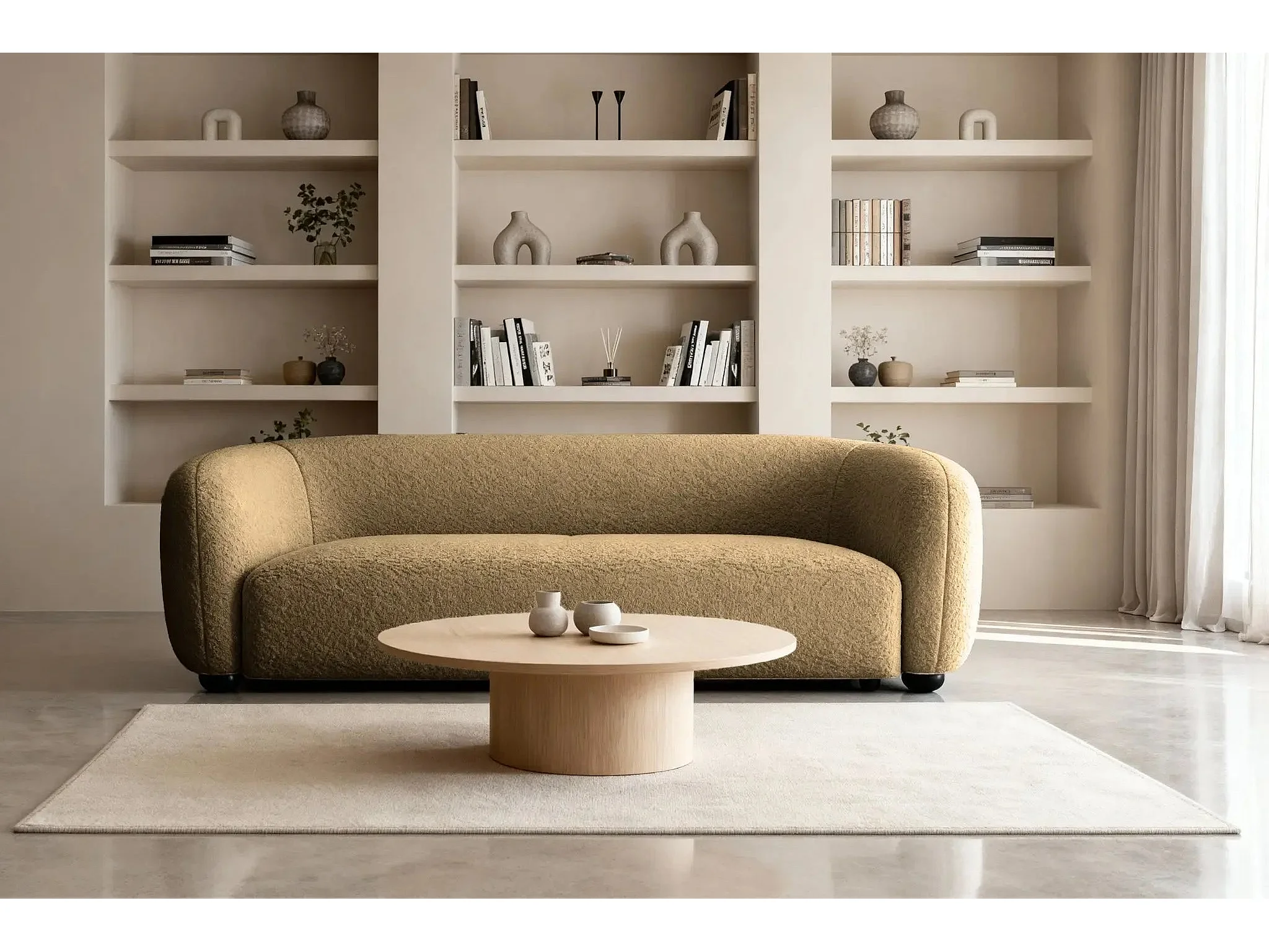 BAHIA 3 - Canapé droit en tissu bouclette 3 places - Café