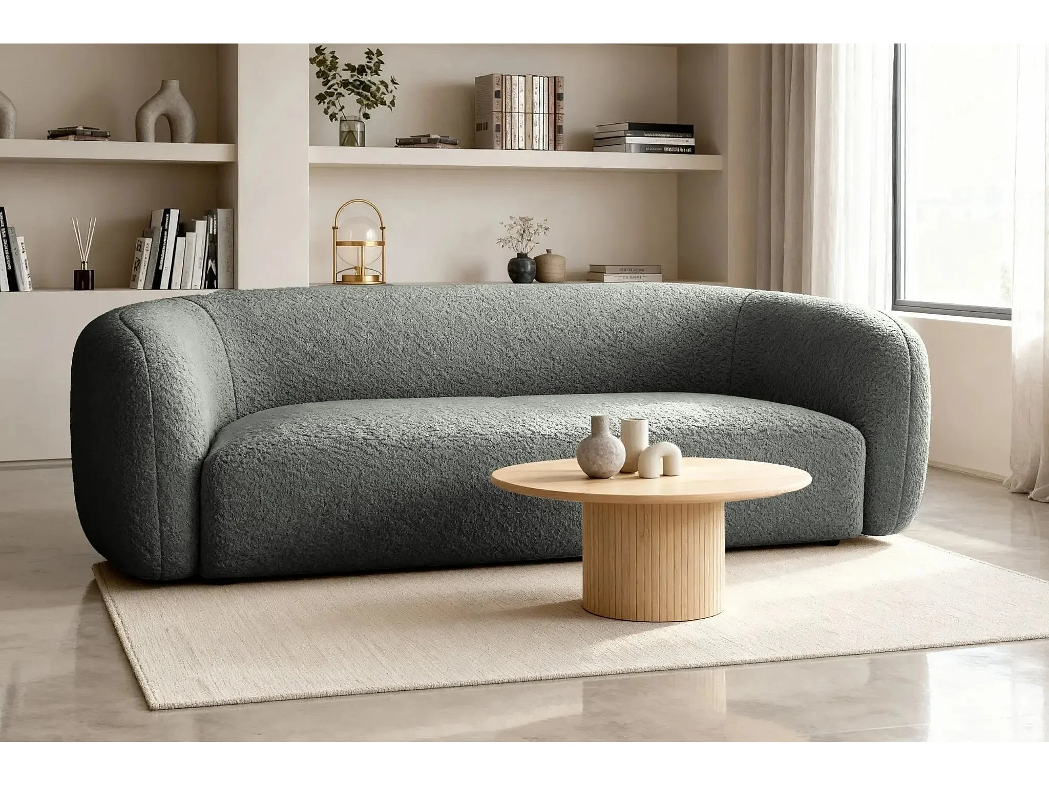 BAHIA 3 - Canapé droit en tissu bouclette 3 places - Gris foncé