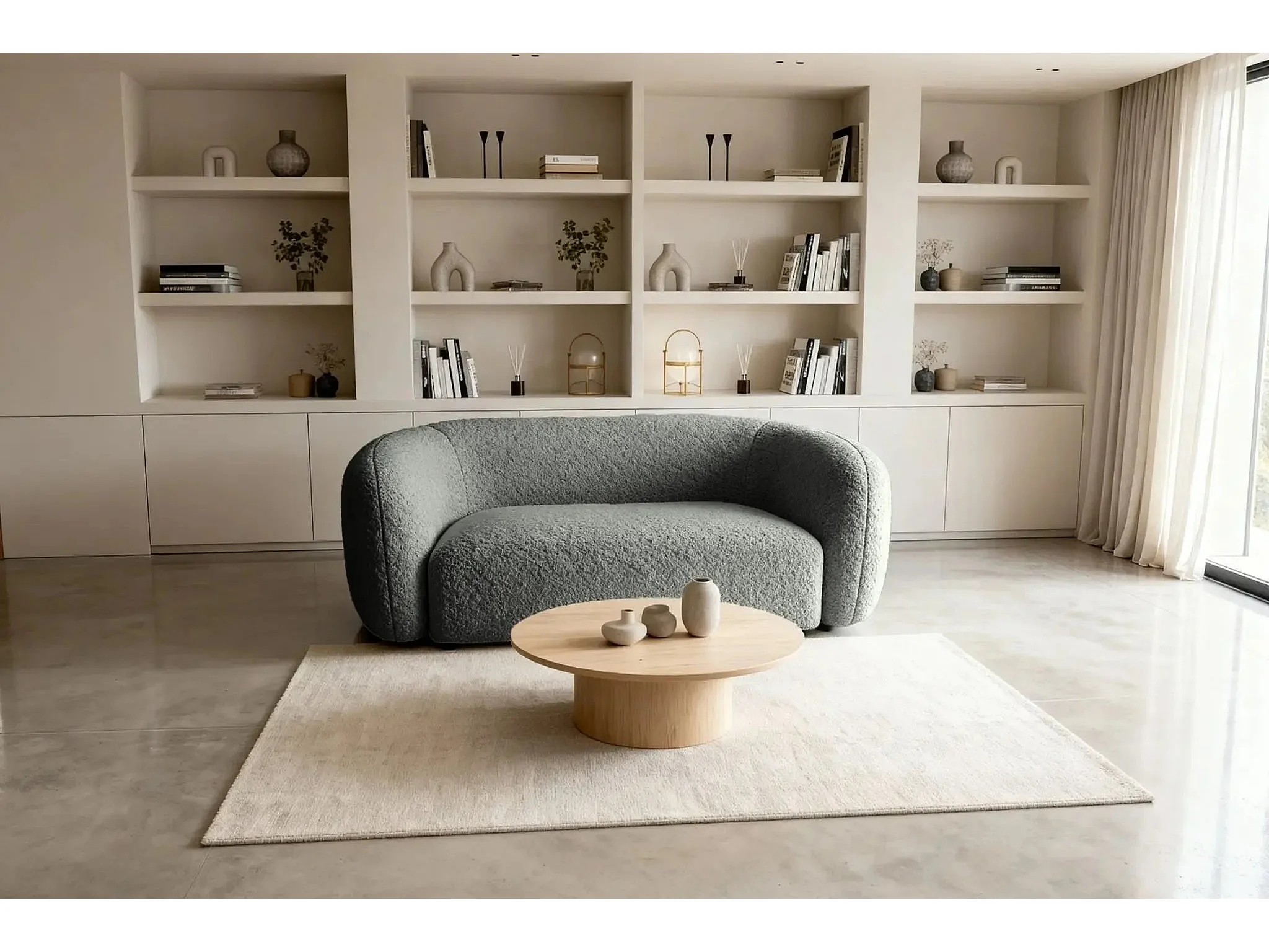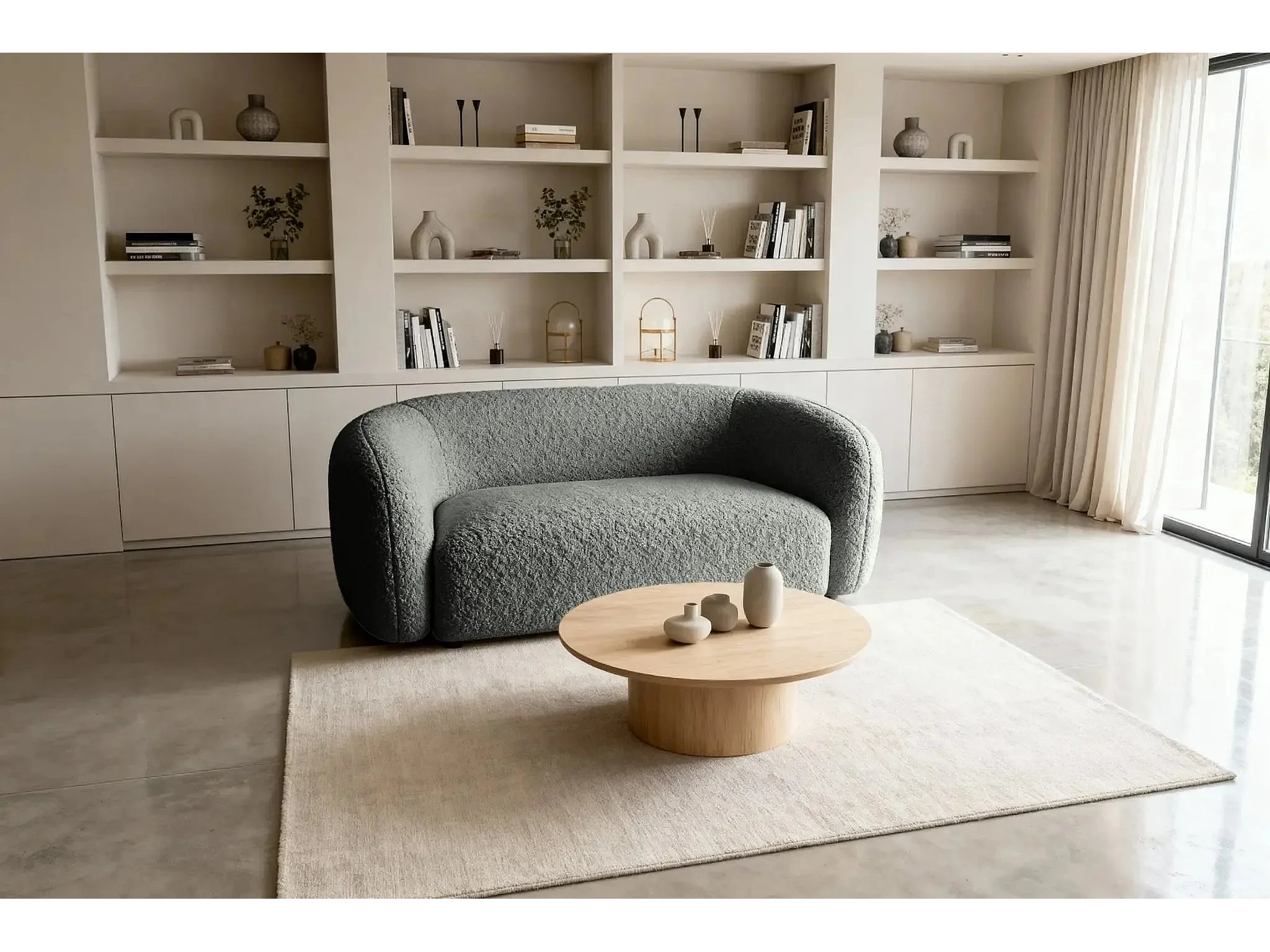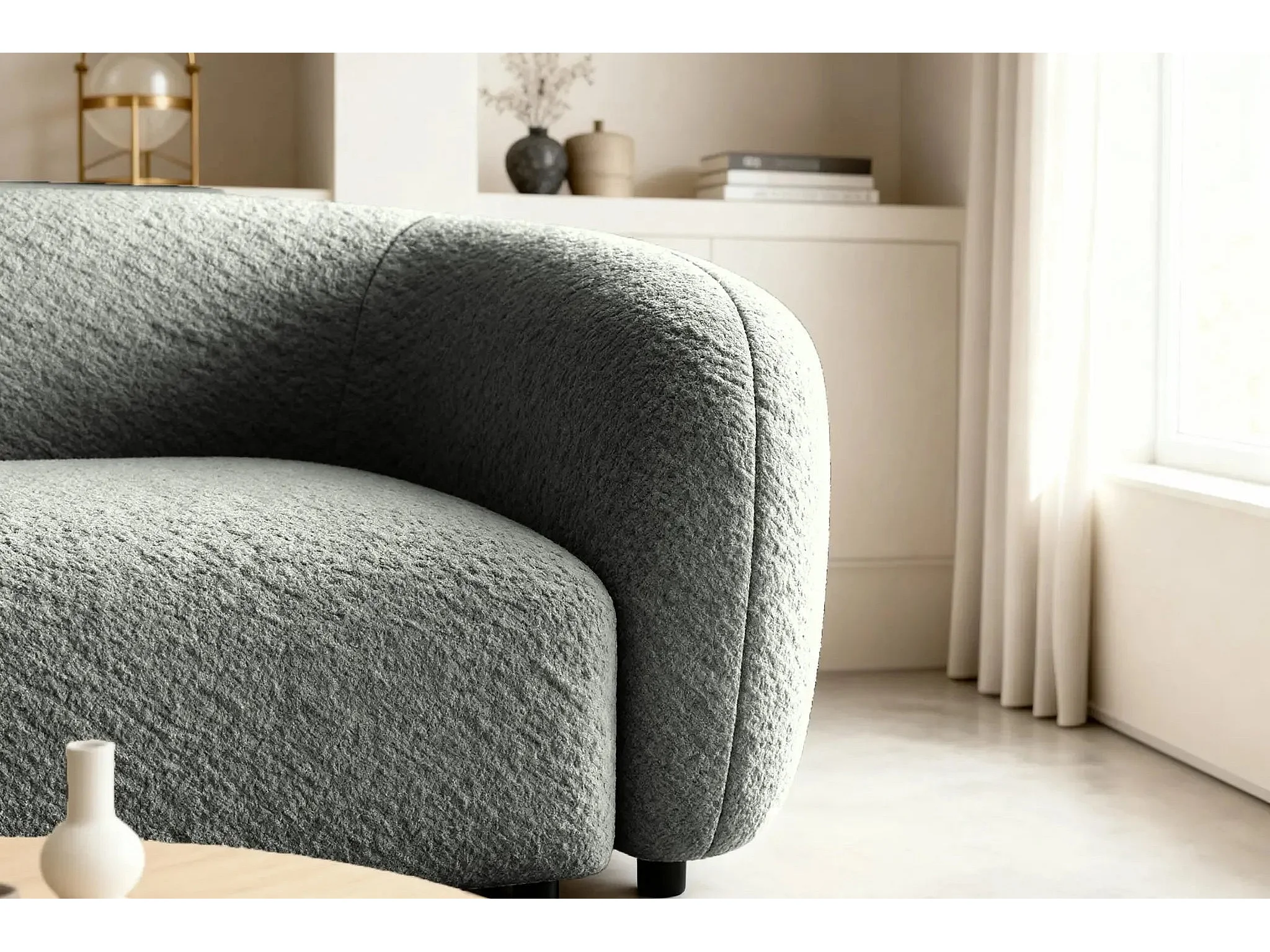 BAHIA - Canapé droit tissu bouclette 2 places - Gris foncé