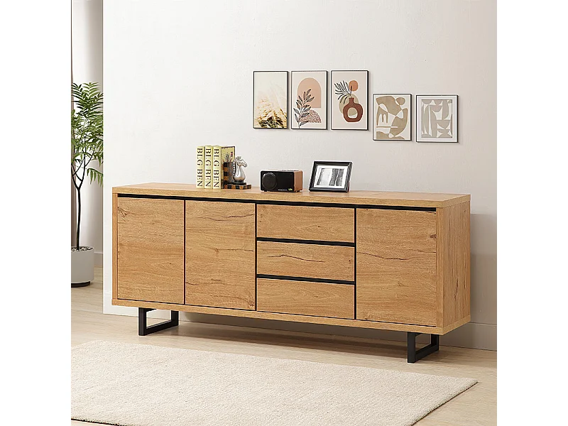 Bahut 3 tiroirs 3 portes pieds métal Sully