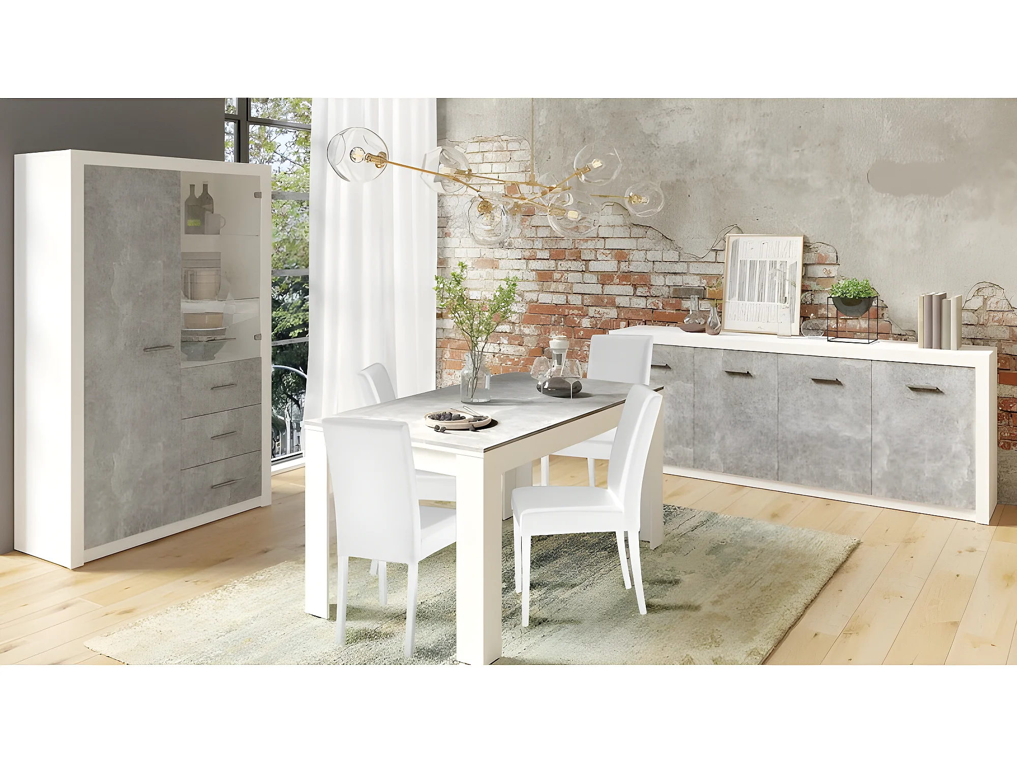 Bahut 4 portes blanc et gris béton Gent