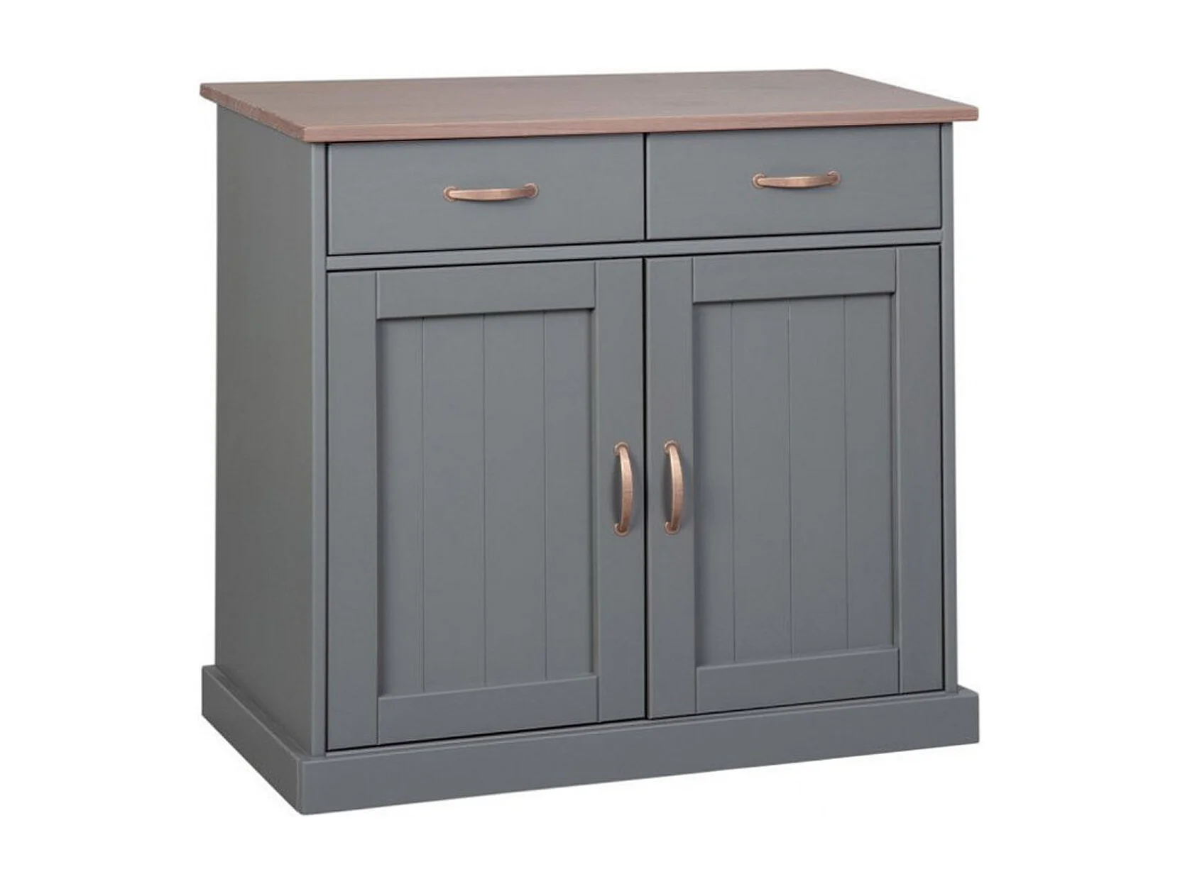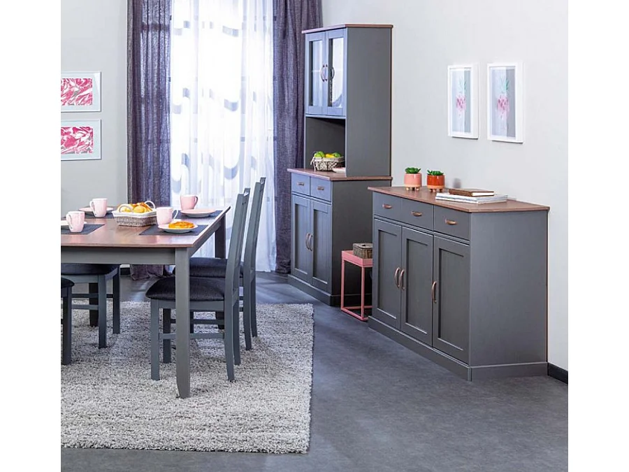 Bahut bas en pin massif foncé et gris - L.80 x H.86 x P.45 cm