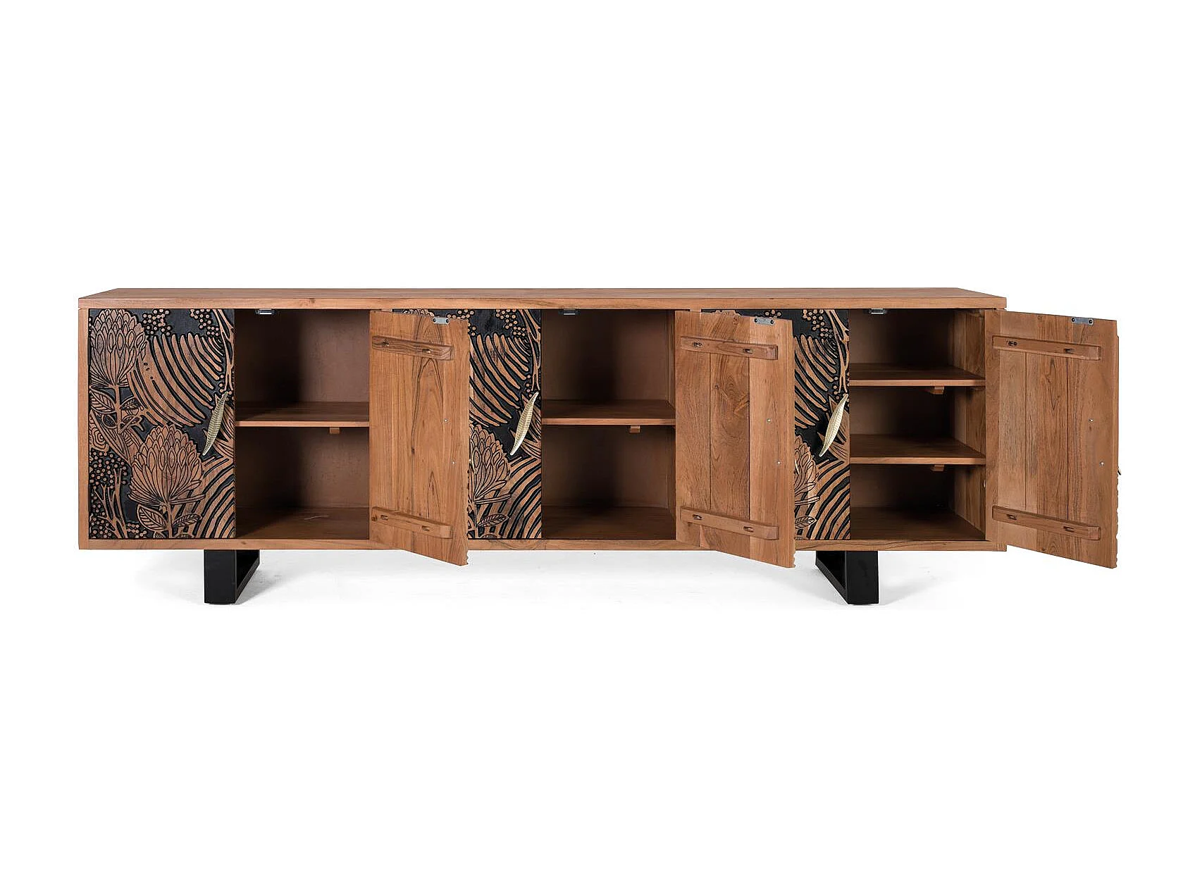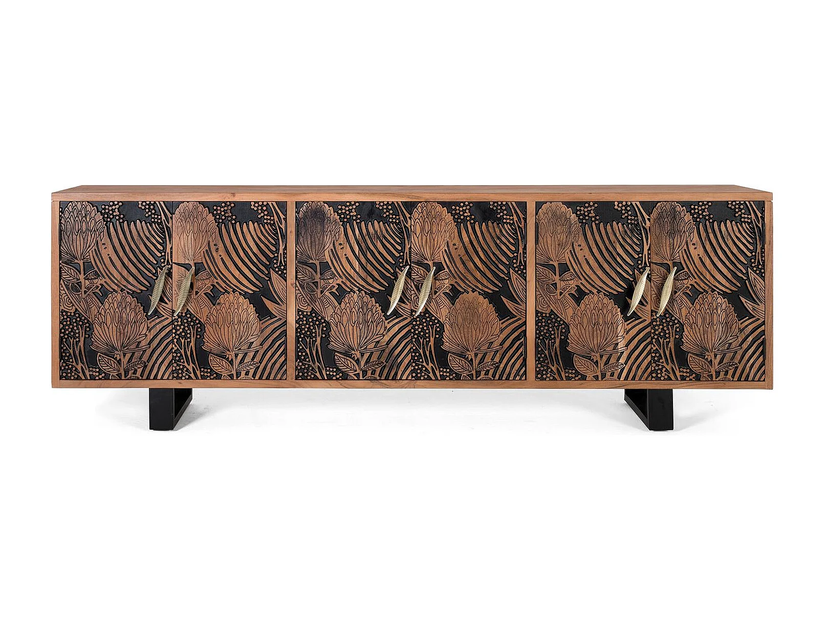 Buffet bois d'acacia naturel et noir plus métal