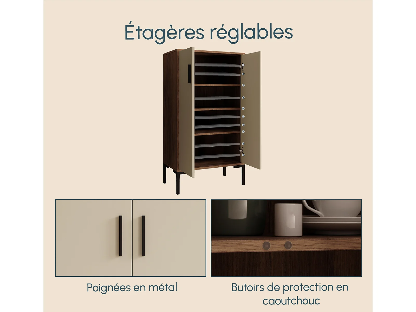 Bahut Buffet bas en Noyer Ambar et Beige 60x35x110,5cm Lander L17