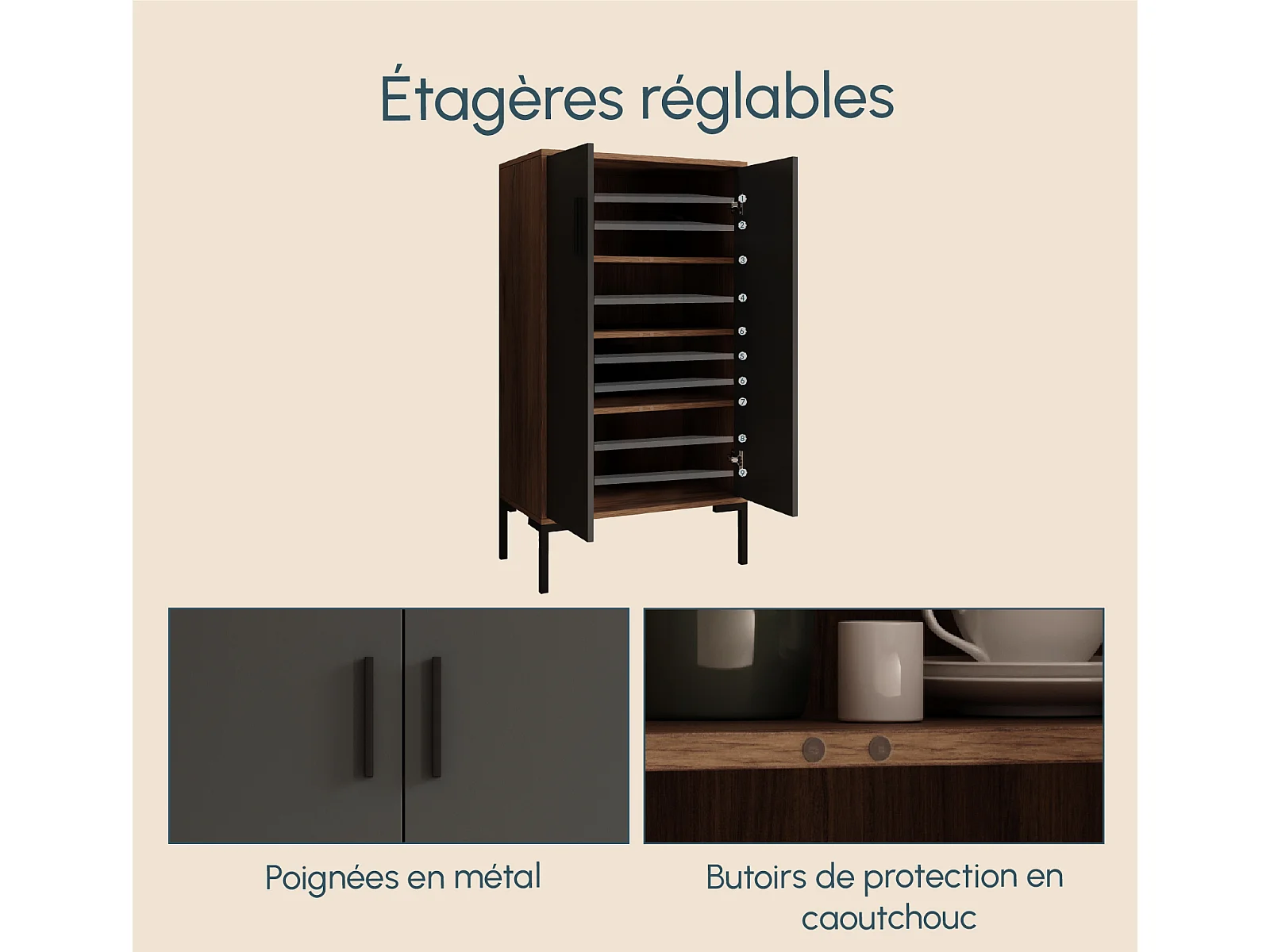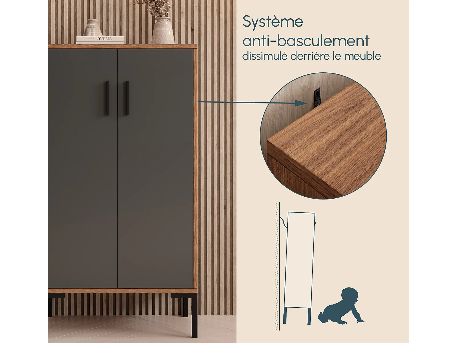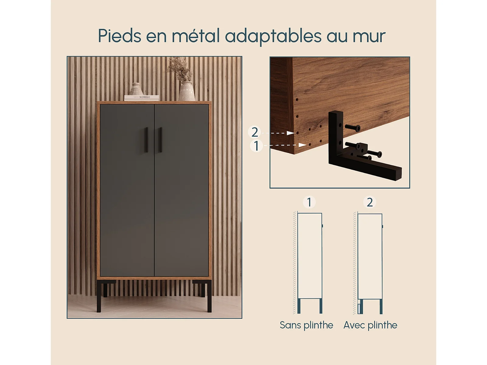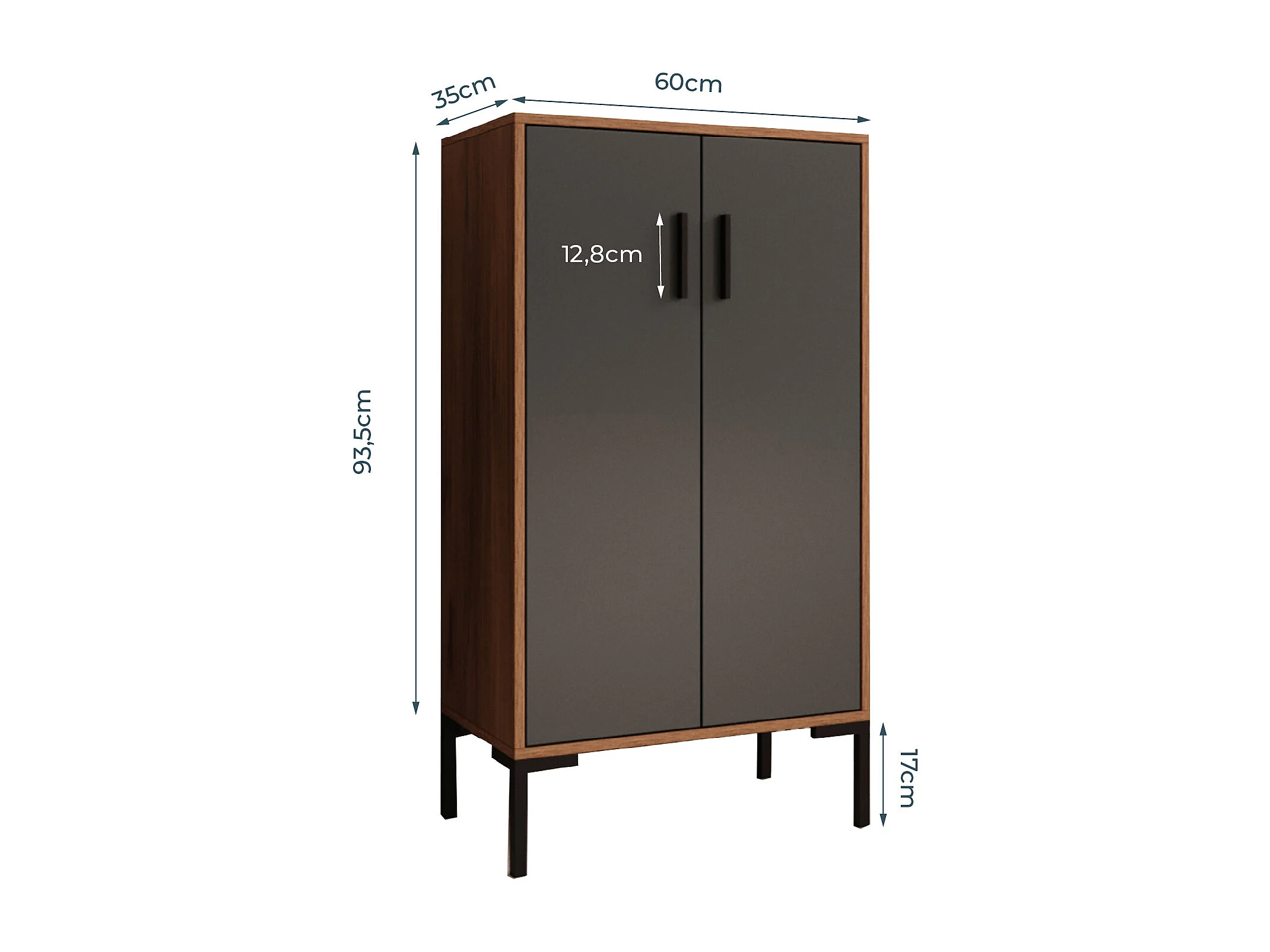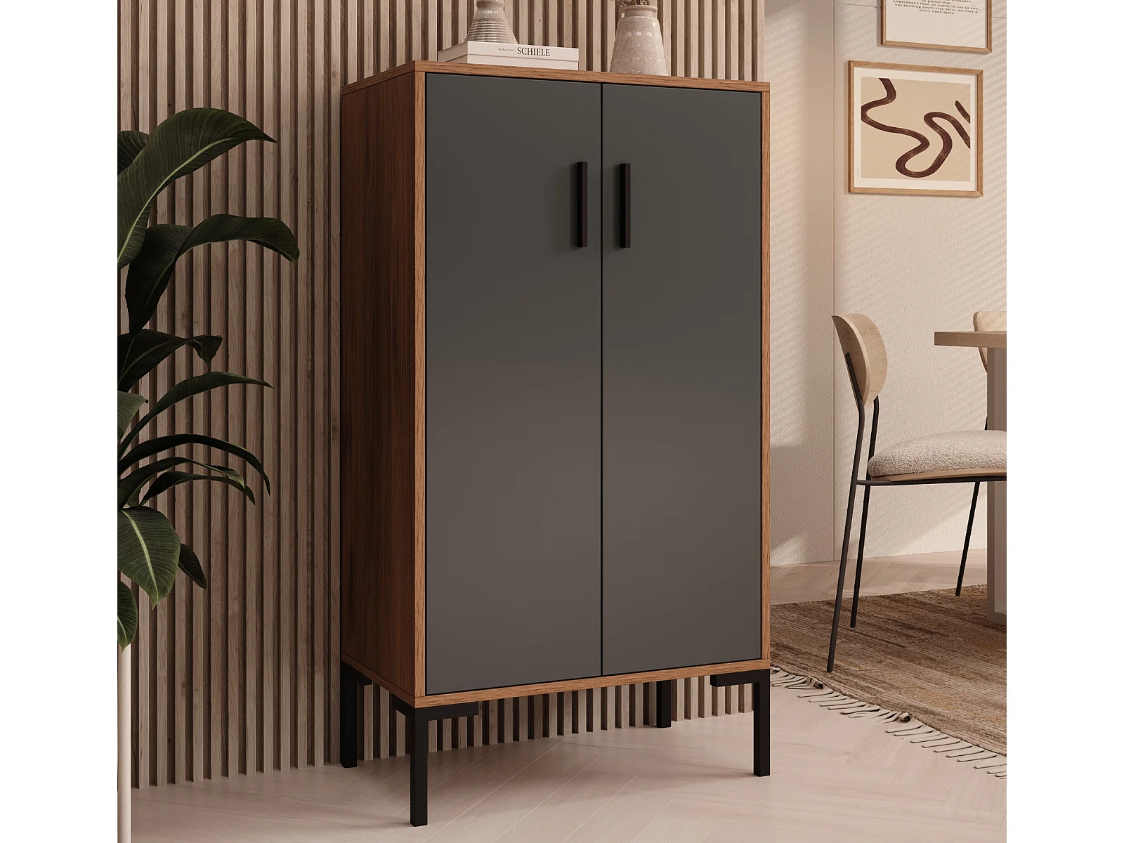 Bahut Buffet bas en Noyer Ambar et Gris 60x35x110,5cm Lander L17