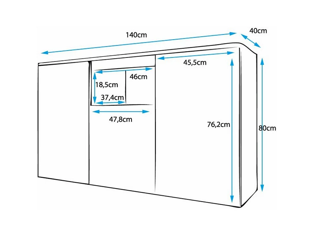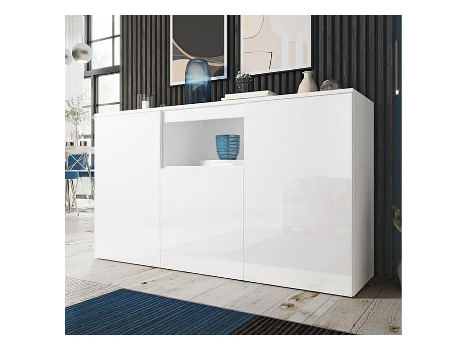 Bahut Buffet pour Salon Salle à manger en Blanc 140x40x80cm Nevada