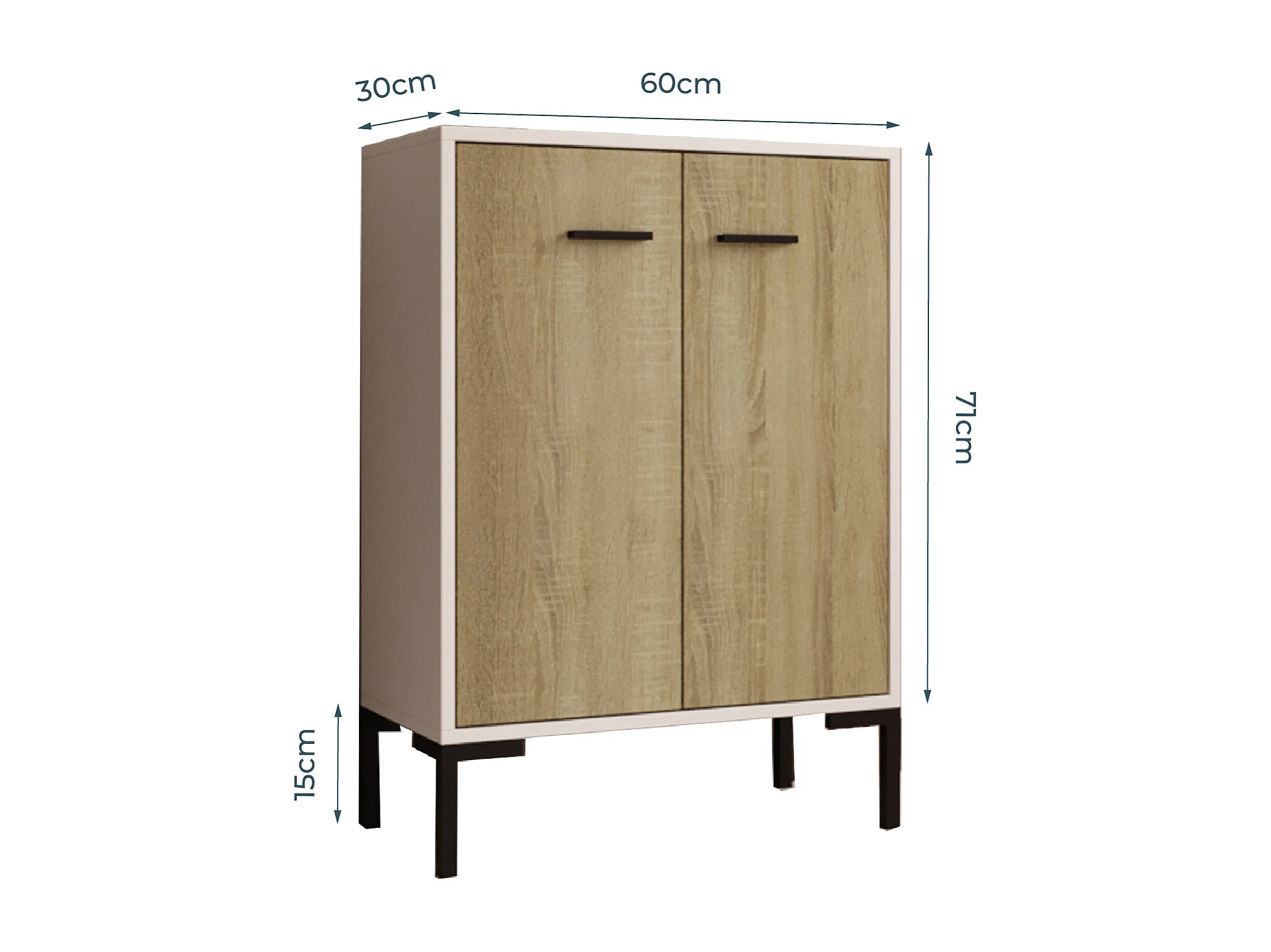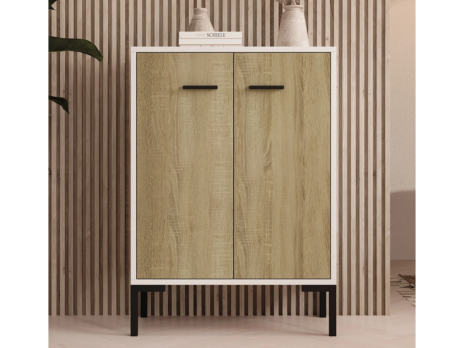 Bahut Buffet bas pour Salon Salle à manger en Blanc et Sonoma 60x30x71cm Lander L2