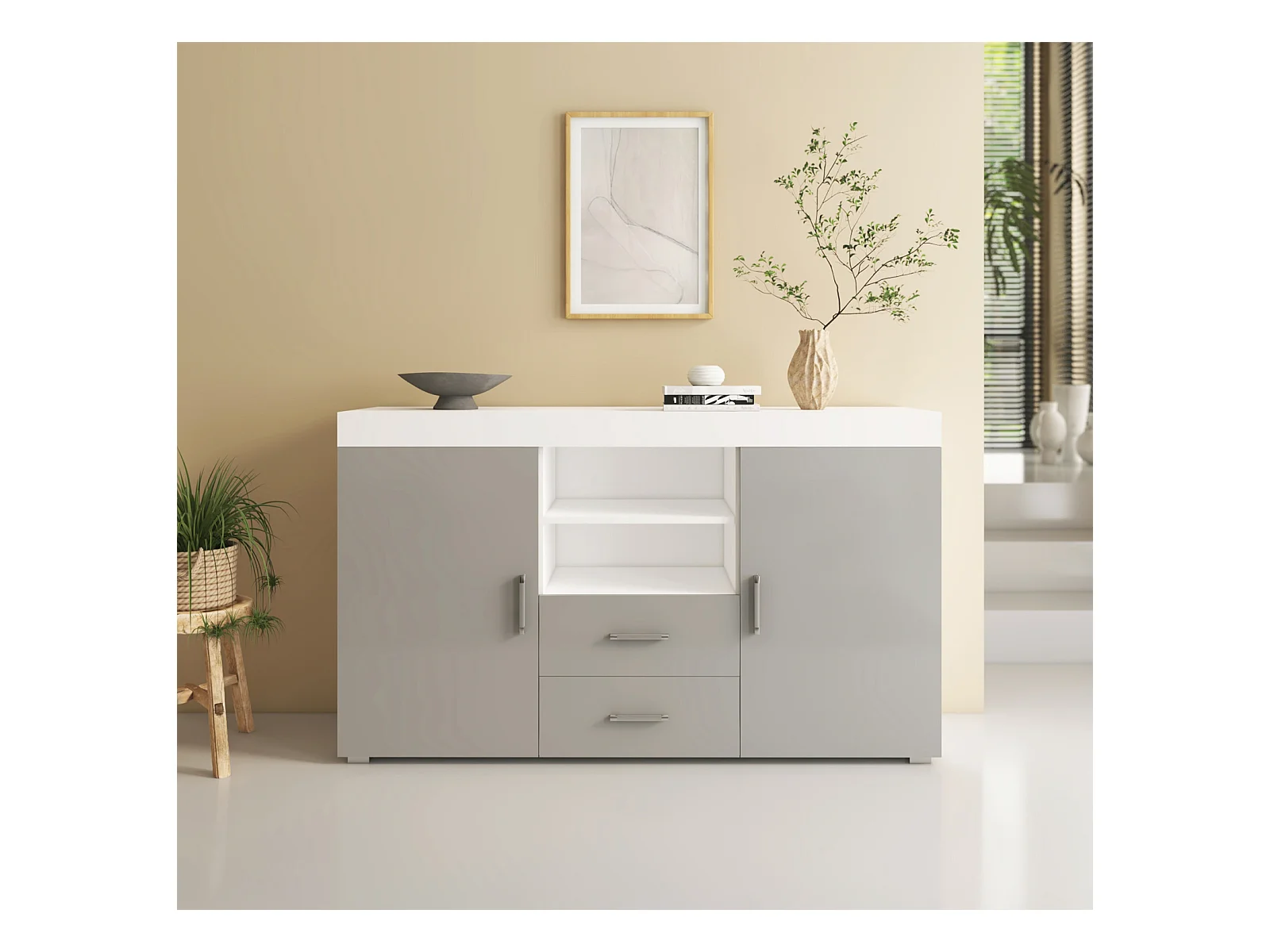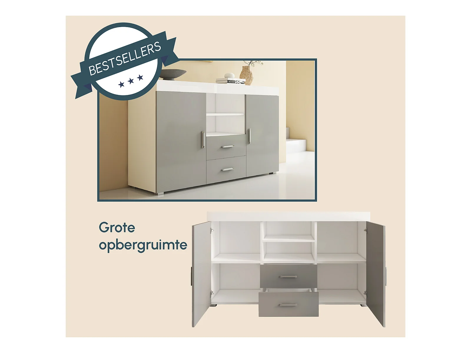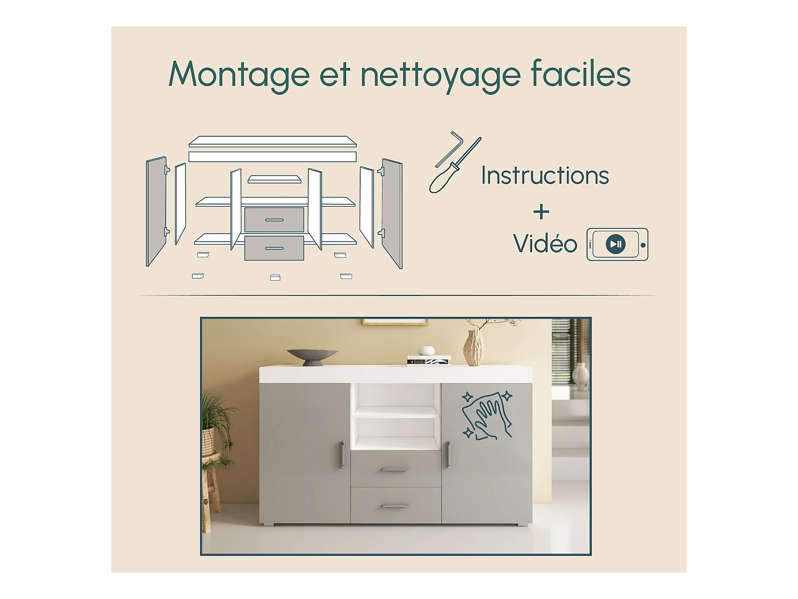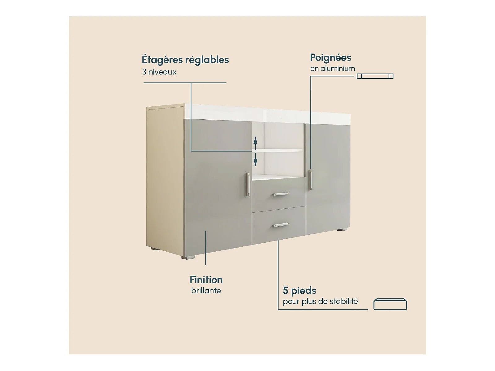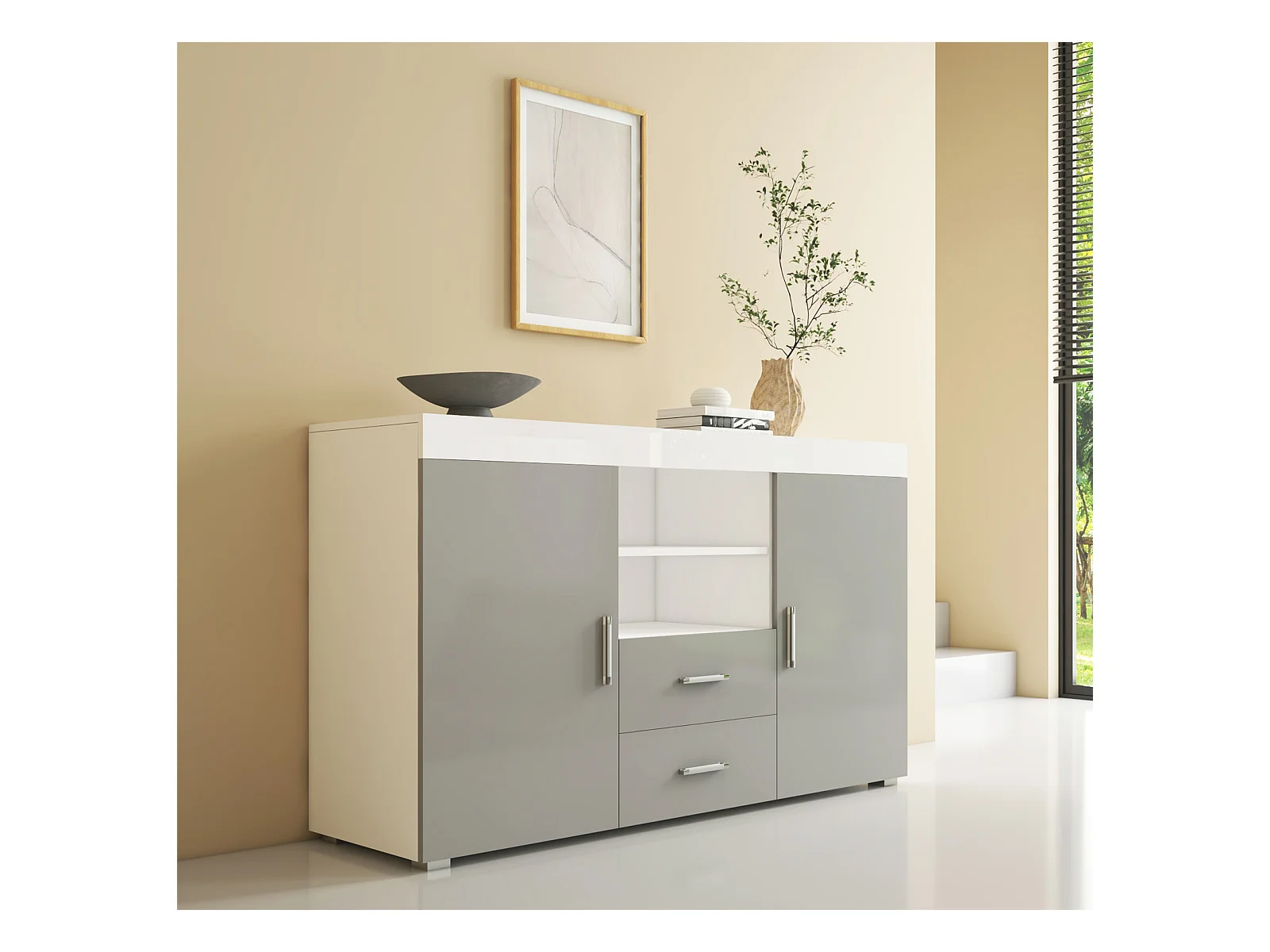 Bahut Buffet pour Salon Salle à manger en Blanc et Gris 140x40x80cm Roque