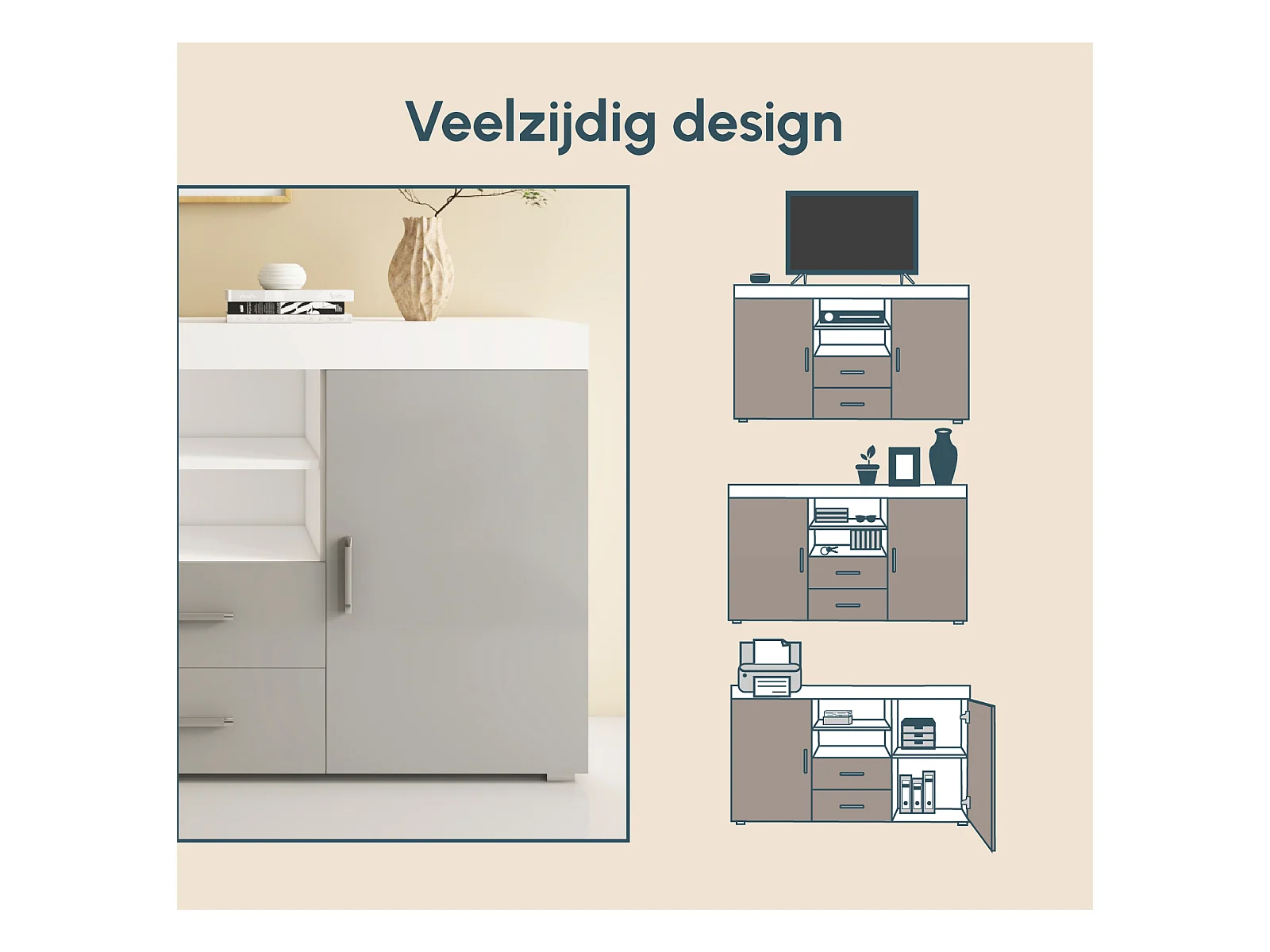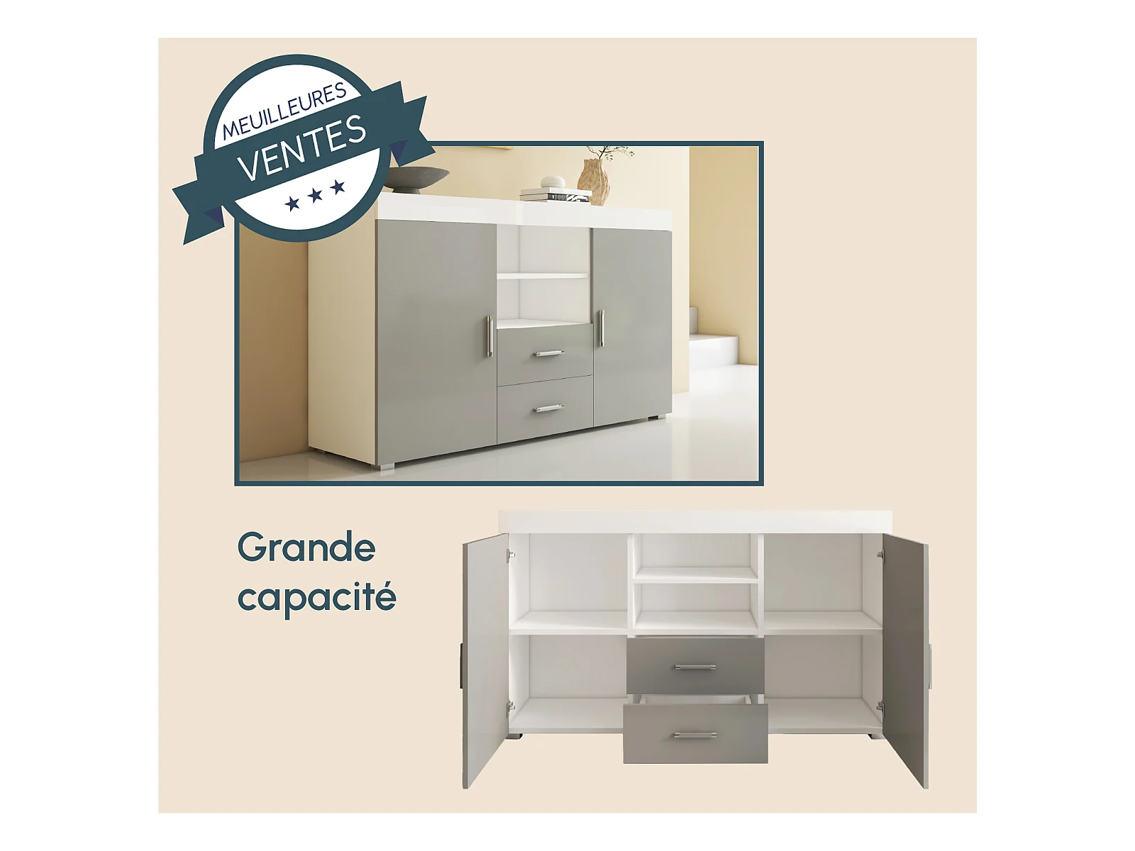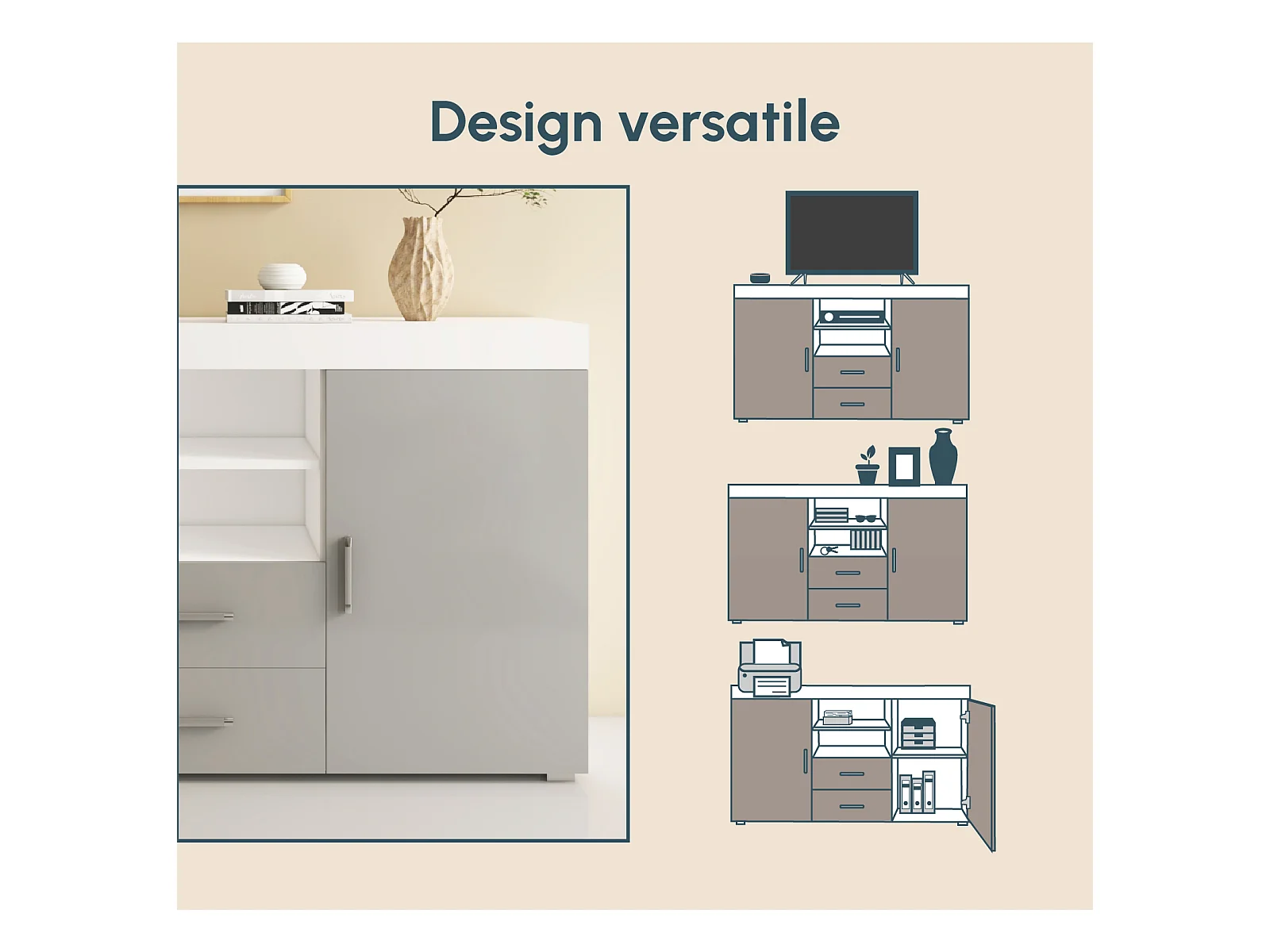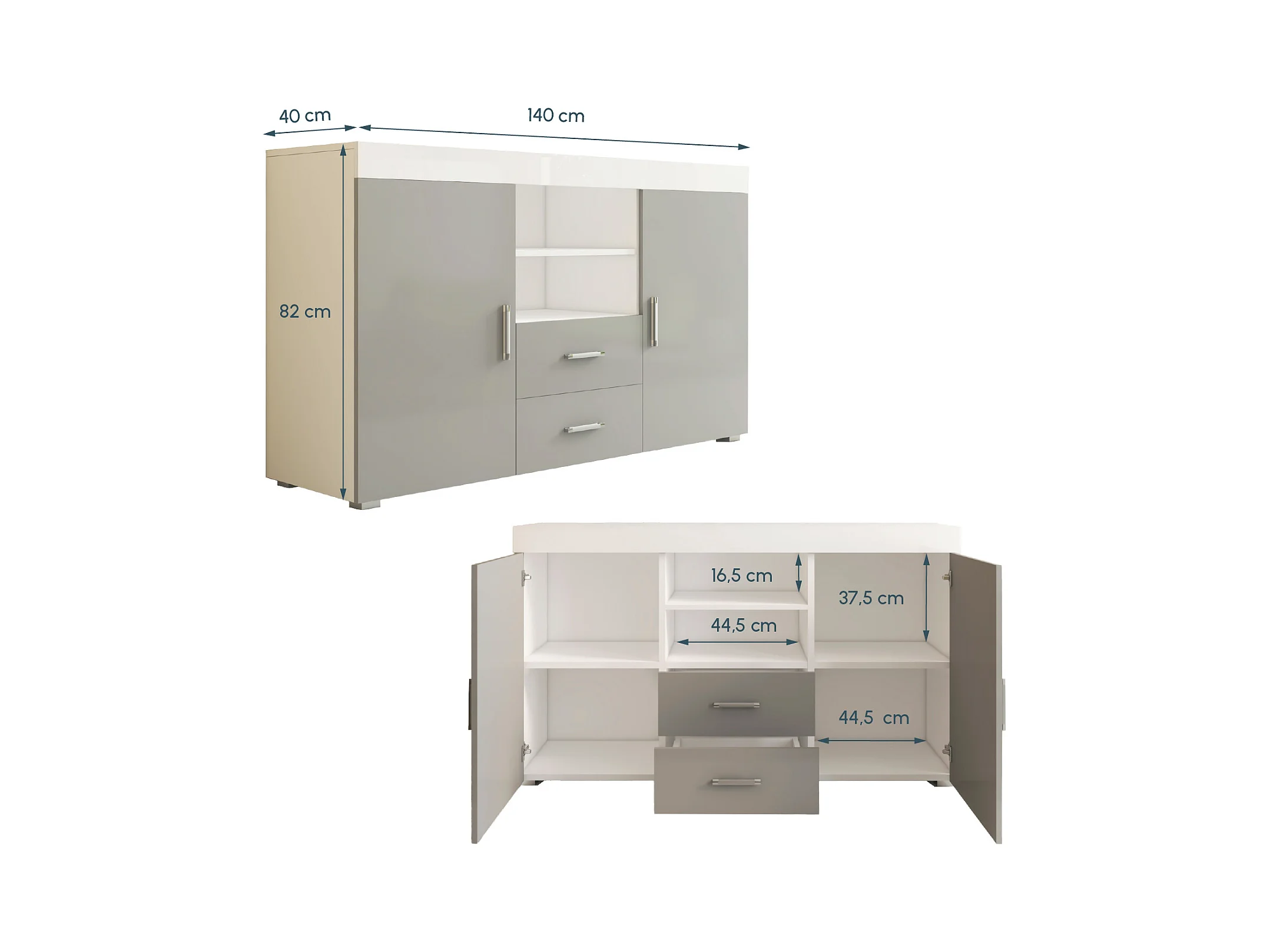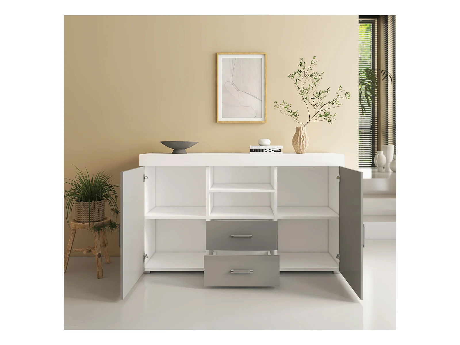 Bahut Buffet pour Salon Salle à manger en Blanc et Gris 140x40x80cm Roque