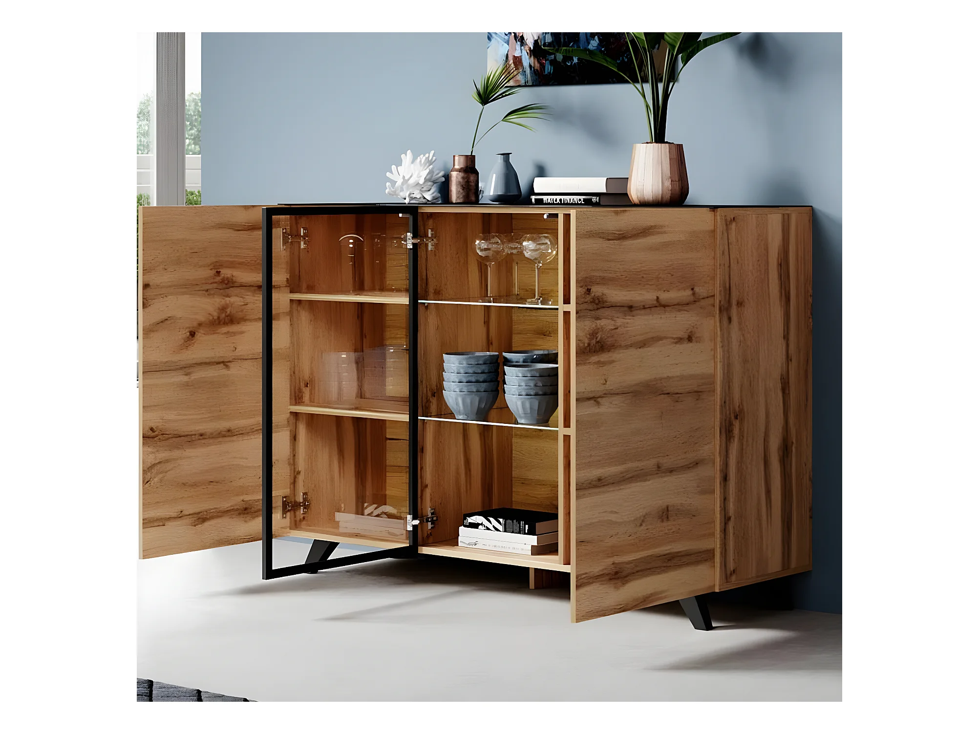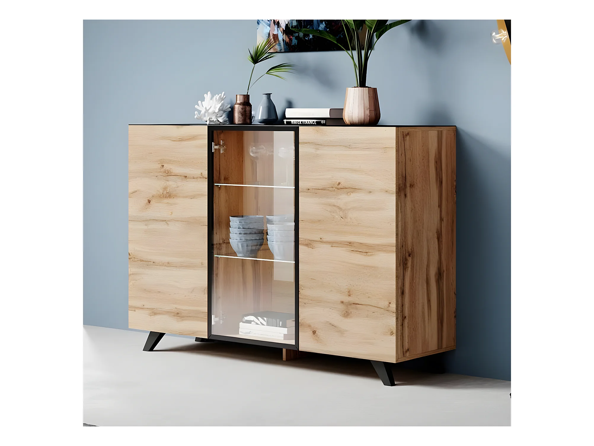 Bahut Buffet en Coleur Chêne et Noir avec LED 150x40x100cm Viena A2